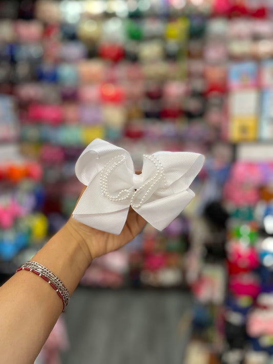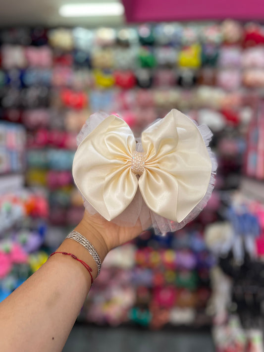 Moño Doble Satinado Con Perla(Par) - Los Moños De Kari