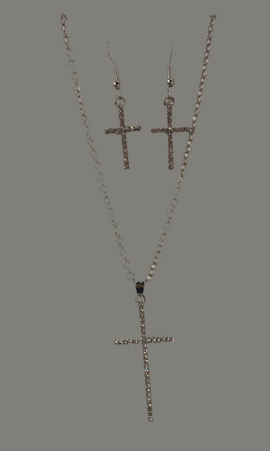 Aretes y collar de cruz set - Bling Bling