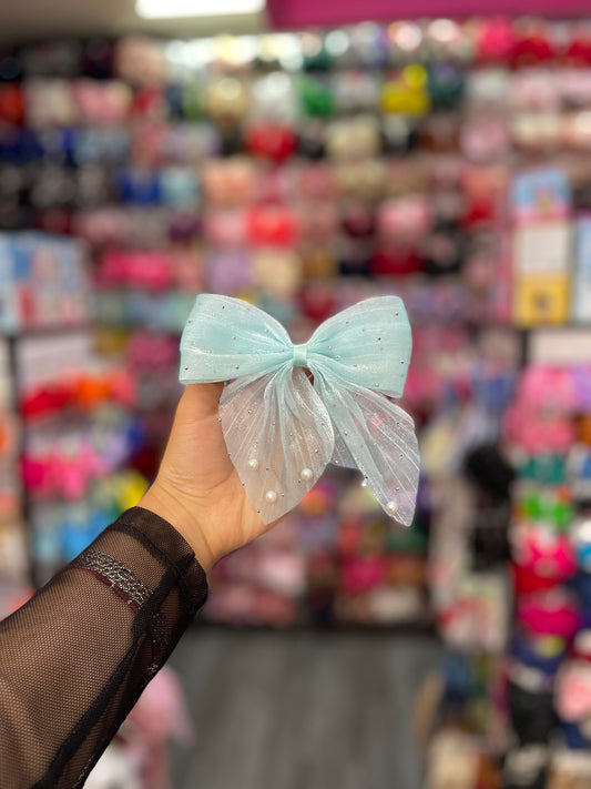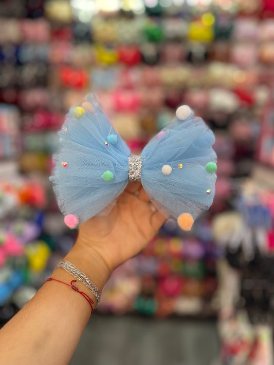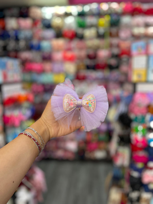 Moño Doble Con Glitter Y Tul - Los Moños De Kari
