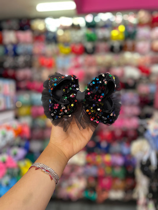 Moño Doble Color Con Tul Y Lentejuela- Los Moños De Kari
