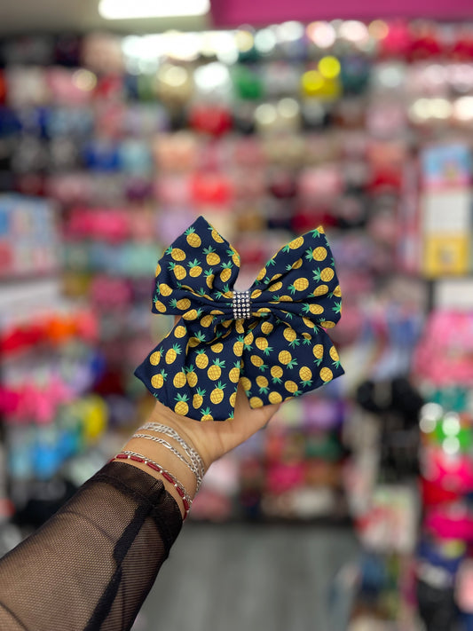 Moño Estampado Piña C/Pedrería - Los Moños De Kari