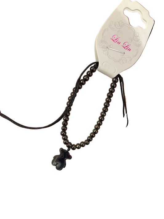 Pulsera de perlas negras , ajustable de hilo - cristal