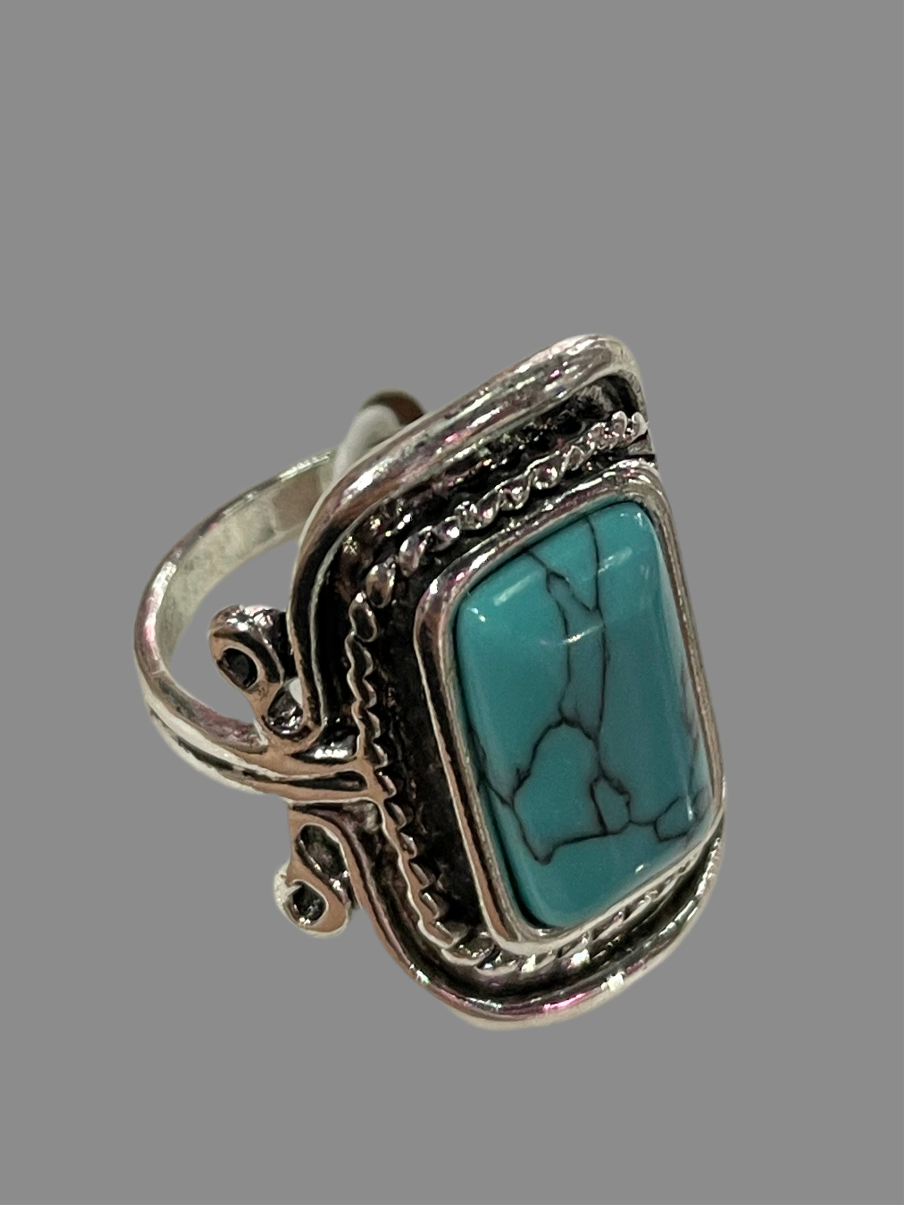 Anillo plateado con piedra grande en tono azul