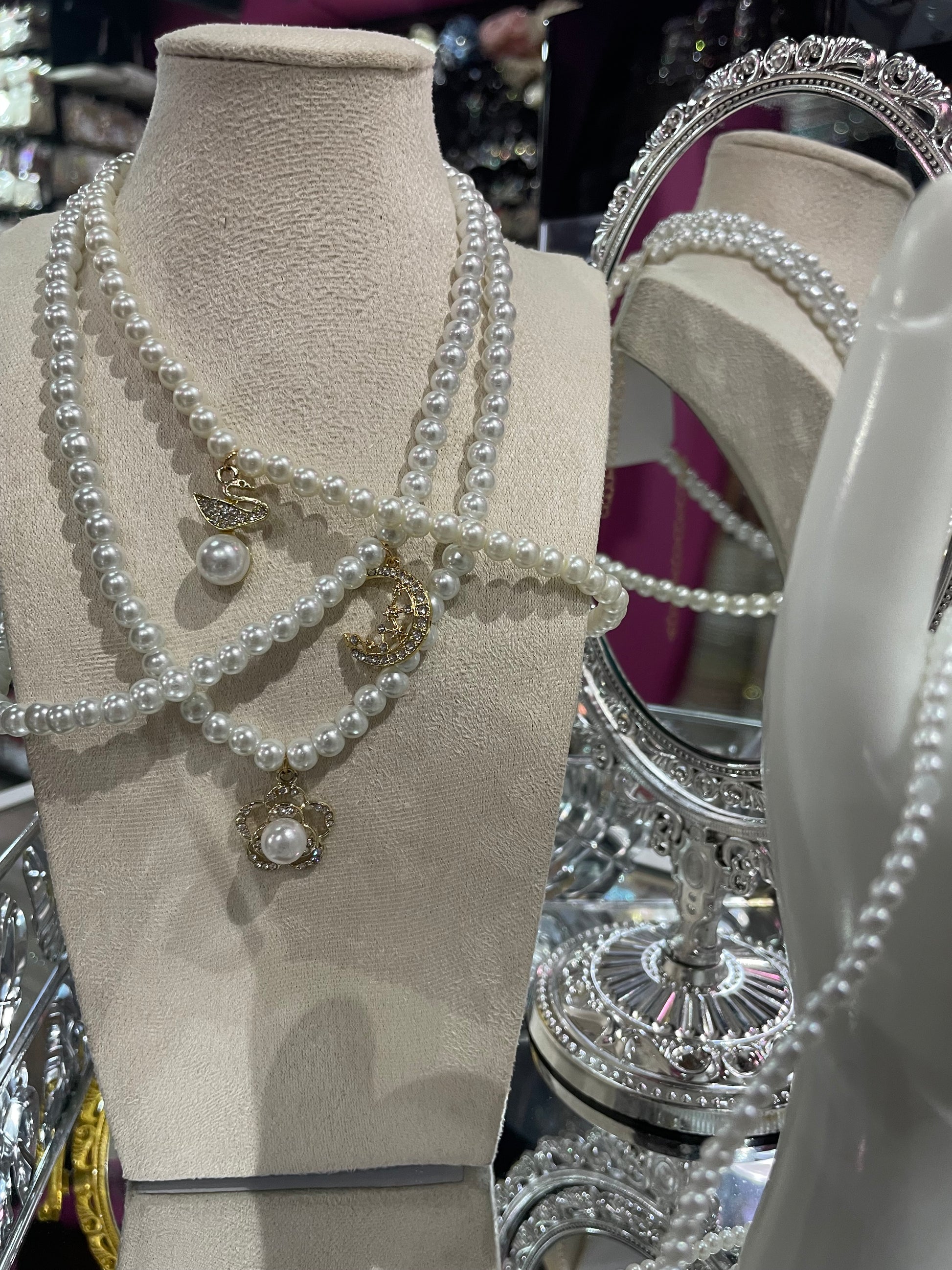 Luce elegante y con personalidad con este collar de perlas en dos tamaños: pequeñas y grandes, que le dan un toque moderno y único. Incluye diferentes modelos de dije para que elijas el que mejor va contigo.