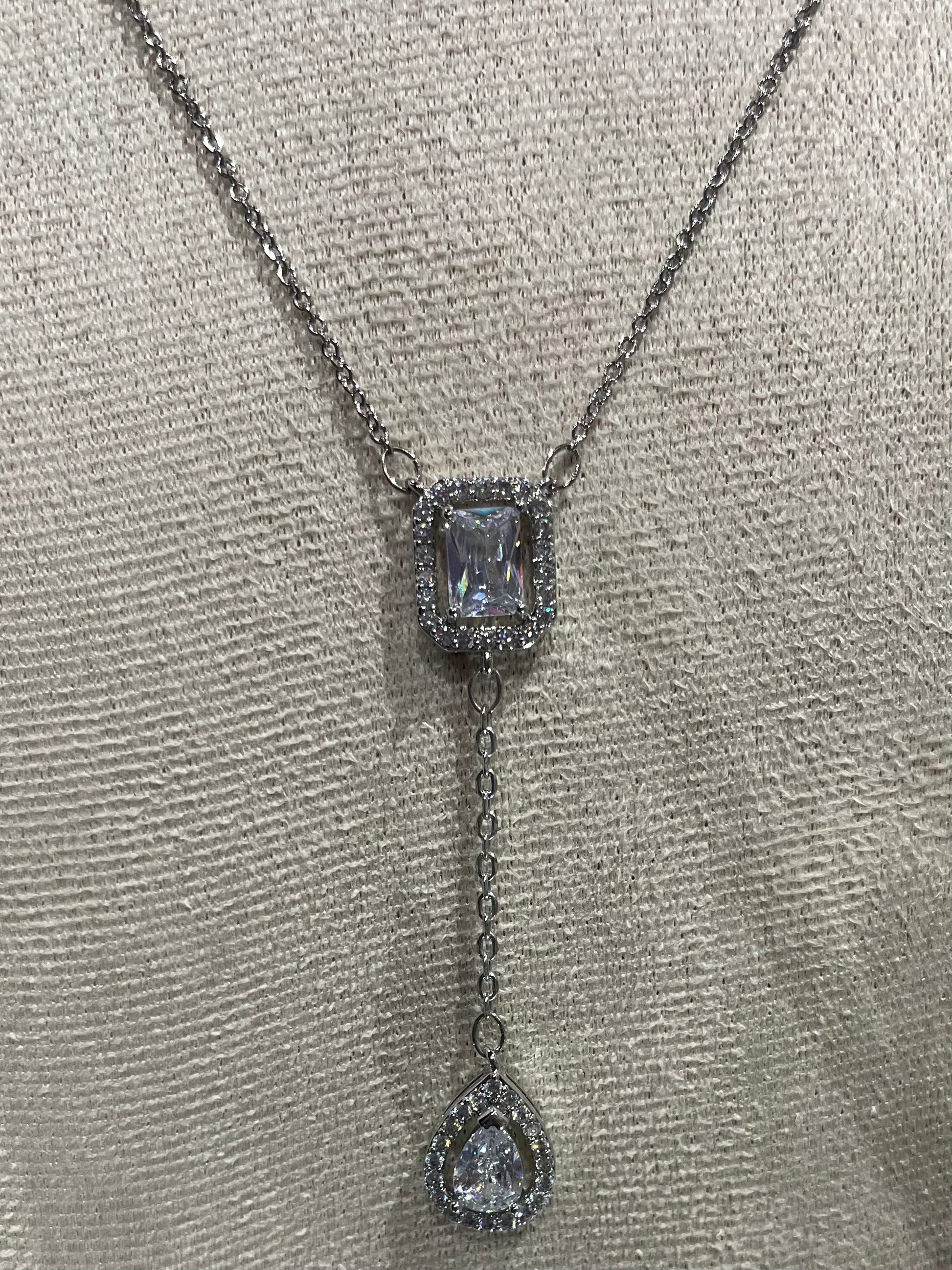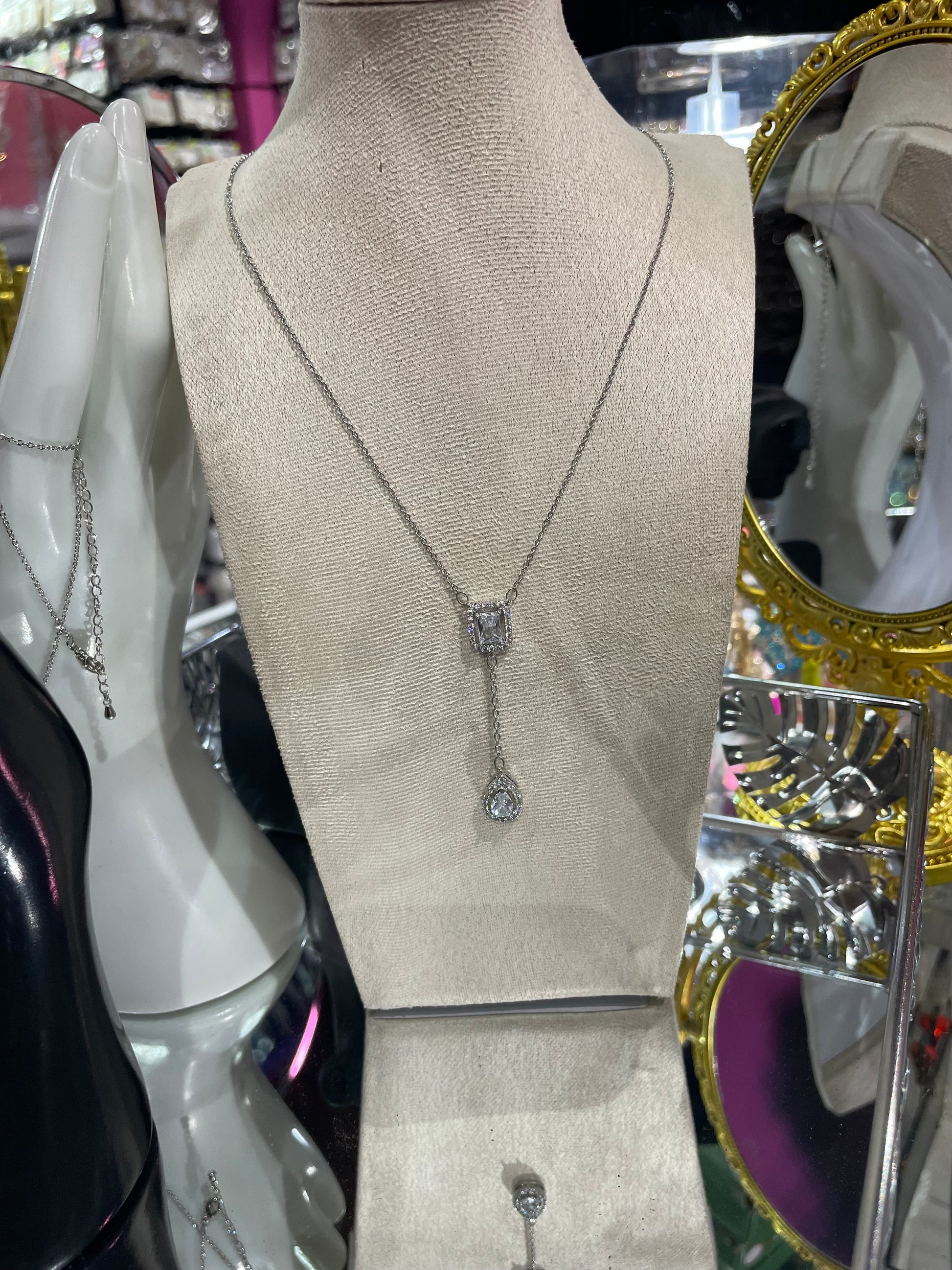 Collar de Zirconia con dije Cuadrado y dije de Gota - Bling Bling