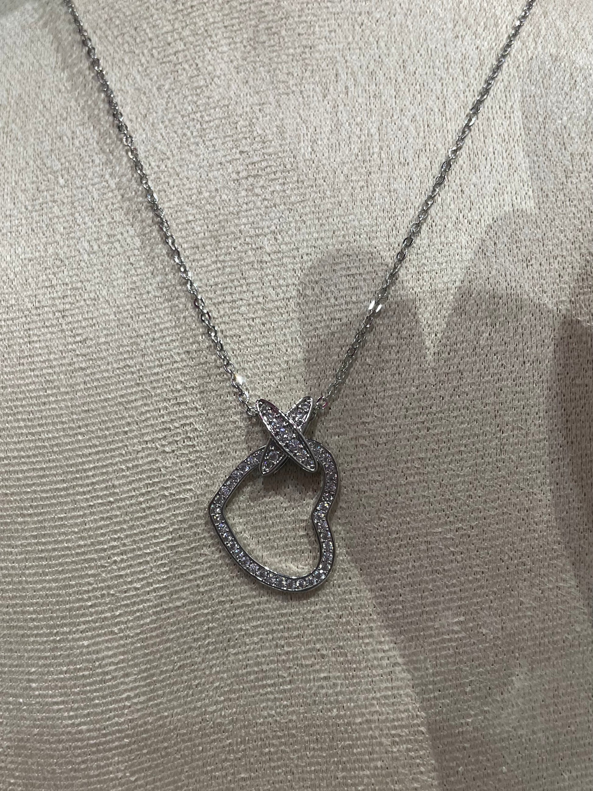 La “X”, símbolo de besos, conexión o incluso destino, está finamente trabajada y engastada con zirconias cúbicas de alta calidad que reflejan la luz con cada movimiento, aportando un brillo sutil pero cautivador. El corazón, con su forma suave y clásica, añade un toque emotivo y femenino que equilibra perfectamente el diseño moderno de la pieza.