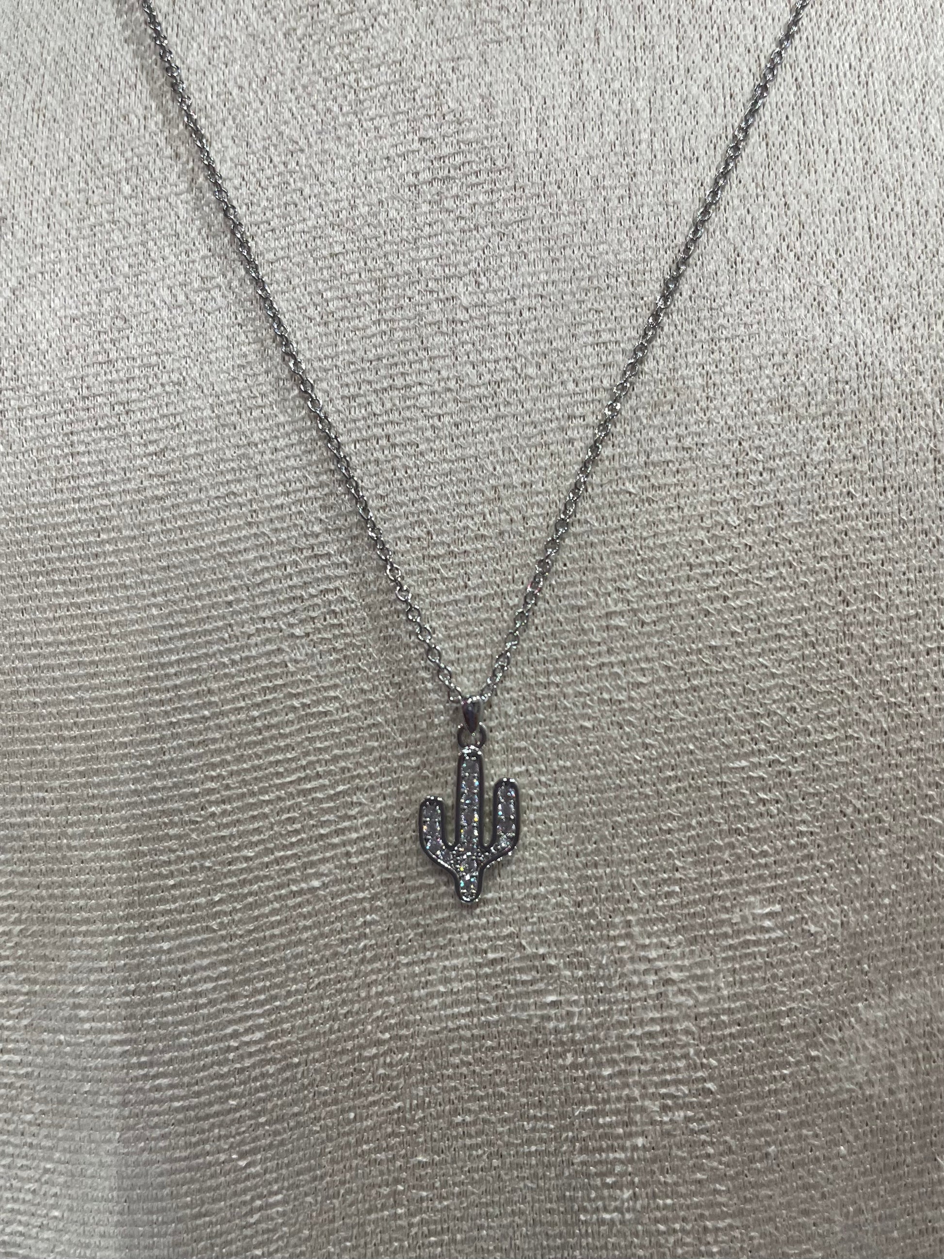 Collar de Zirconia con dije de Cactus - Bling Bling