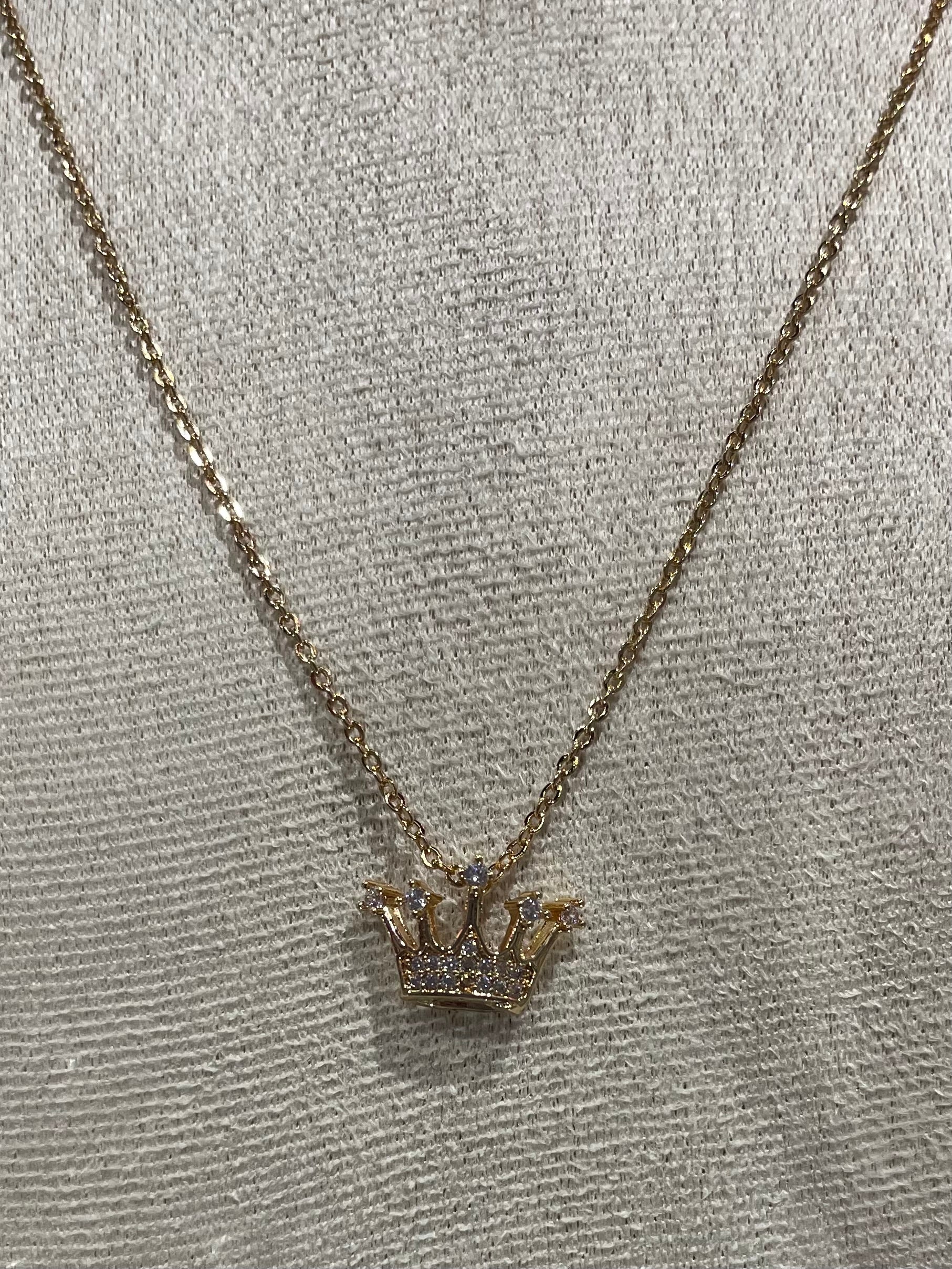 Este delicado accesorio combina sofisticación y brillo en una pieza única, perfecta para destacar tu estilo en cualquier ocasión. El collar presenta una cadena delgada y sutil que se adapta cómodamente al cuello, permitiendo que el protagonista sea el dije en forma de corona: un símbolo de poder, elegancia y feminidad.