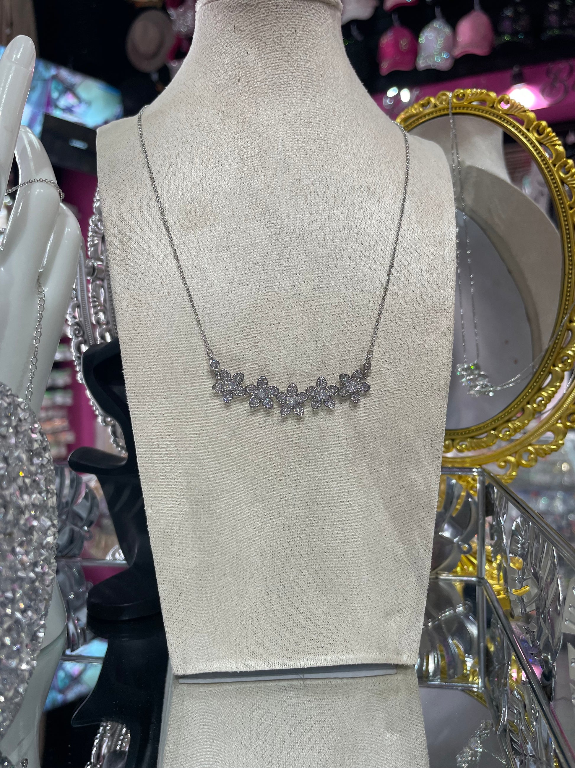 Agrega un toque de delicadeza y brillo a tu estilo con este hermoso collar de zirconia, diseñado para realzar tu feminidad con elegancia. Su encantador dije de flores, finamente elaborado, captura la belleza de la naturaleza en cada pétalo, mientras las pequeñas zirconias incrustadas aportan un destello sutil y sofisticado.
