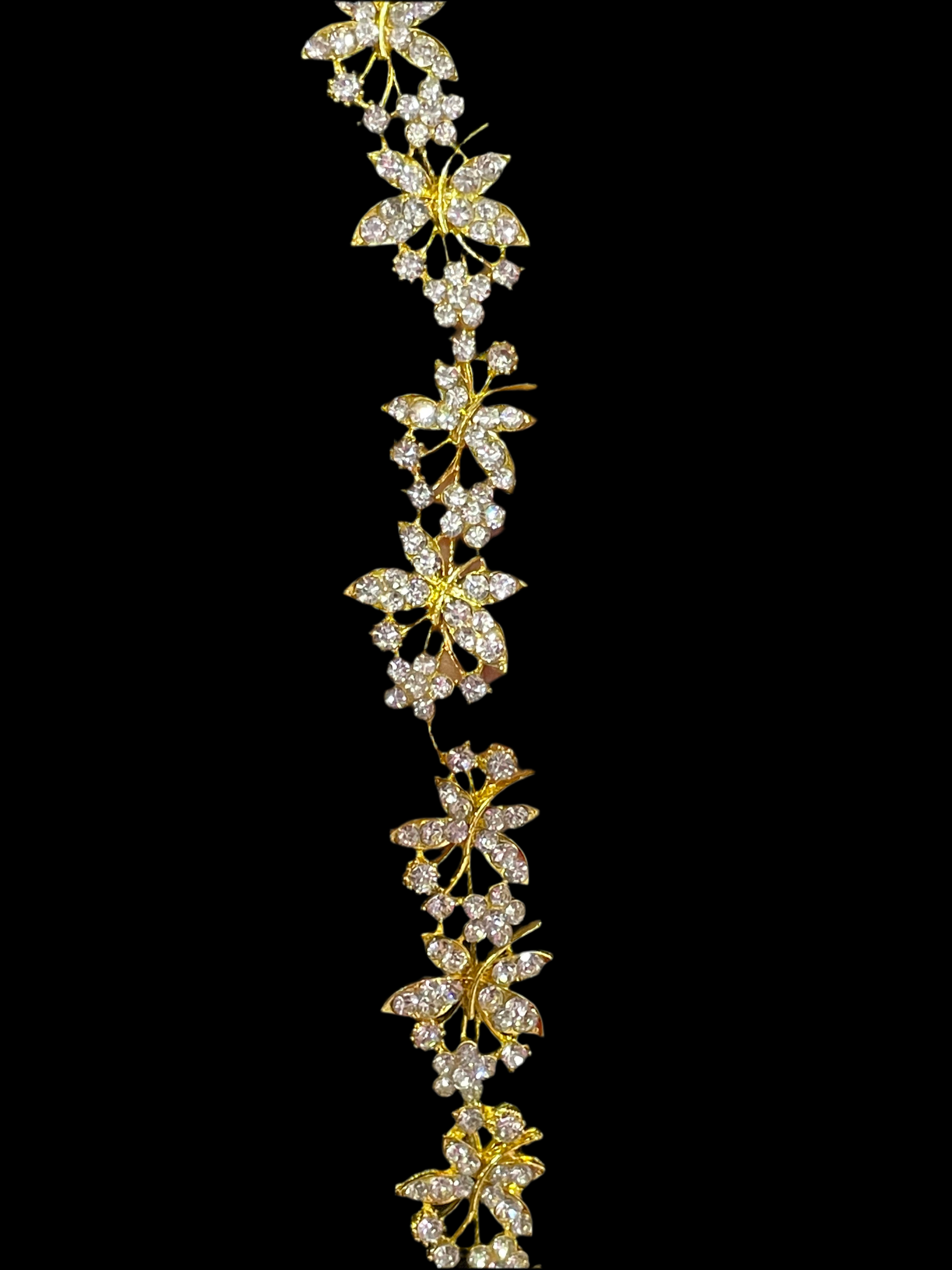 Dale un toque elegante y brillante a tu peinado con esta guía para el cabello en color dorado, ideal para ocasiones especiales o para realzar tu look diario. Está decorada con dos tipos de diseños únicos que combinan a la perfección: puede incluir figuras como hojas, cristales o flores, todos con un acabado brillante que atrapa la luz y añade sofisticación.