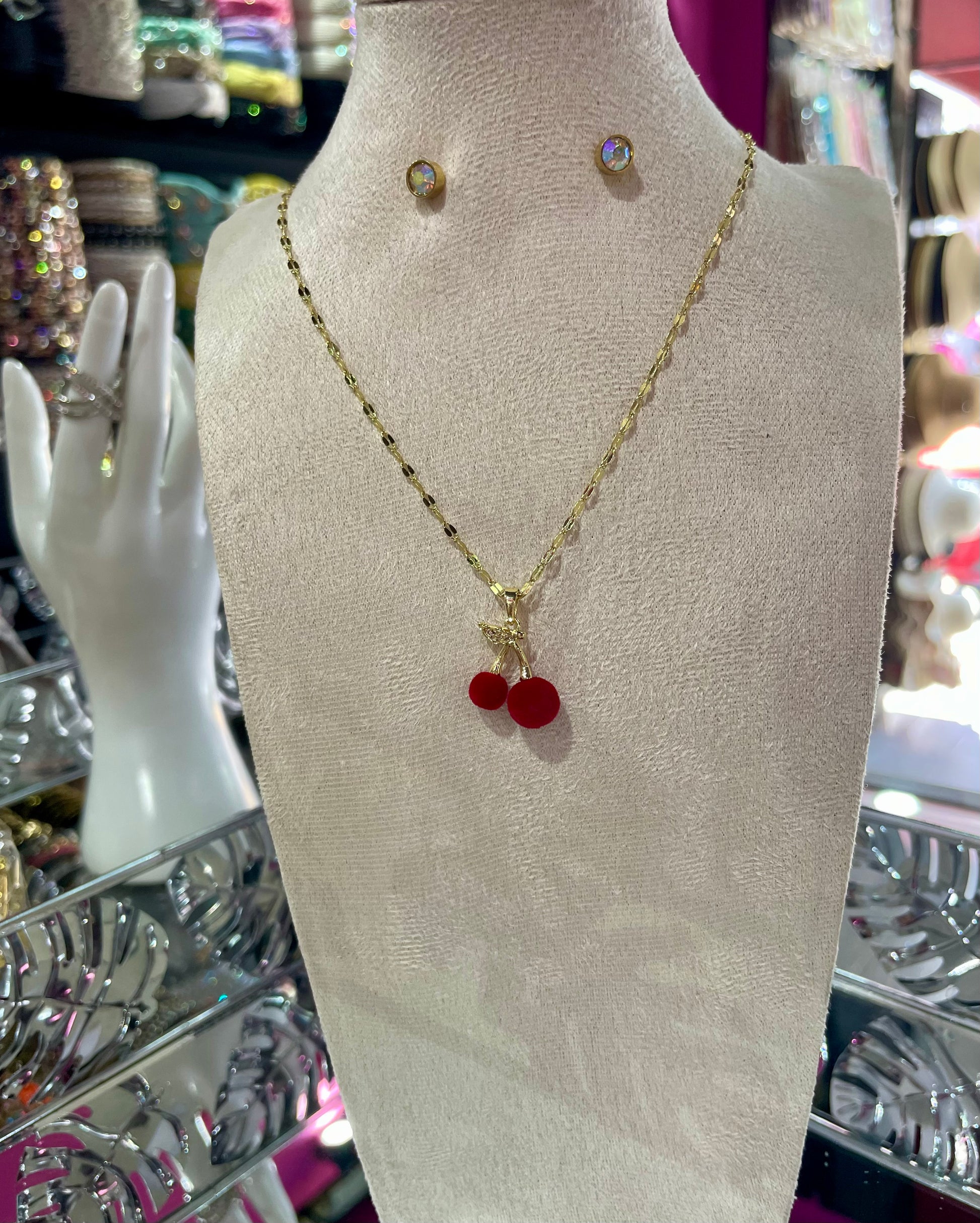 Juego de Collar y aretes con dije de Cereza - Bling Bling
