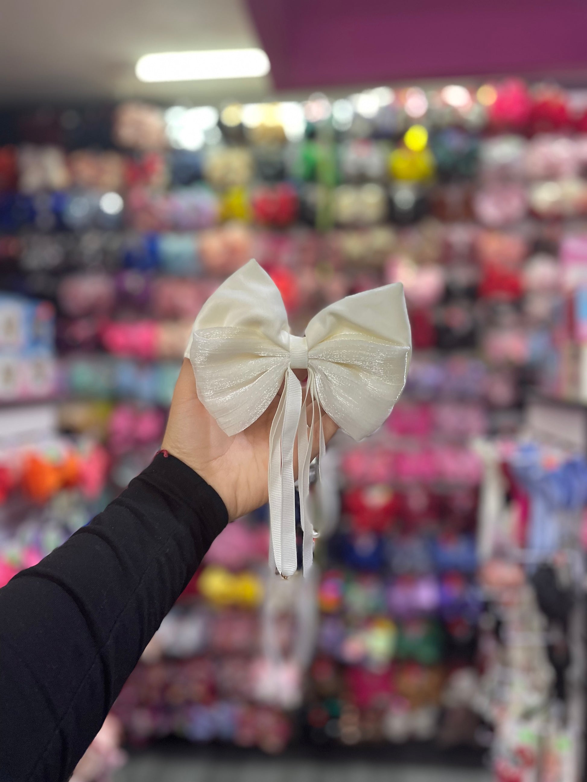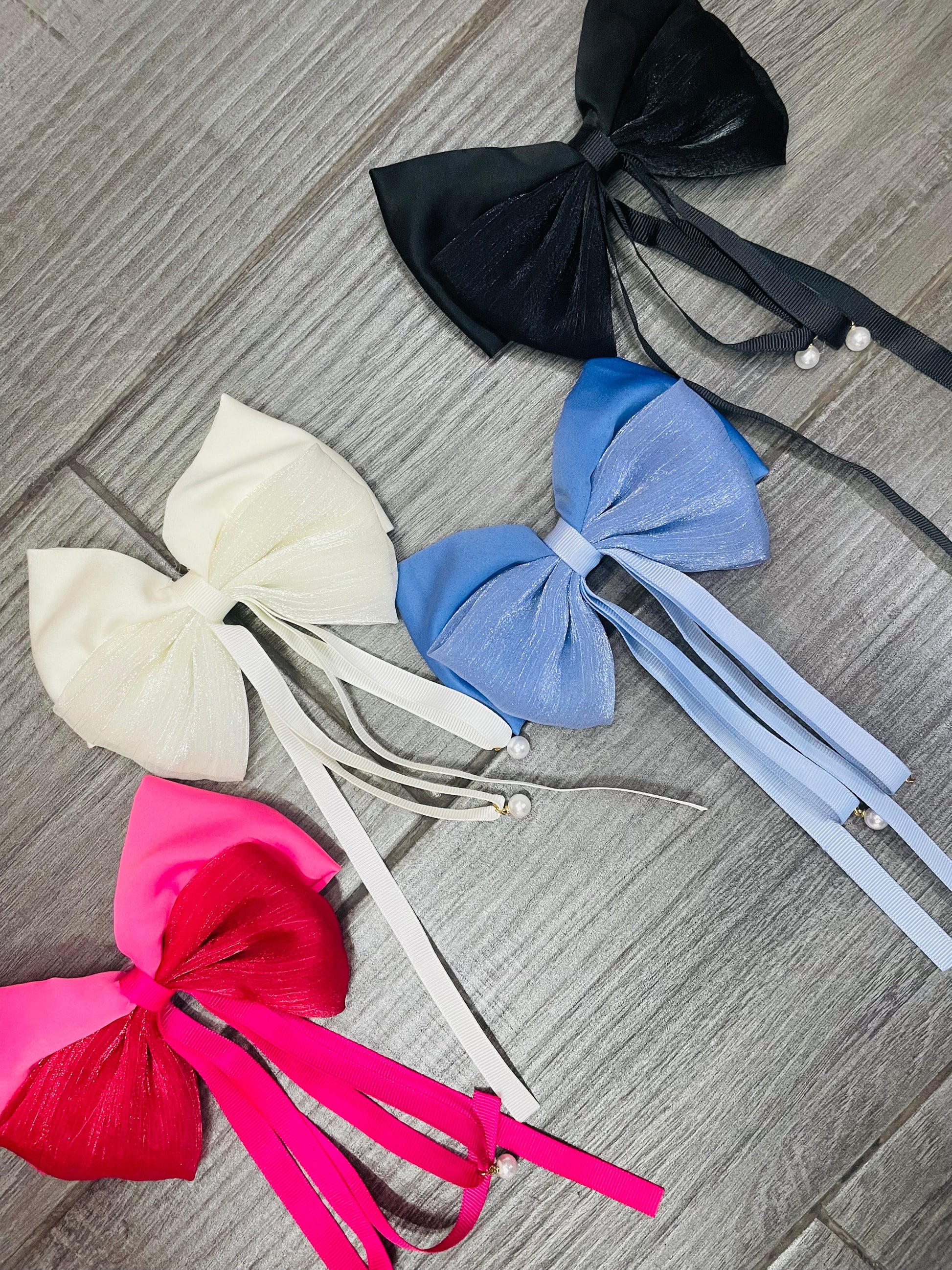 Este elegante moño está confeccionado en una delicada tela de organza brillante, que aporta un toque sutil de luminosidad y sofisticación. Su diseño se caracteriza por la fluidez y ligereza de la organza, que crea un efecto visualmente atractivo y etéreo. En el centro del moño, una perla colgante añade un detalle de refinada distinción, proporcionando un contraste perfecto con el brillo suave de la tela. Ideal para complementar atuendos formales o darle un toque especial a cualquier look, este moño destaca por su delicadeza y elegancia.