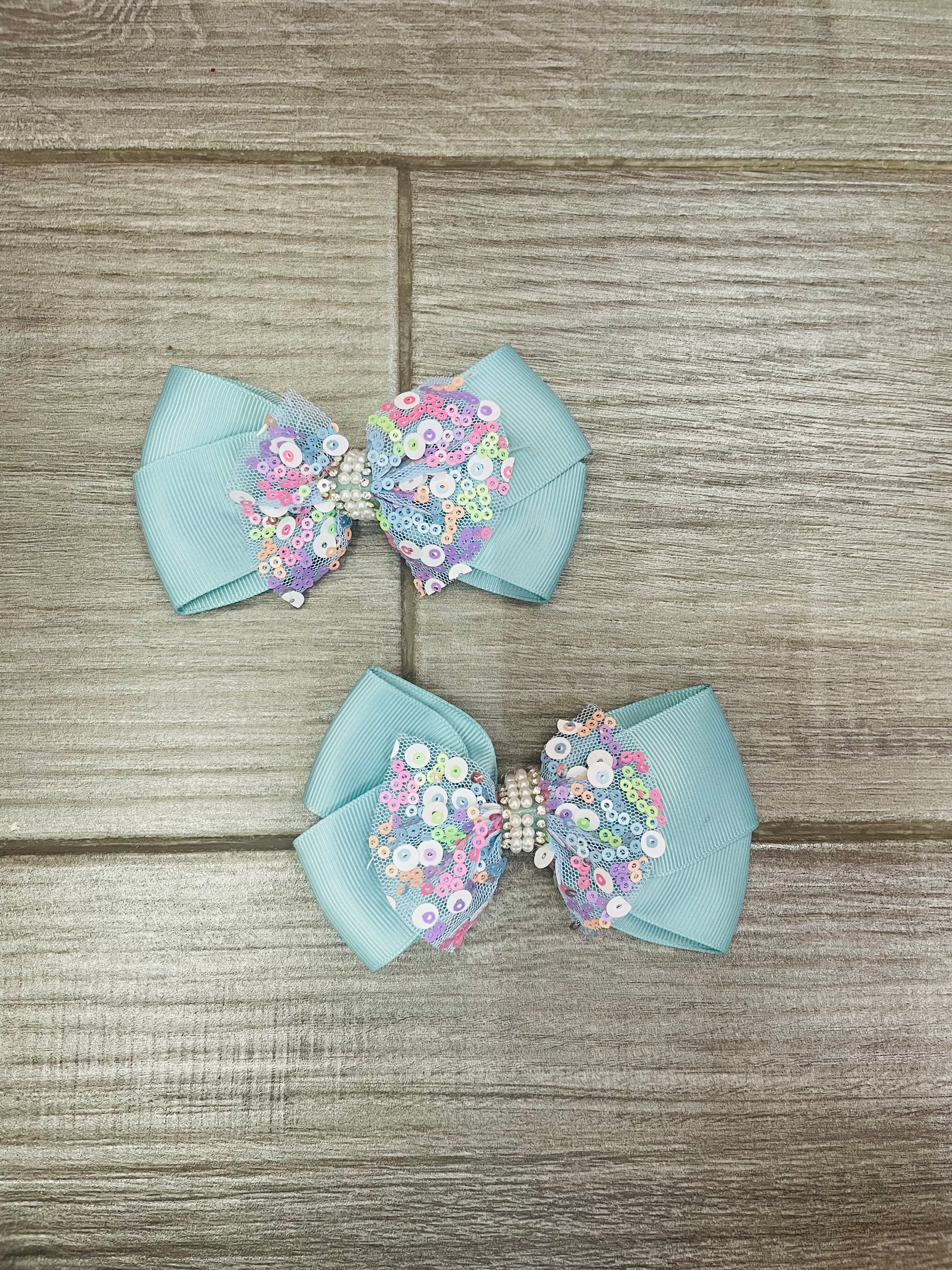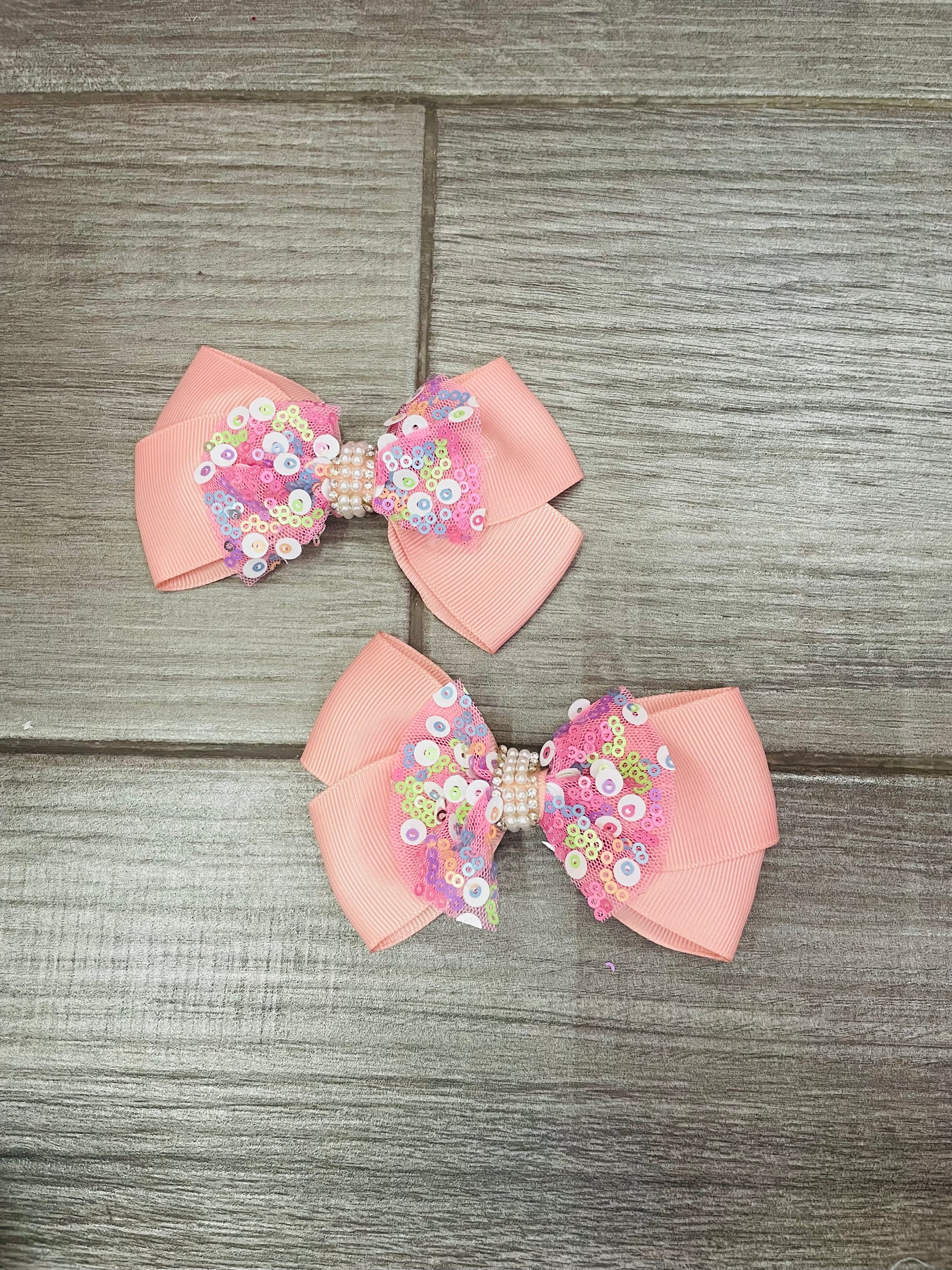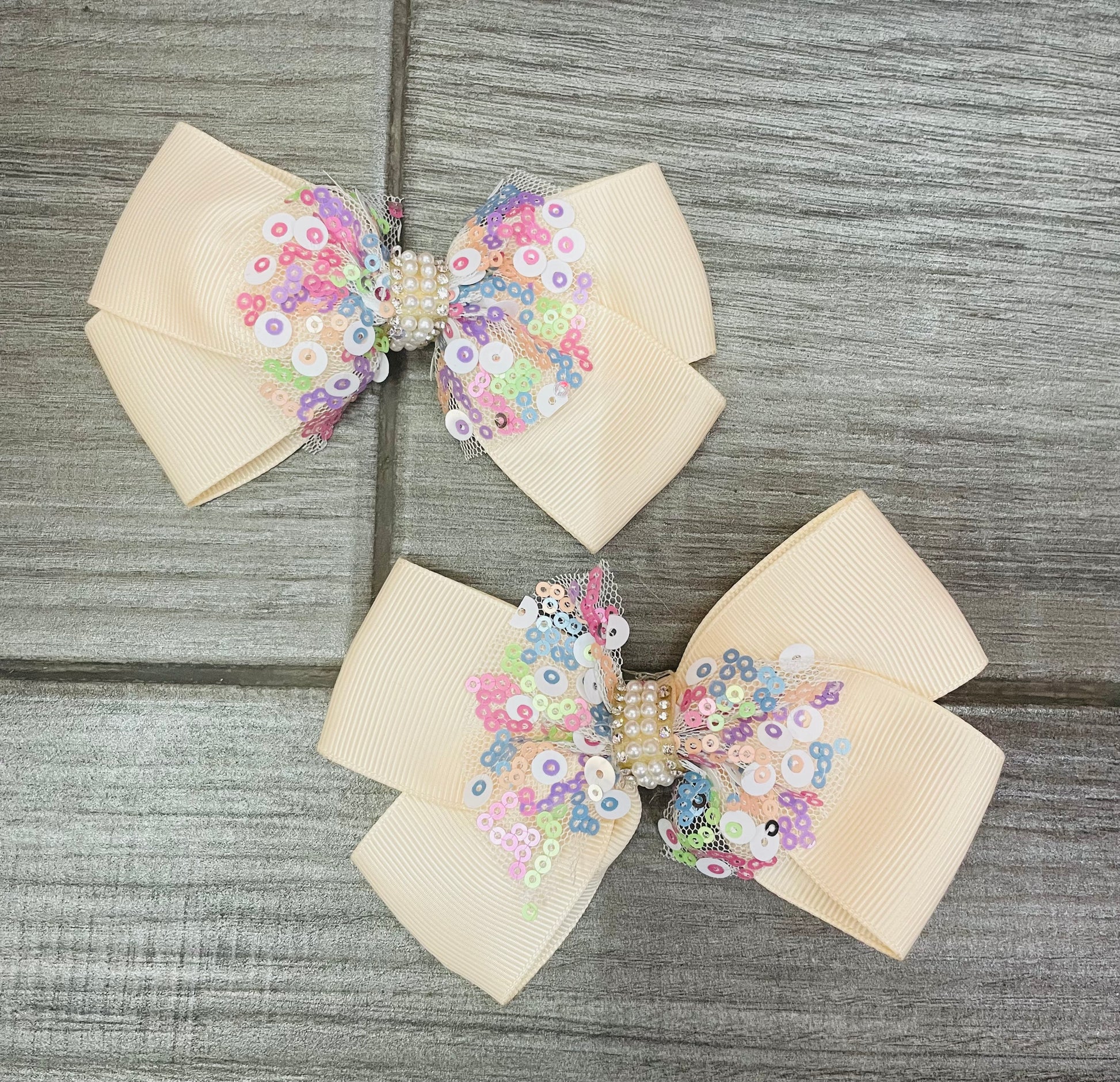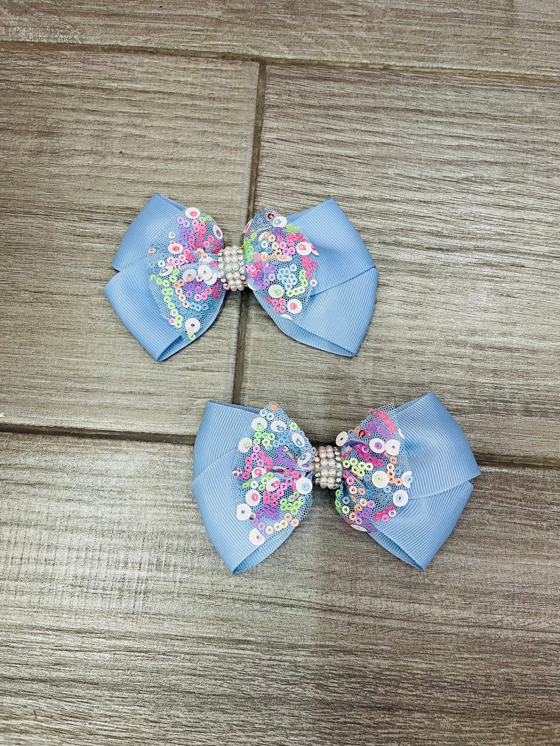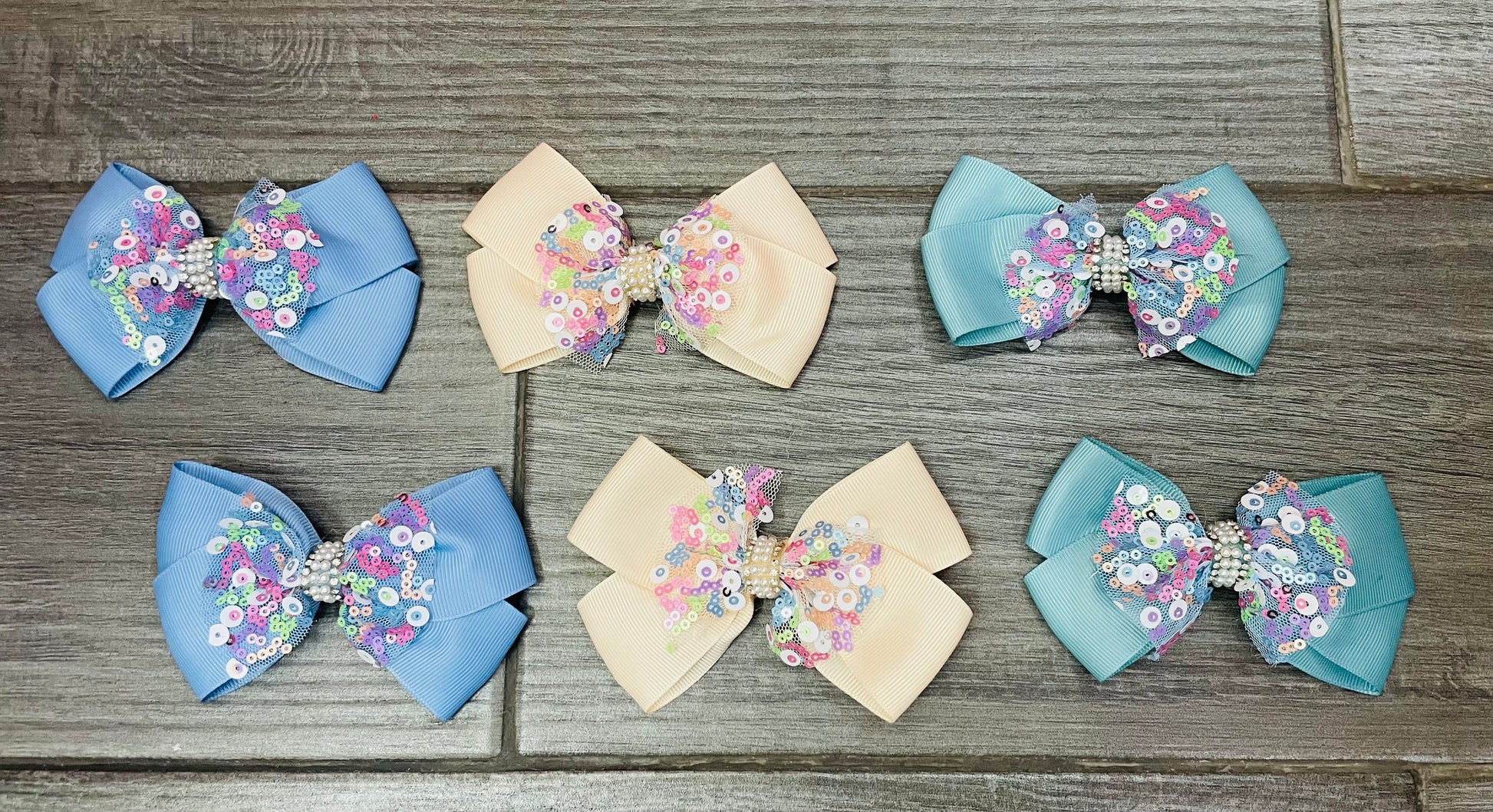 Moño Con Perla y Lentejuela (Par) - Los Moños De Kari