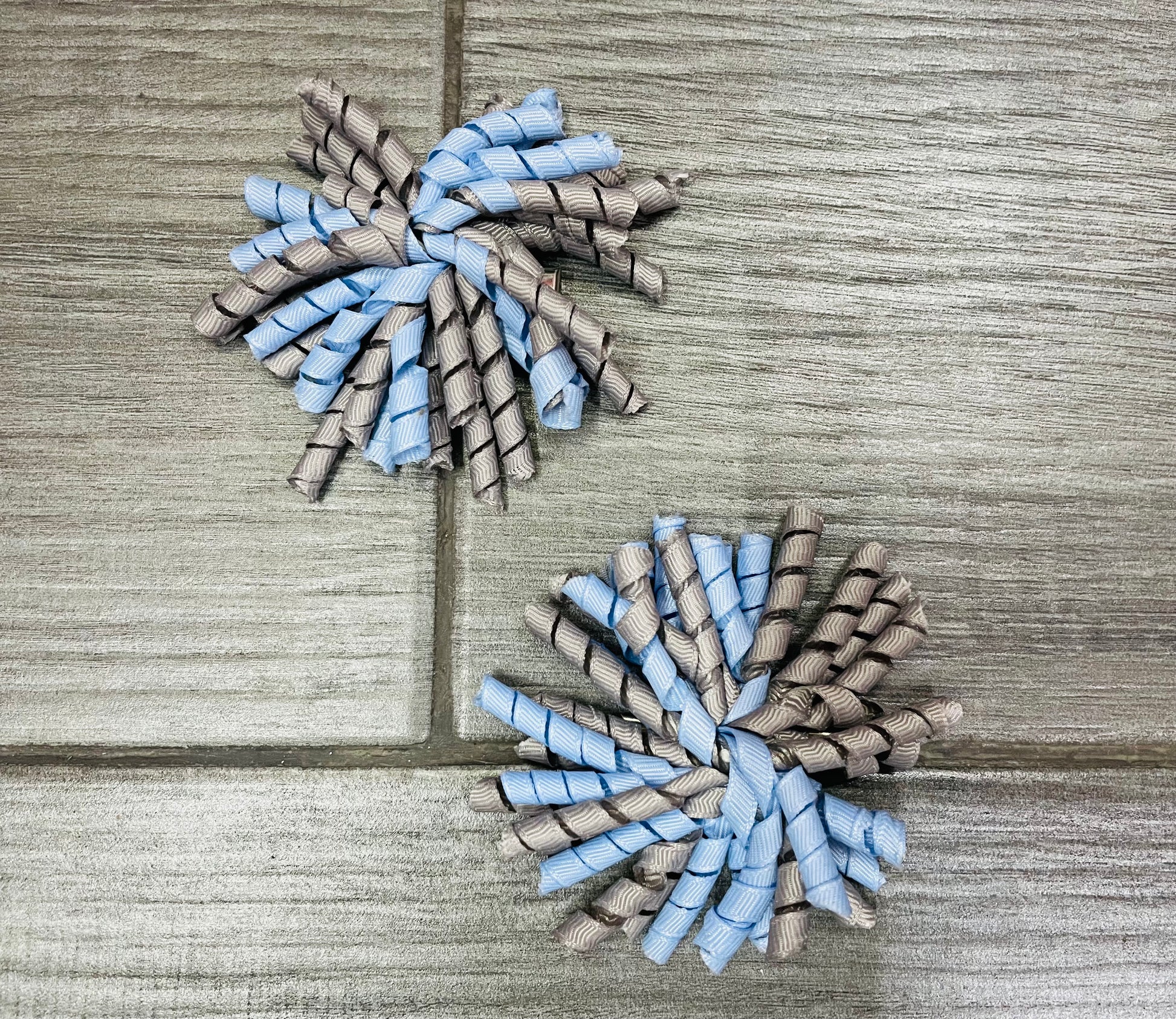 Estos moños con rizos de tela son una opción encantadora y sofisticada para complementar cualquier estilo. Están confeccionados en tela suave y resistente, con rizos delicadamente formados que aportan volumen y movimiento al diseño. Cada moño tiene un acabado pulido, con detalles finos que realzan su aspecto elegante. Perfectos para ocasiones especiales o para añadir un toque único a un look diario, estos moños ofrecen un equilibrio entre lo moderno y lo clásico, con una textura que capta la luz y añade dinamismo a cualquier conjunto.