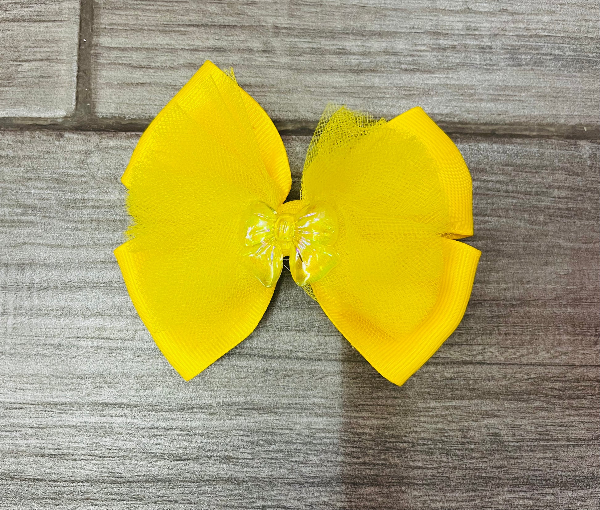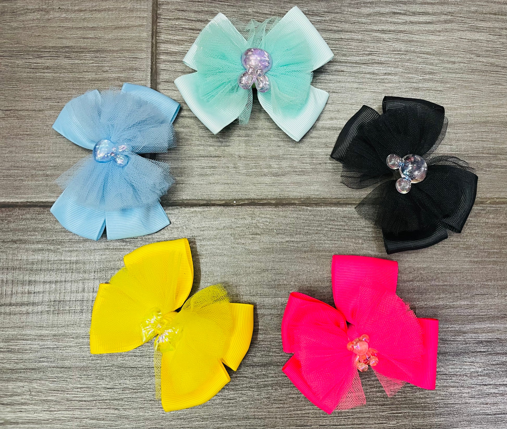 Este moño de tul con una figura de plástico en el centro es un accesorio encantador y único para cualquier ocasión. El delicado tul, suave y ligero, forma un moño voluminoso que agrega un toque de elegancia y movimiento, mientras que la figura de plástico en el centro aporta un detalle divertido y distintivo. La figura puede ser de diferentes formas, como una flor, un lazo o un animalito, añadiendo personalidad y color al diseño. Perfecto para complementar el look de tu bebé o niña, este moño es ideal tanto para eventos especiales como para el día a día, brindando un toque de dulzura y originalidad a cualquier conjunto.