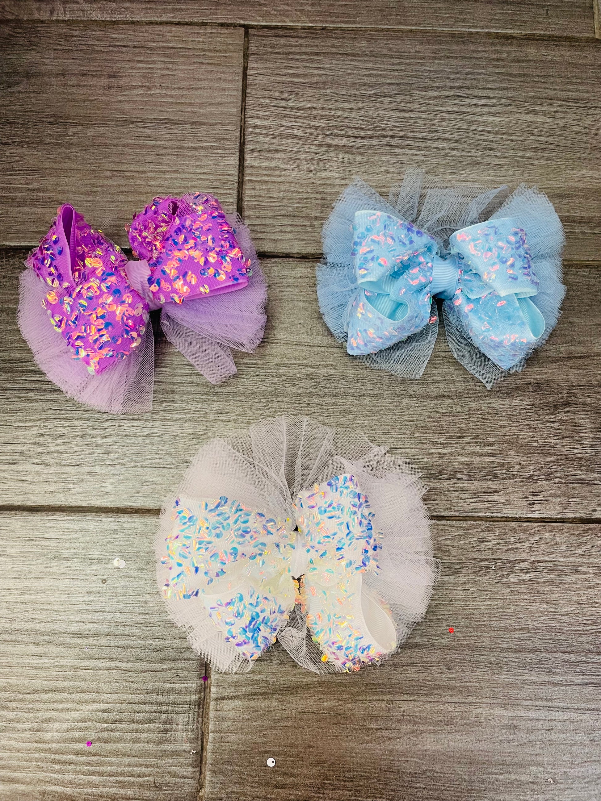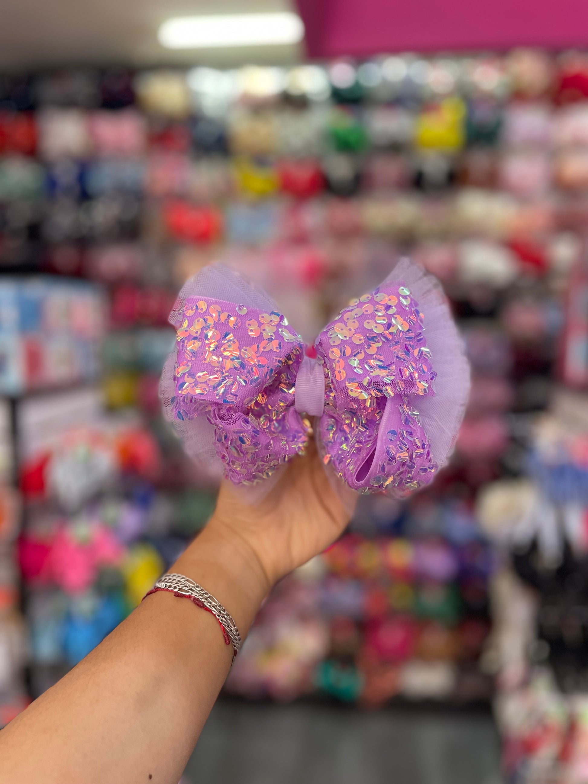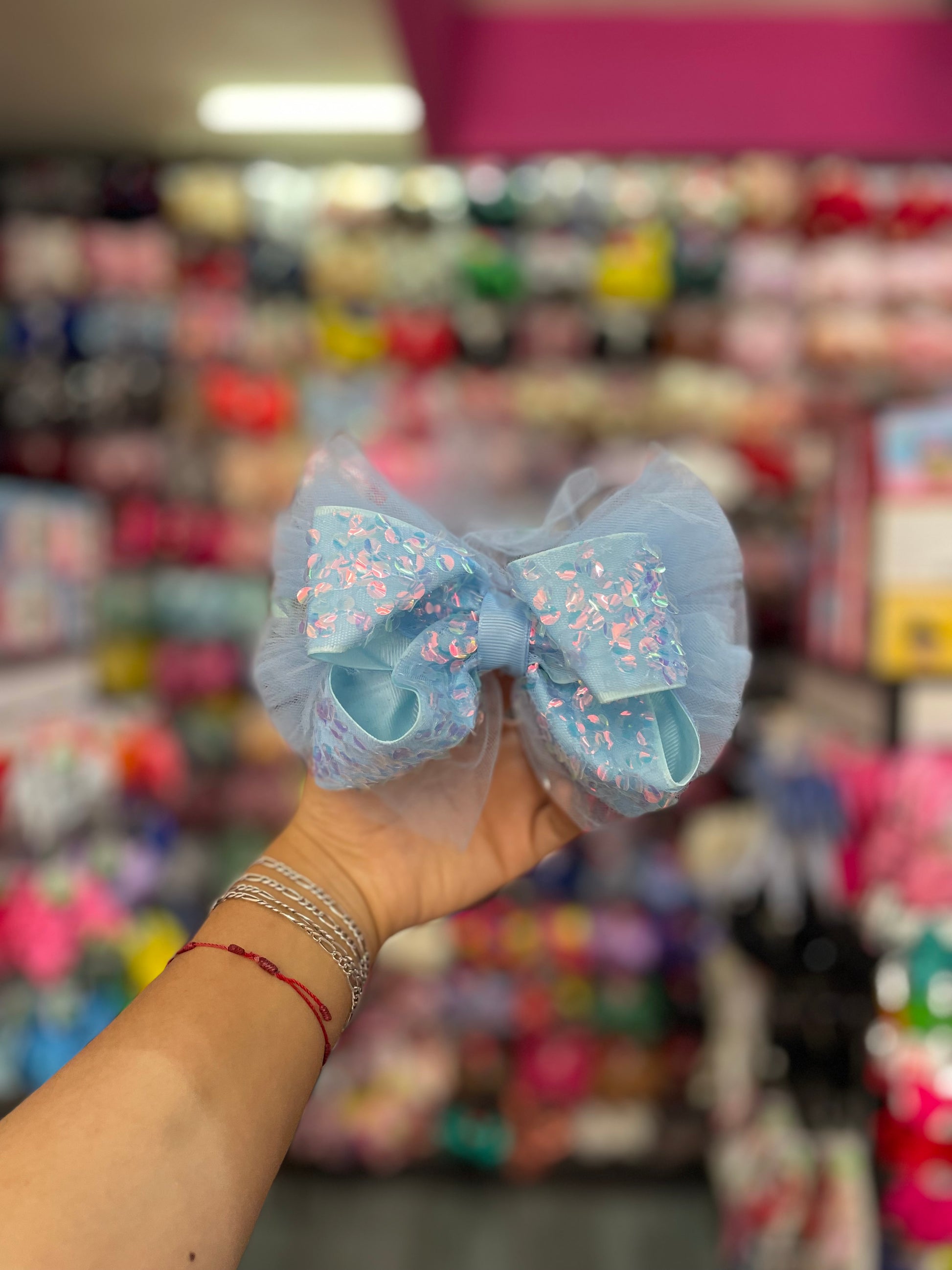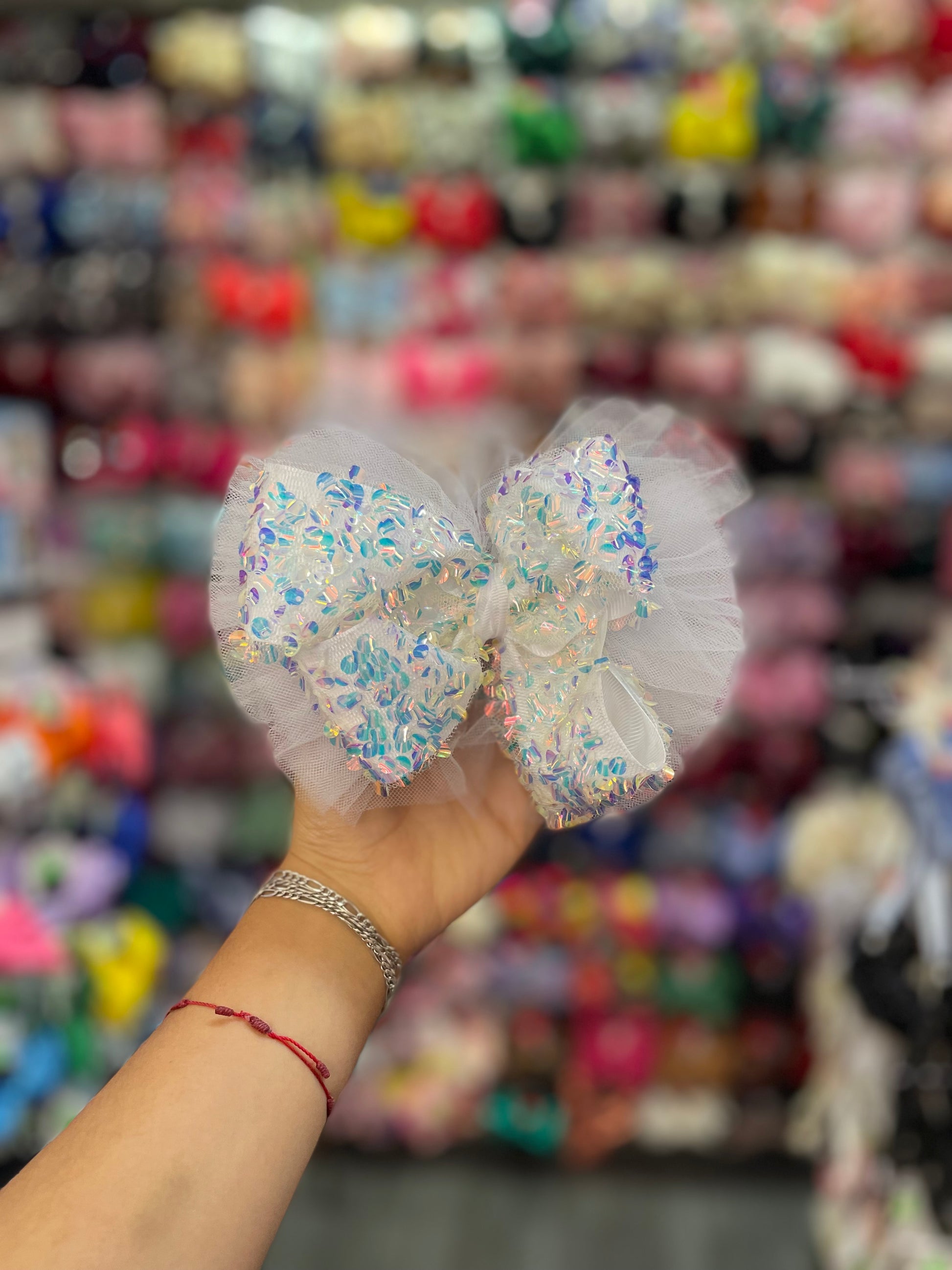 Moño Con Tul Y Lentejuela Tornasol - Los Moños De Kari