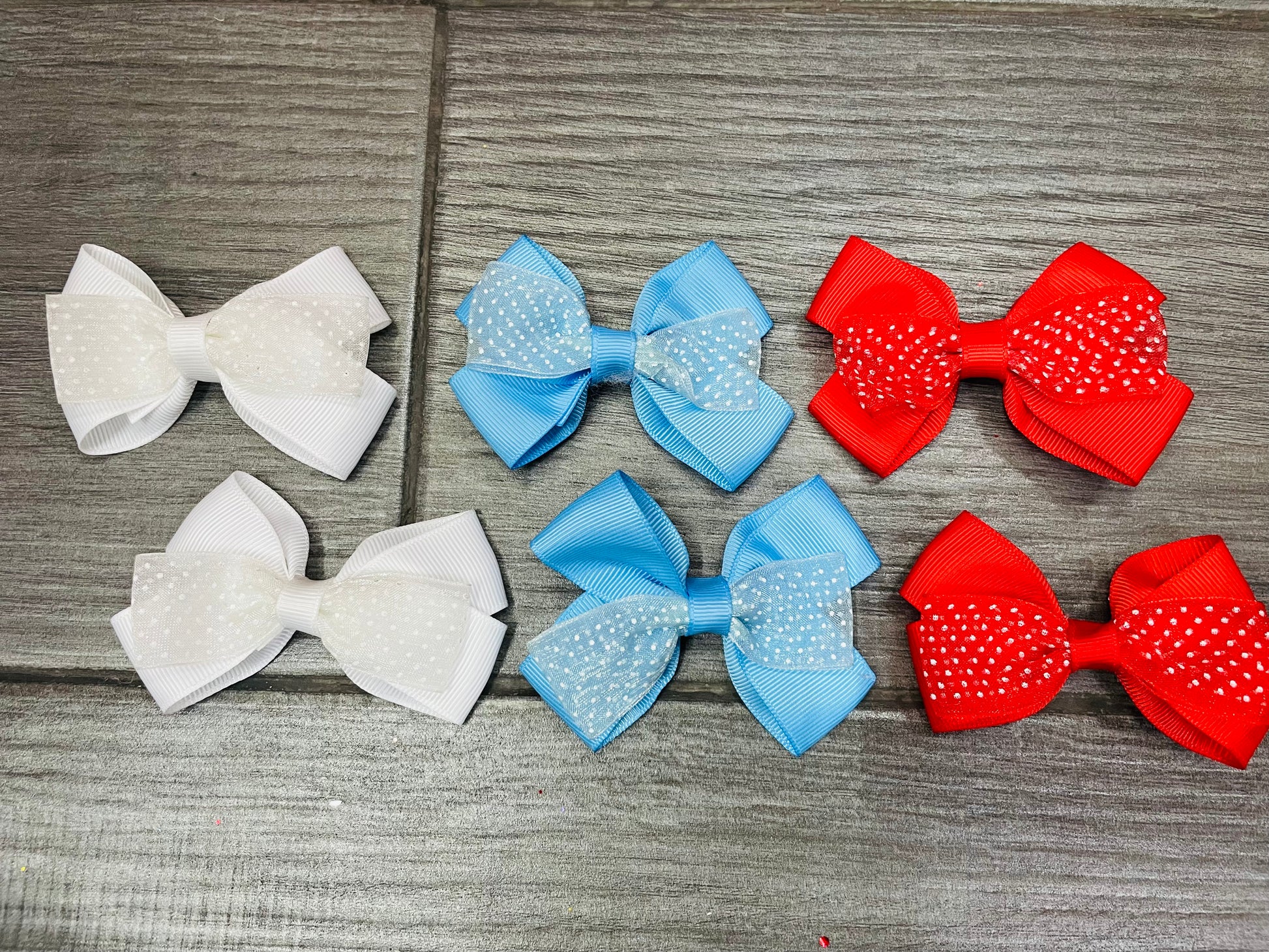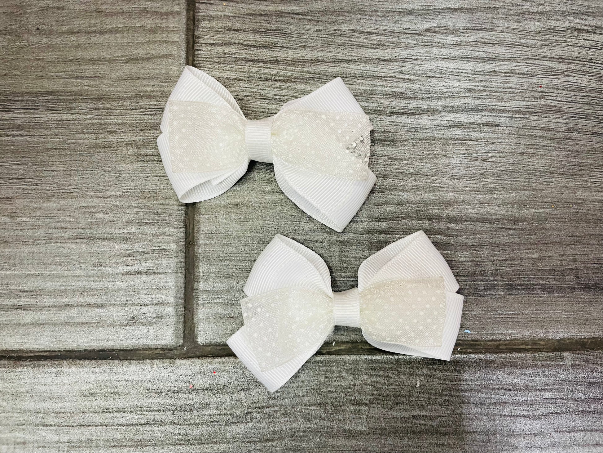 Este par de moños con tul y estampado de lunares aporta un toque juguetón y encantador a cualquier look. Hechos de delicado tul transparente, los moños están adornados con un estampado de lunares en tonos contrastantes que les da un aire moderno y divertido. La ligereza y textura del tul aportan volumen y movimiento, mientras que los lunares añaden un toque de frescura y sofisticación sin perder la sencillez. Perfectos para complementar peinados o como detalle en cualquier atuendo, estos moños son ideales para ocasiones informales o para quienes buscan un accesorio con un toque único y alegre.