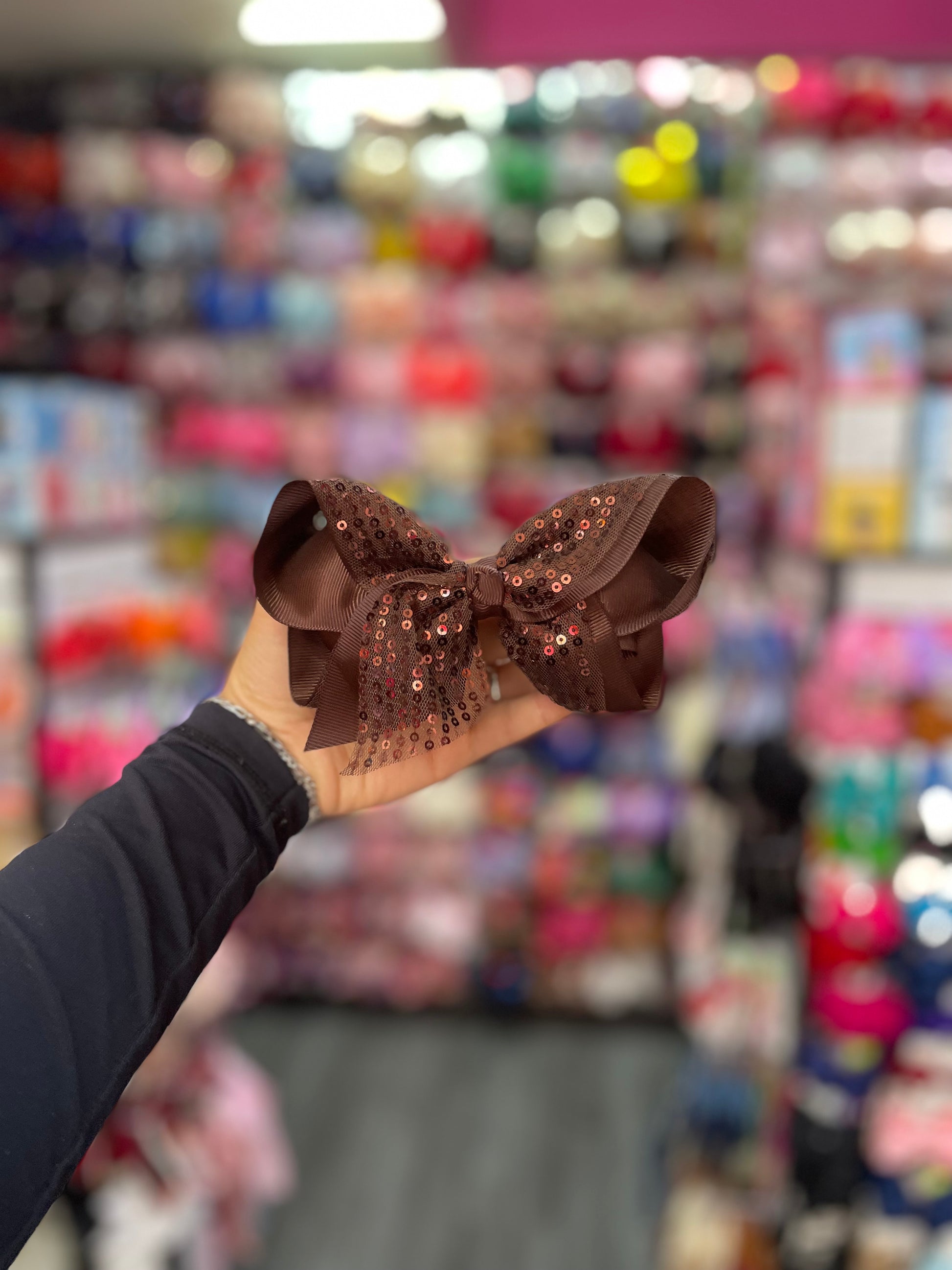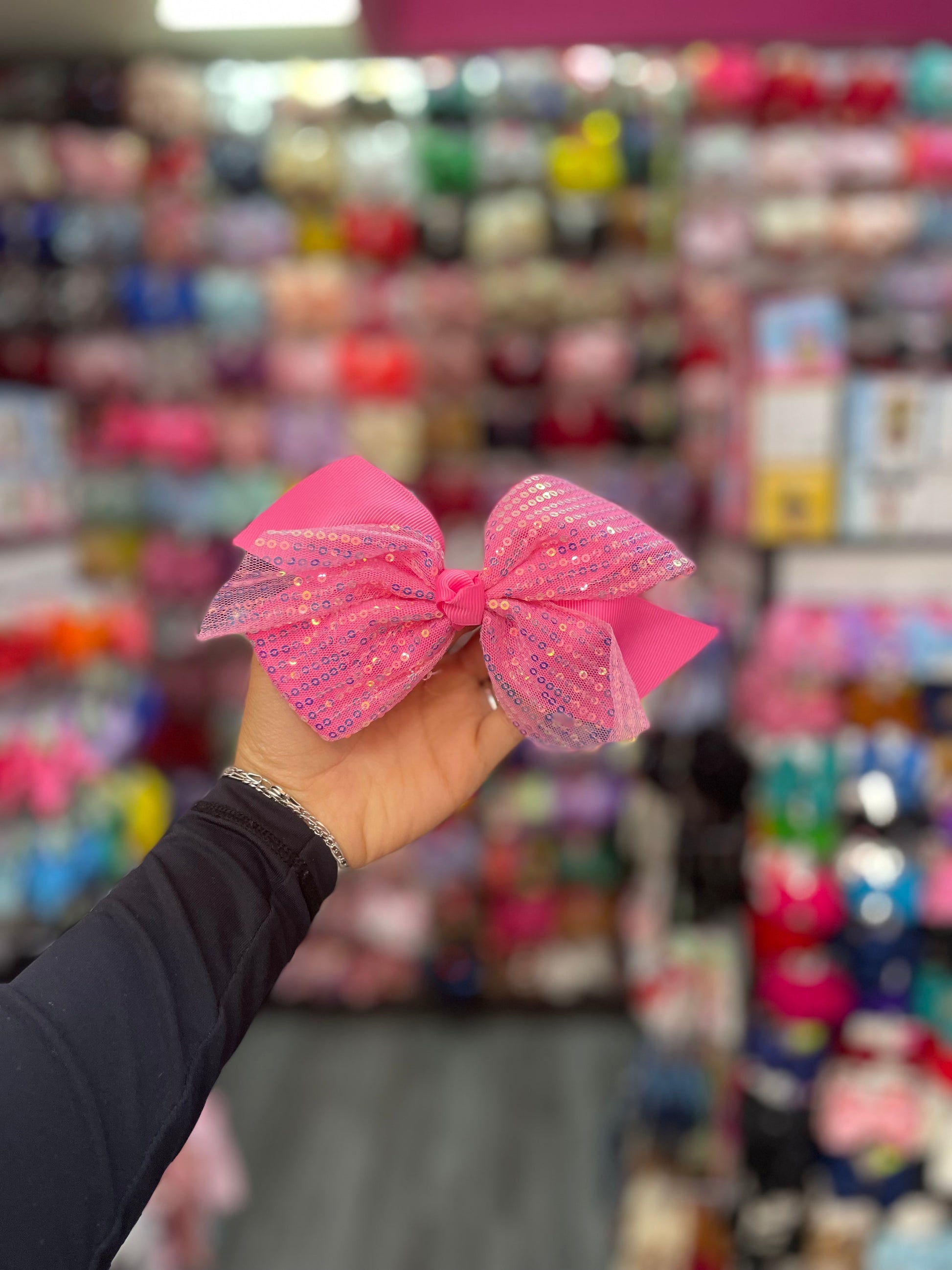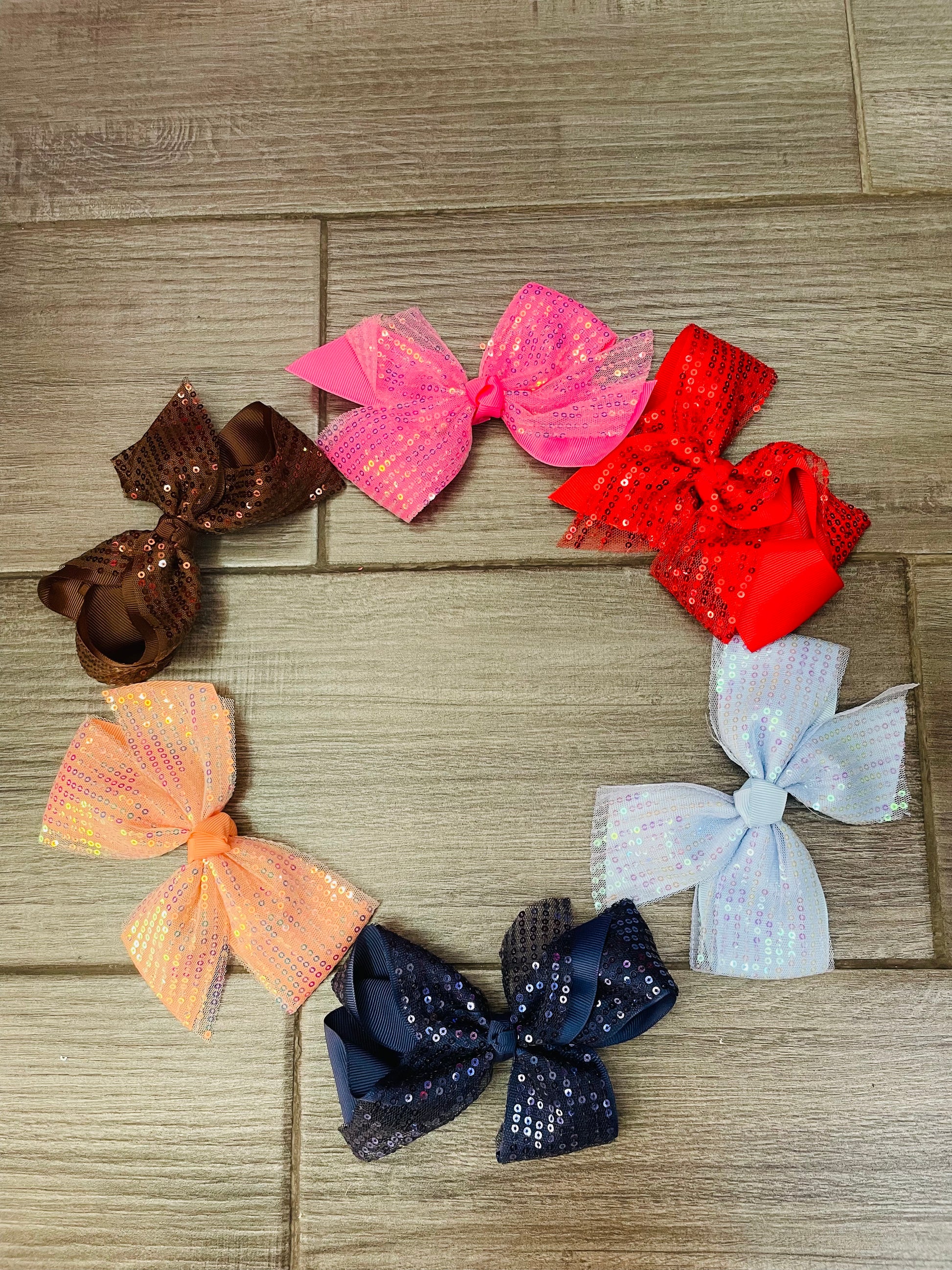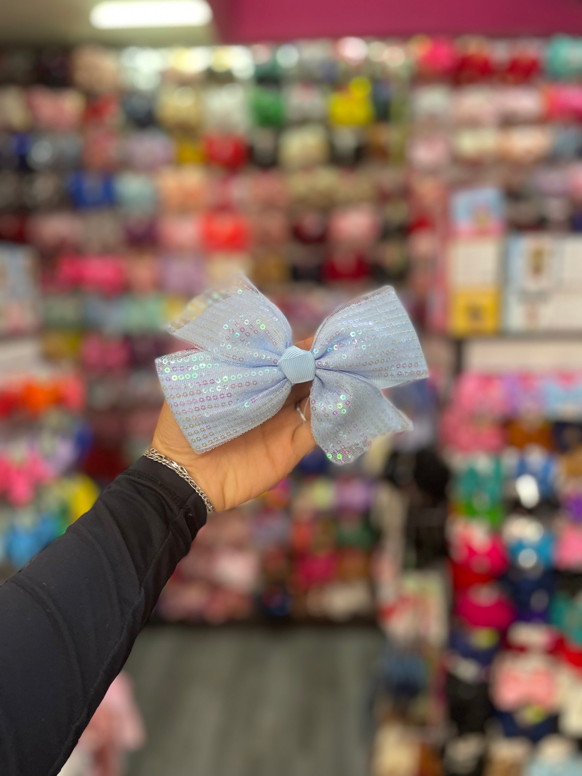 El moño de lentejuela es un accesorio llamativo y lleno de brillo, diseñado para destacar en cualquier ocasión. Confeccionado con tela cubierta de lentejuelas, este moño refleja la luz de manera espectacular, creando un efecto luminoso y deslumbrante. Las lentejuelas, que pueden ser de distintos colores o incluso en tonos metálicos, cubren completamente el moño, dándole un acabado brillante y glamoroso. El diseño de los lazos es amplio y bien estructurado, lo que le otorga volumen y una presencia imponente. Ideal para eventos especiales, fiestas o celebraciones nocturnas, el moño de lentejuela es perfecto para quienes buscan un accesorio elegante y con un toque de diversión y sofisticación.