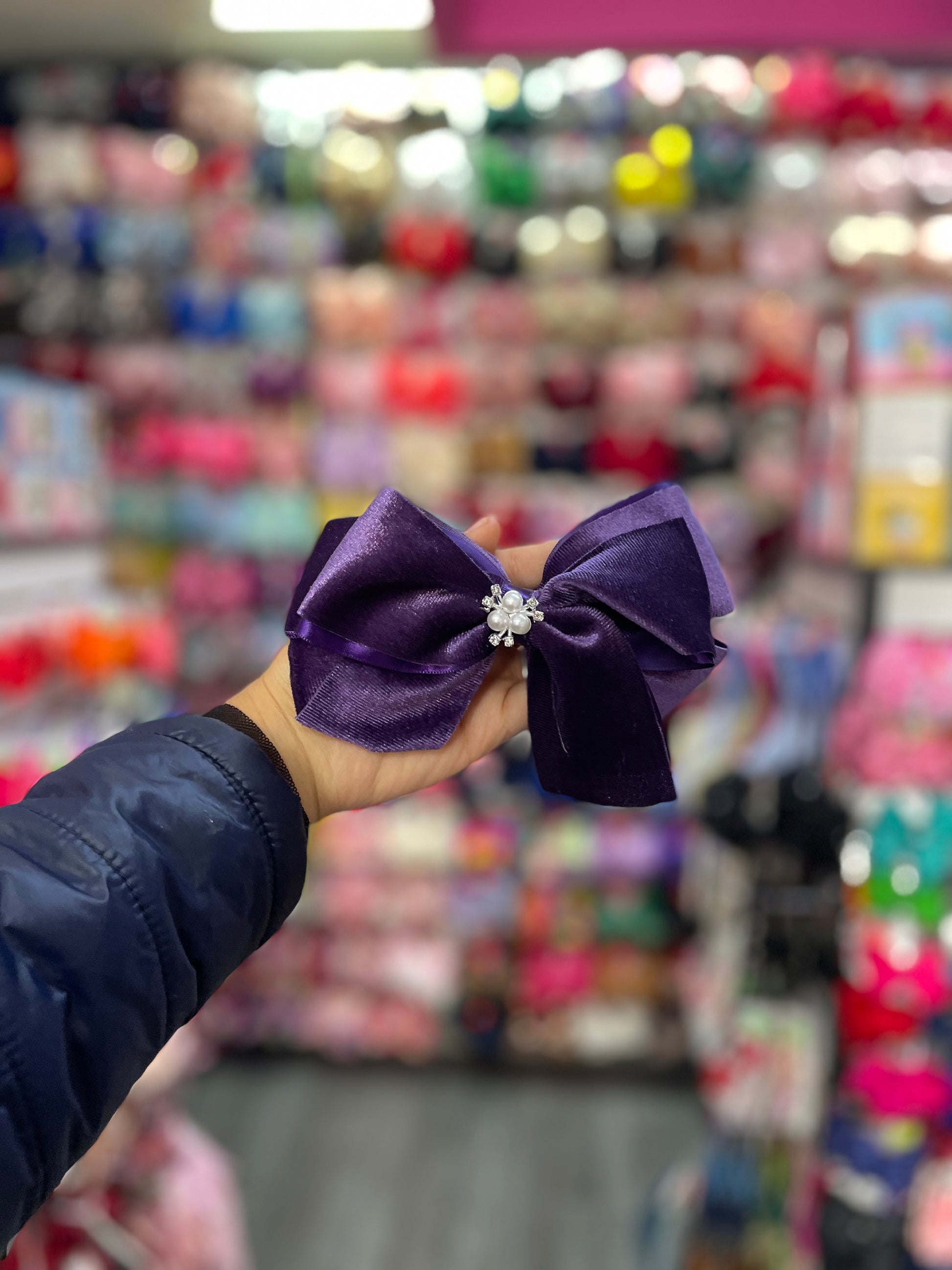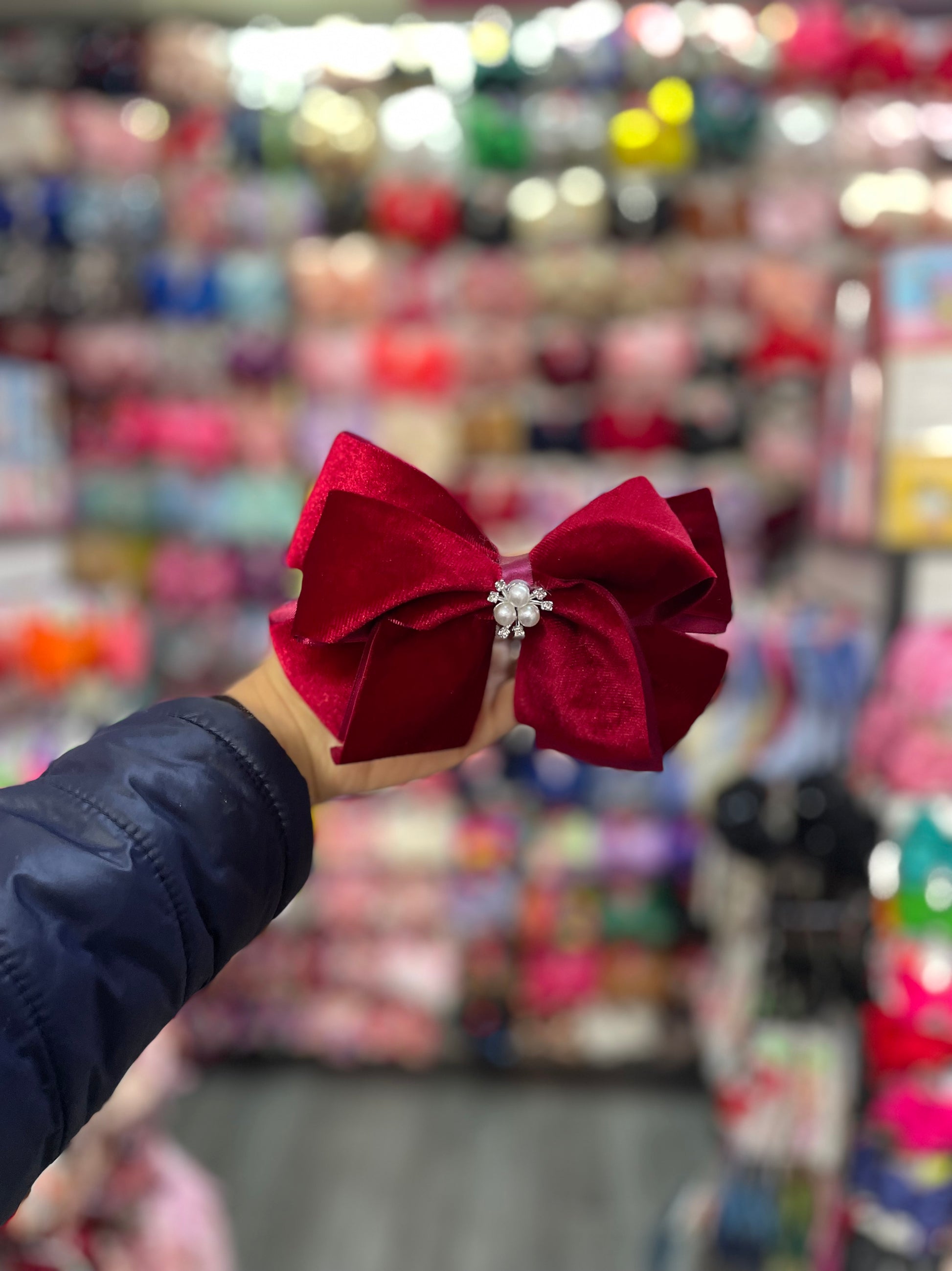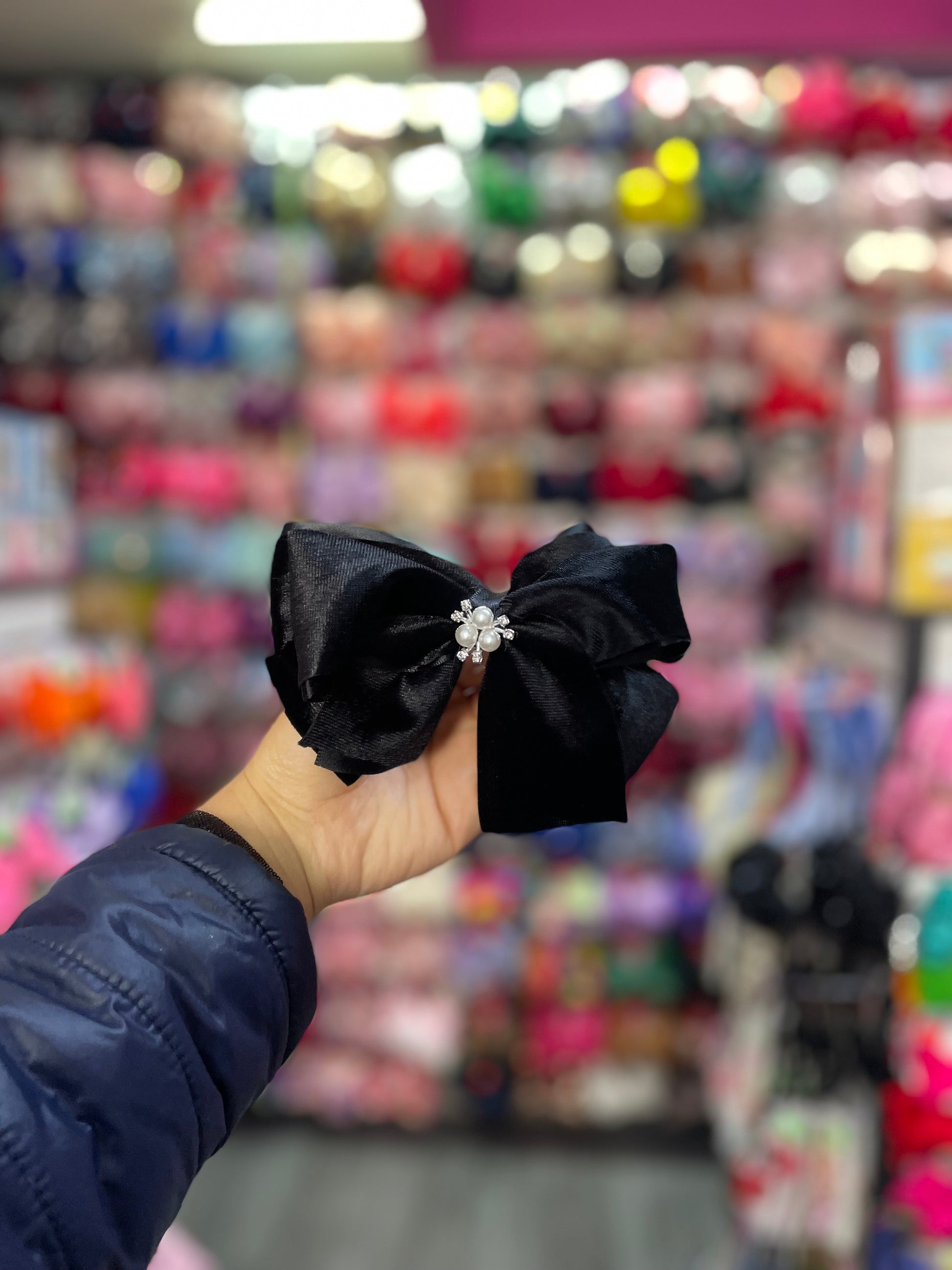 Moño De Terciopelo Con Perlas - Los Moños De Kari