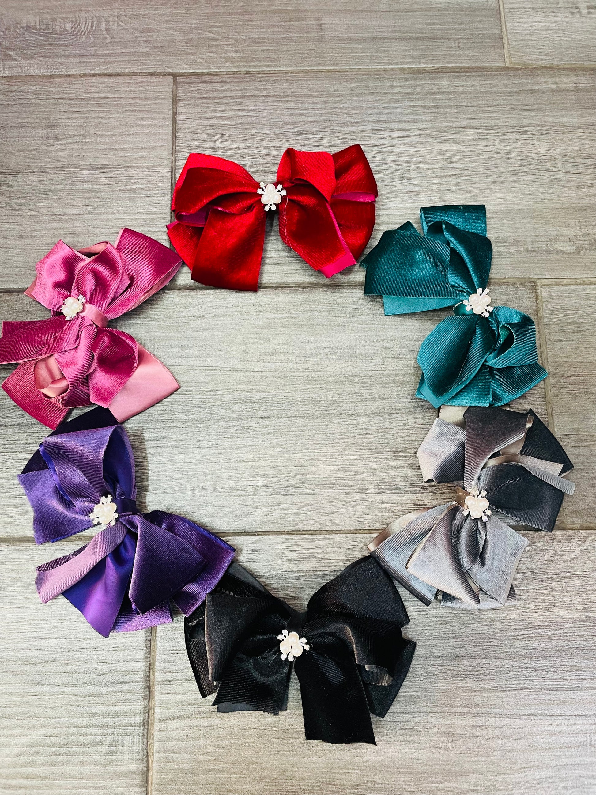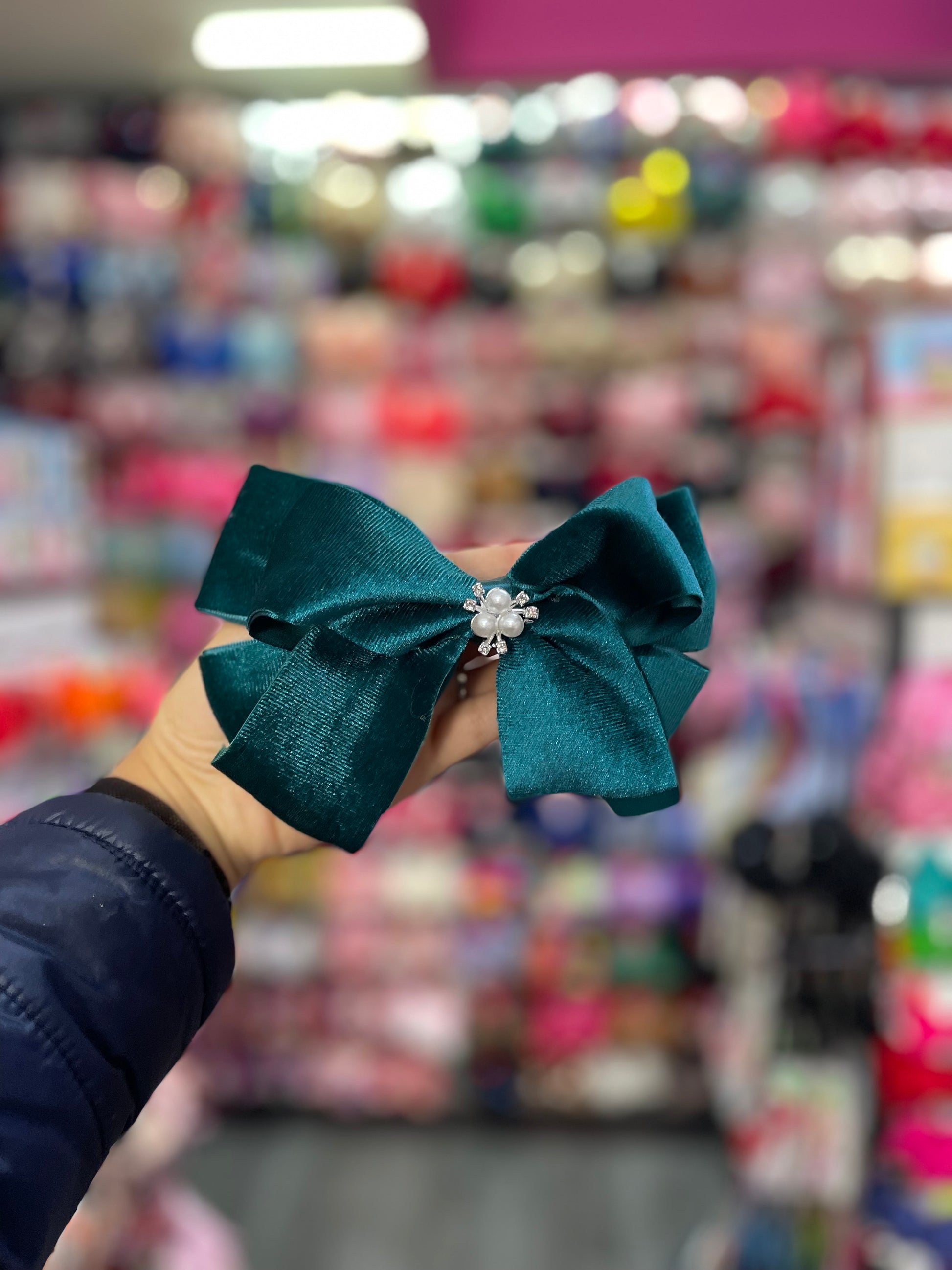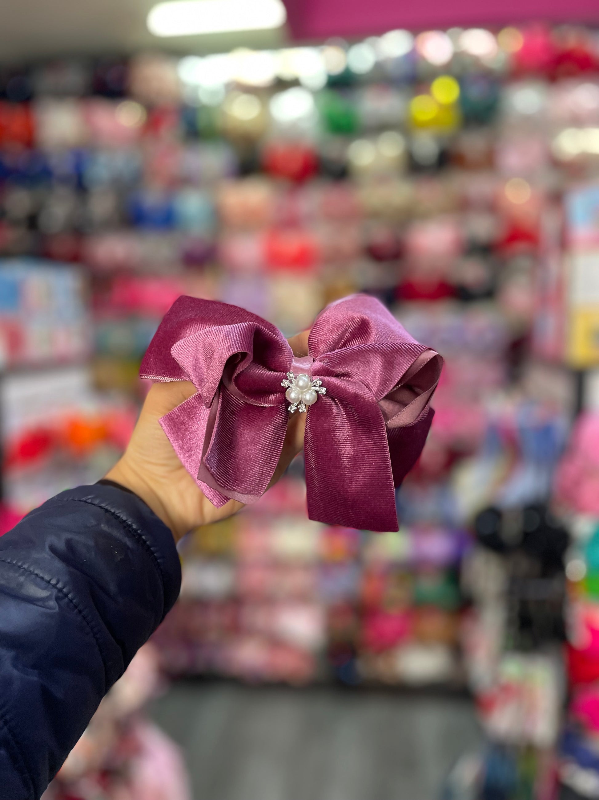 Moño De Terciopelo Con Perlas - Los Moños De Kari