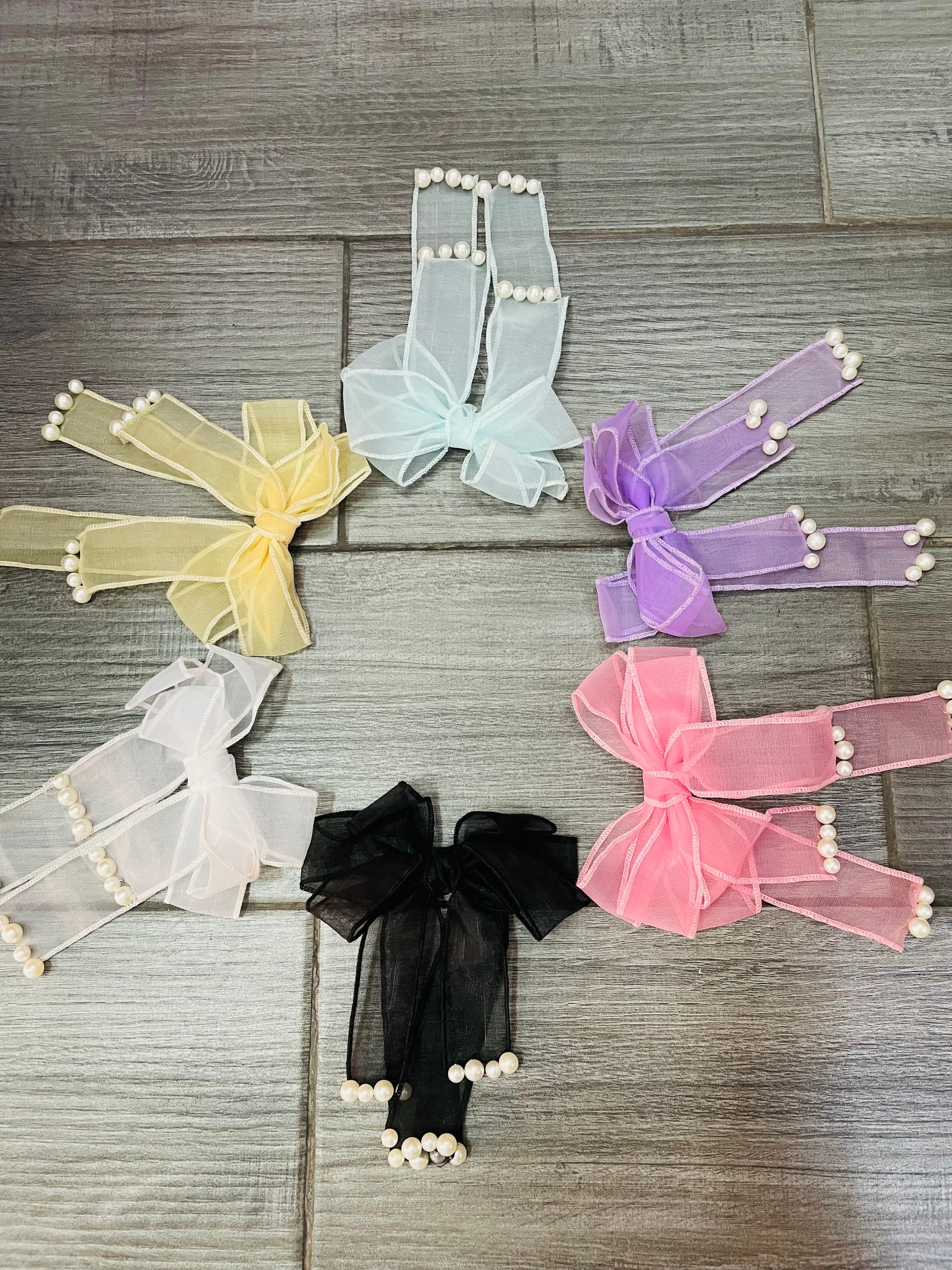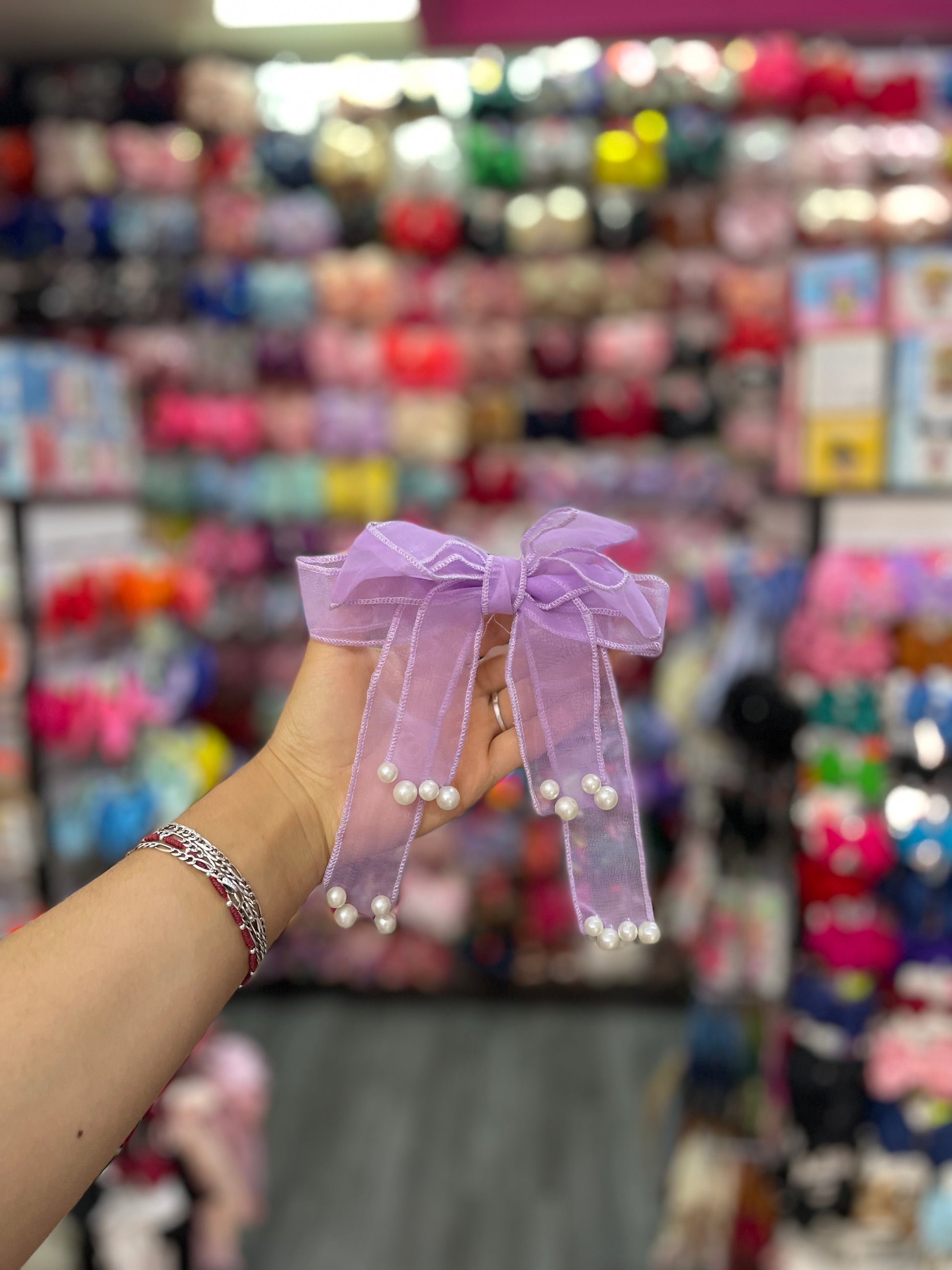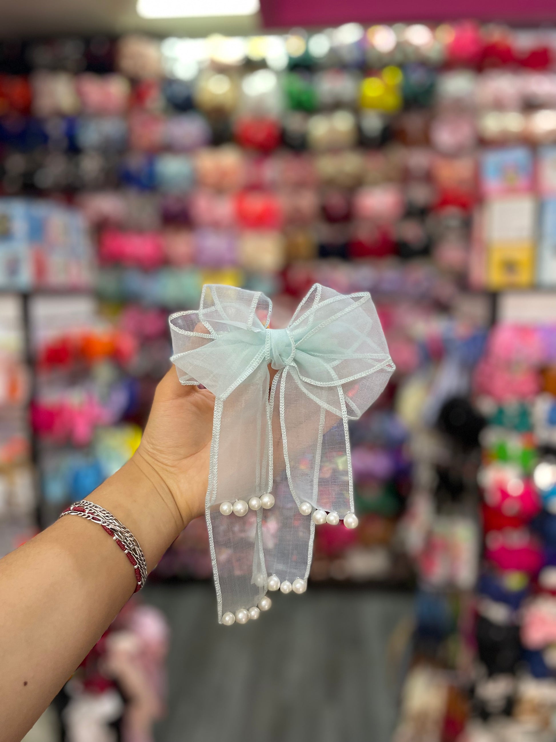 Un moño de tul con perlas en sus lazos es un accesorio delicado y elegante que combina la ligereza del tul con el toque sofisticado de las perlas. El moño está formado por varias capas de tul, creando un efecto suave y aireado que le da volumen sin ser demasiado pesado. Los lazos del moño están decorados con pequeñas perlas distribuidas de manera uniforme, aportando un detalle de lujo y feminidad. Las perlas, que pueden ser de tono blanco, marfil o incluso doradas, añaden un toque de brillo sutil pero elegante al diseño. Este moño es ideal para ocasiones especiales, como bodas, fiestas formales o eventos elegantes, y es perfecto para complementar peinados románticos o de gala.