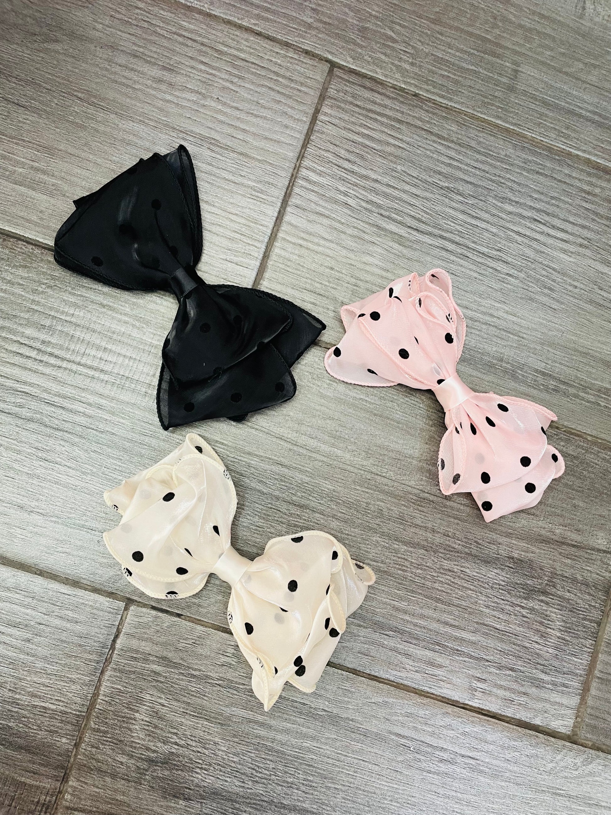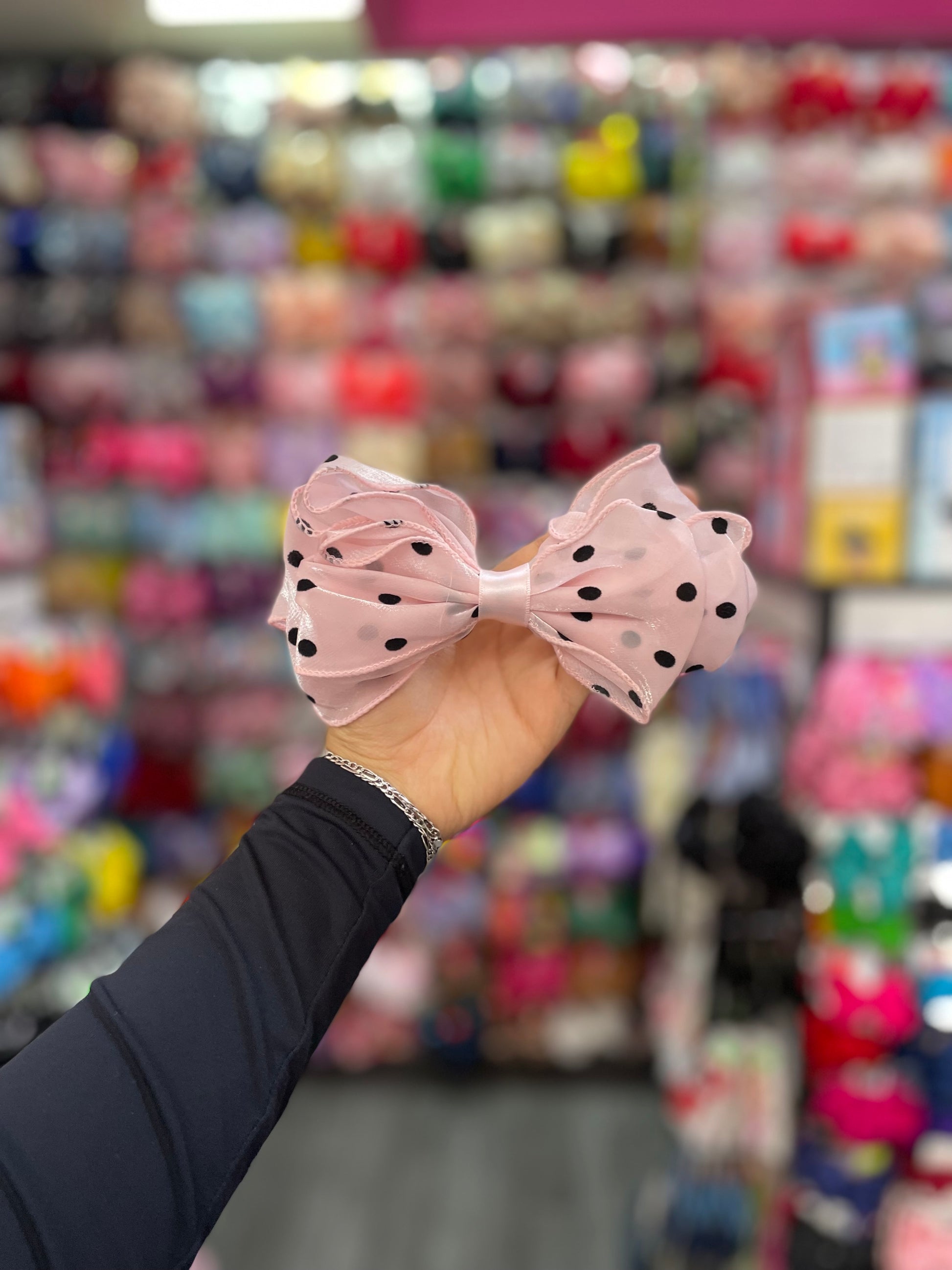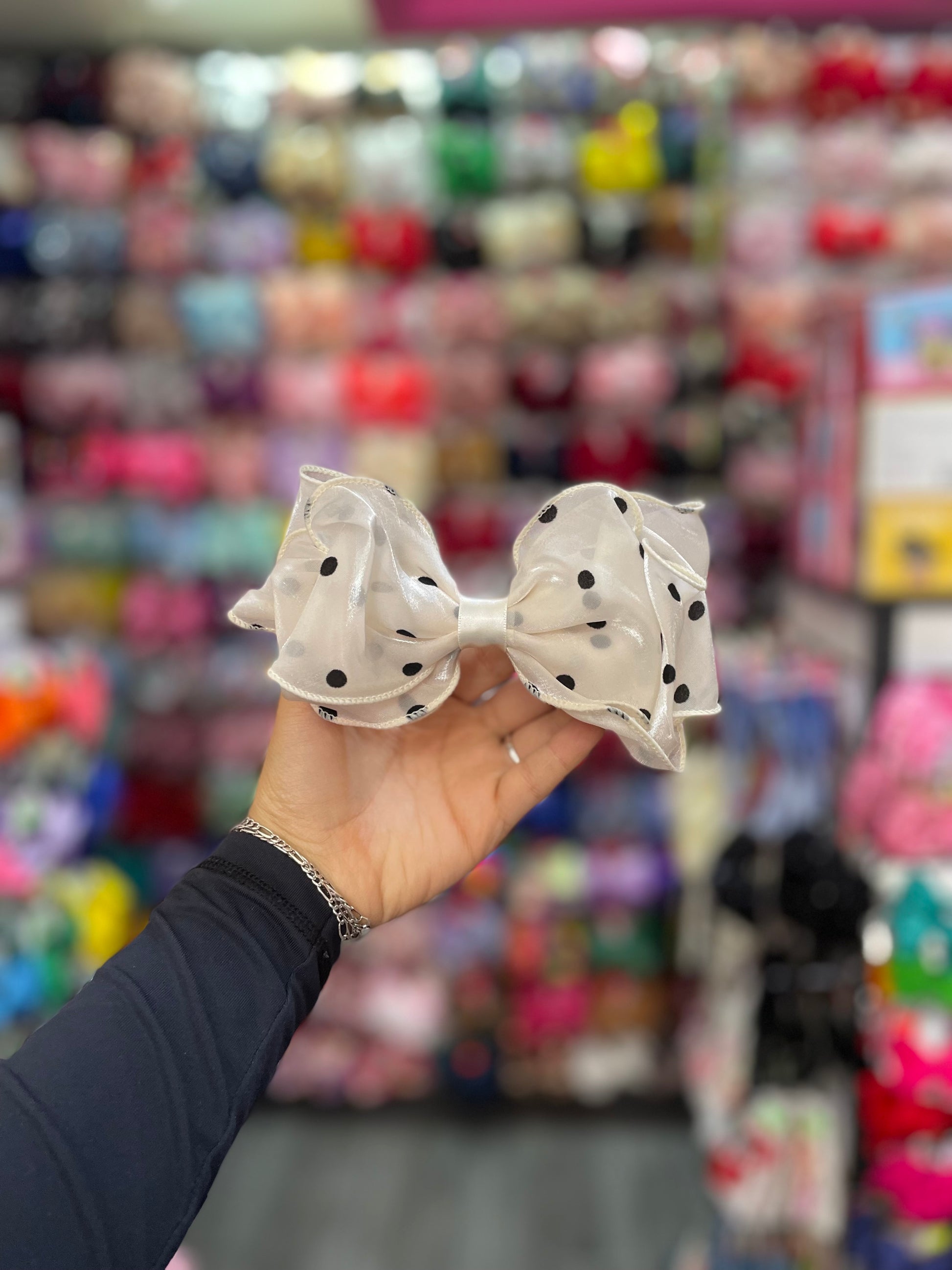 El moño de tul con estampado de puntos es un accesorio delicado y encantador, ideal para añadir un toque de frescura y elegancia a cualquier peinado. Confeccionado en suave tul, una tela ligera y traslúcida, este moño tiene una estructura etérea y aireada que lo hace perfecto para ocasiones informales o semi-formales. El estampado de puntos, que puede variar en tamaño y color, aporta un detalle juguetón y moderno al diseño, creando un contraste sutil pero llamativo. Los lazos del moño son amplios y bien definidos, brindando un volumen elegante y un acabado ordenado. Este moño de tul con puntos es ideal para complementar un look infantil, casual o incluso romántico, añadiendo un toque de dulzura y sofisticación.