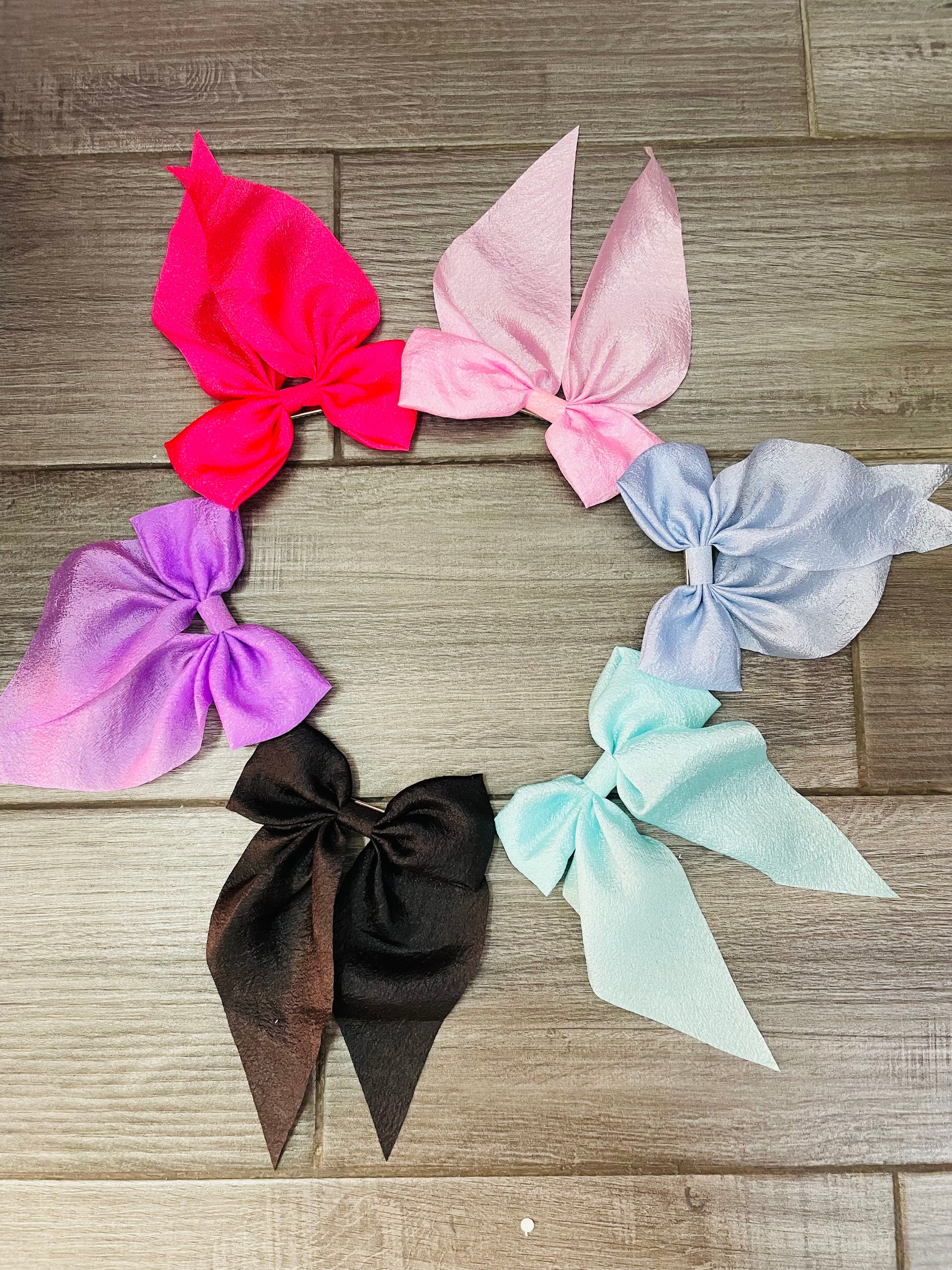 Un moño de tul pequeño es un accesorio delicado y ligero, perfecto para darle un toque de encanto y suavidad a cualquier peinado. Está confeccionado con finas capas de tul, lo que le otorga un aspecto etéreo y voluminoso sin ser demasiado grande. El lazo tiene una forma compacta y elegante, ideal para añadir un detalle sutil pero llamativo. Debido a la naturaleza translúcida del tul, el moño tiene un aire romántico y aireado, y generalmente se utiliza en colores suaves o pastel, aunque también puede encontrarse en tonos más vibrantes. Este tipo de moño es ideal para ocasiones especiales, como cumpleaños, celebraciones o incluso para el uso diario en un peinado más formal o coqueto.