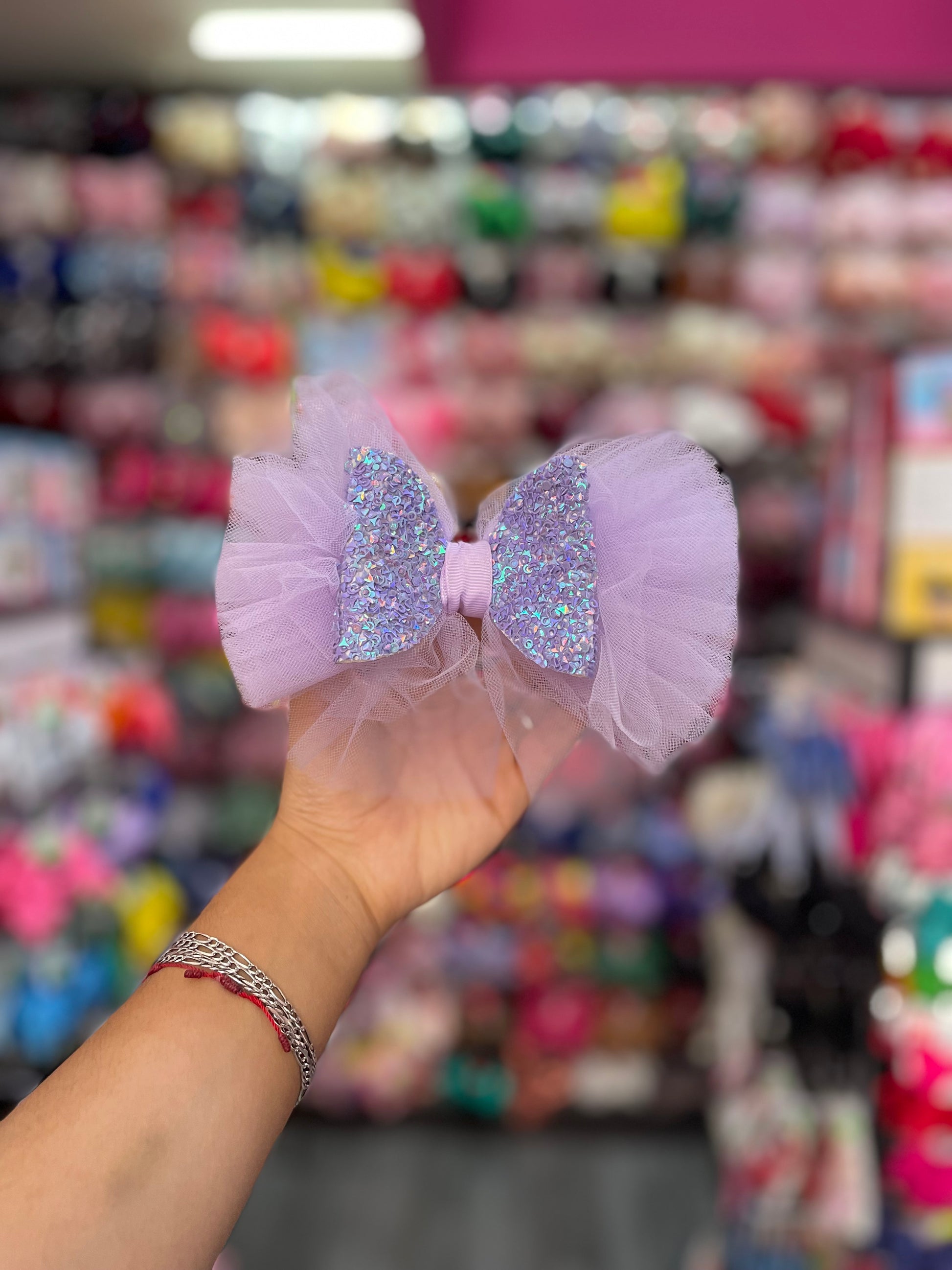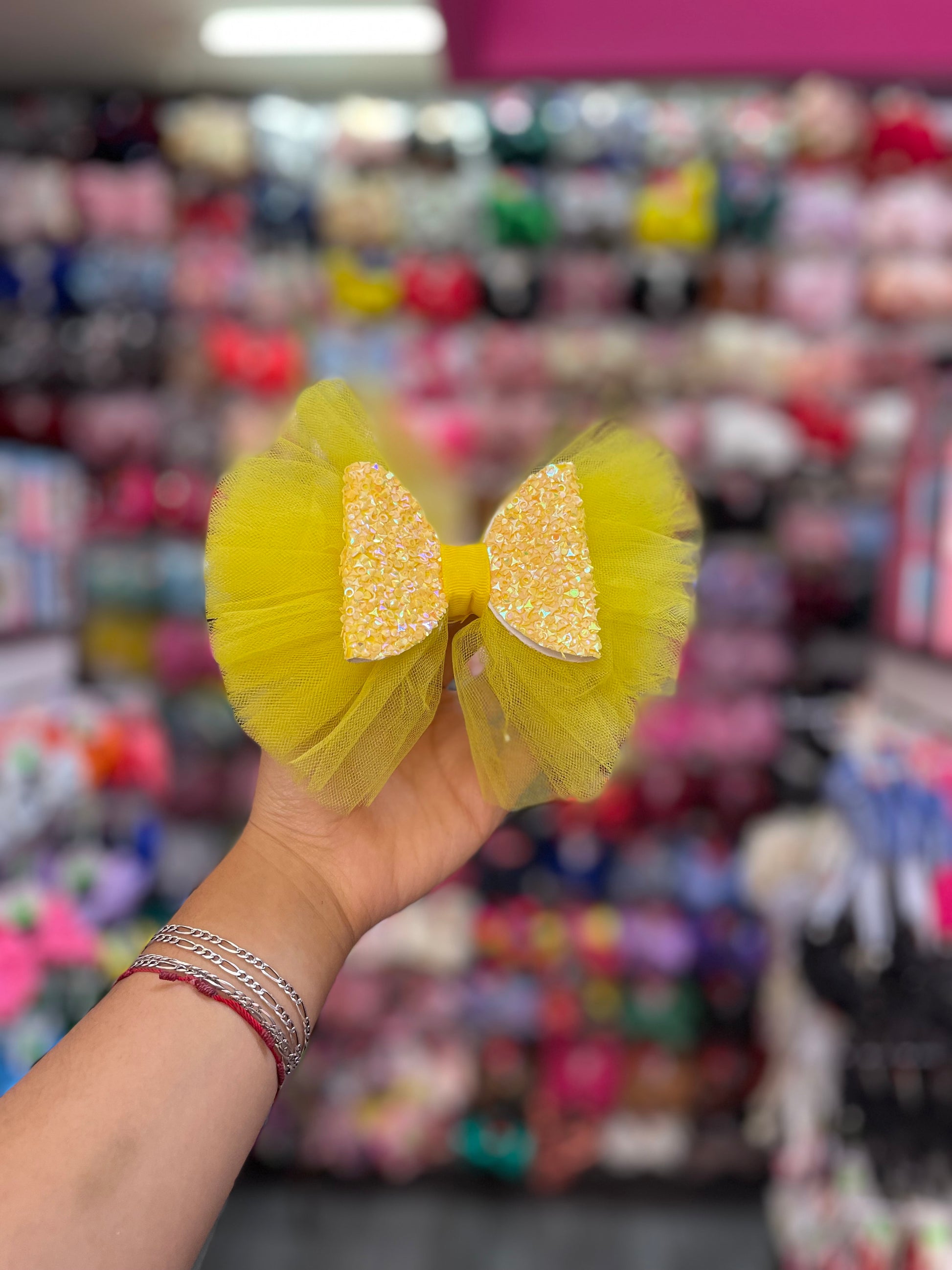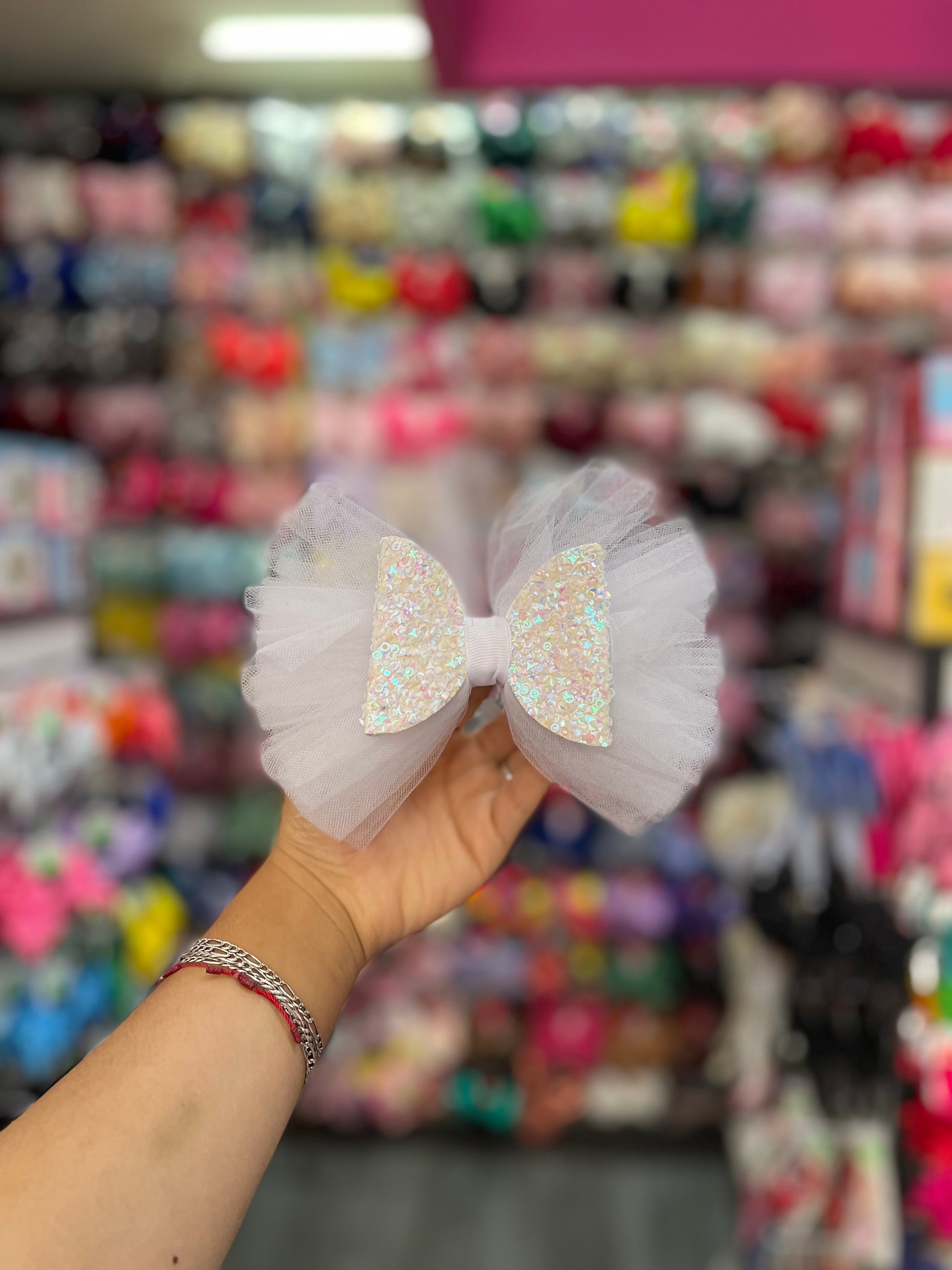 Moño Doble Con Glitter Y Tul - Los Moños De Kari