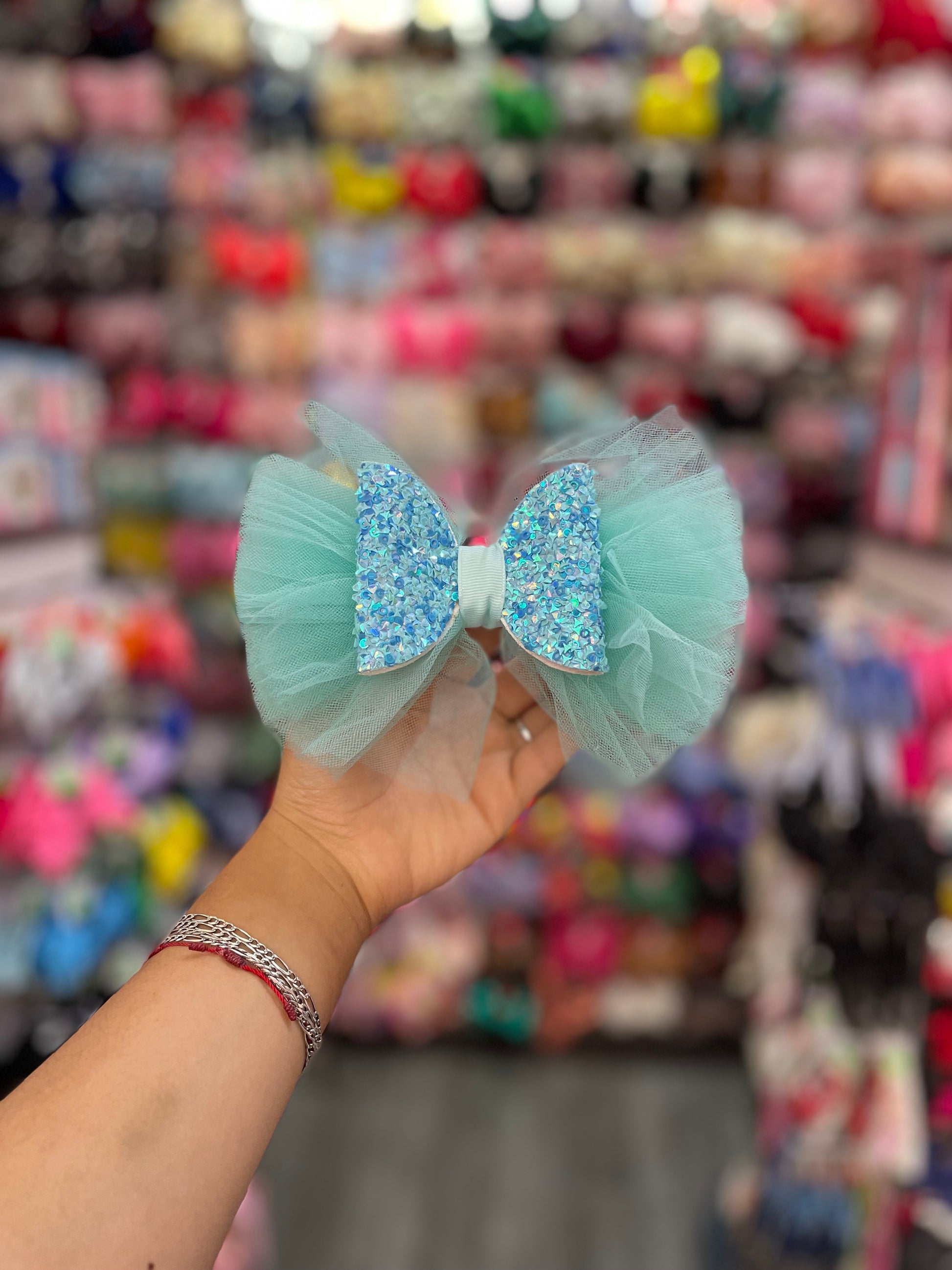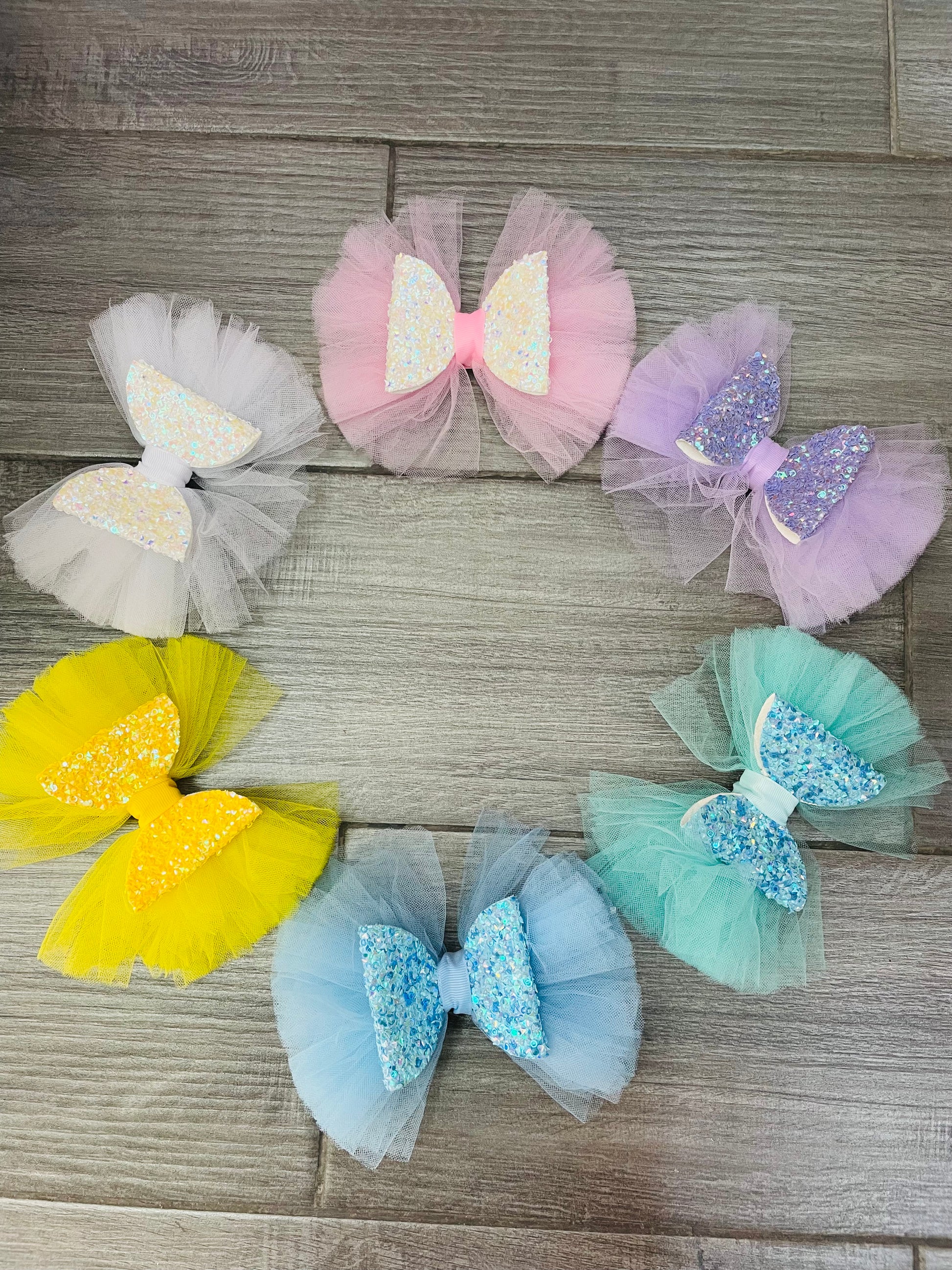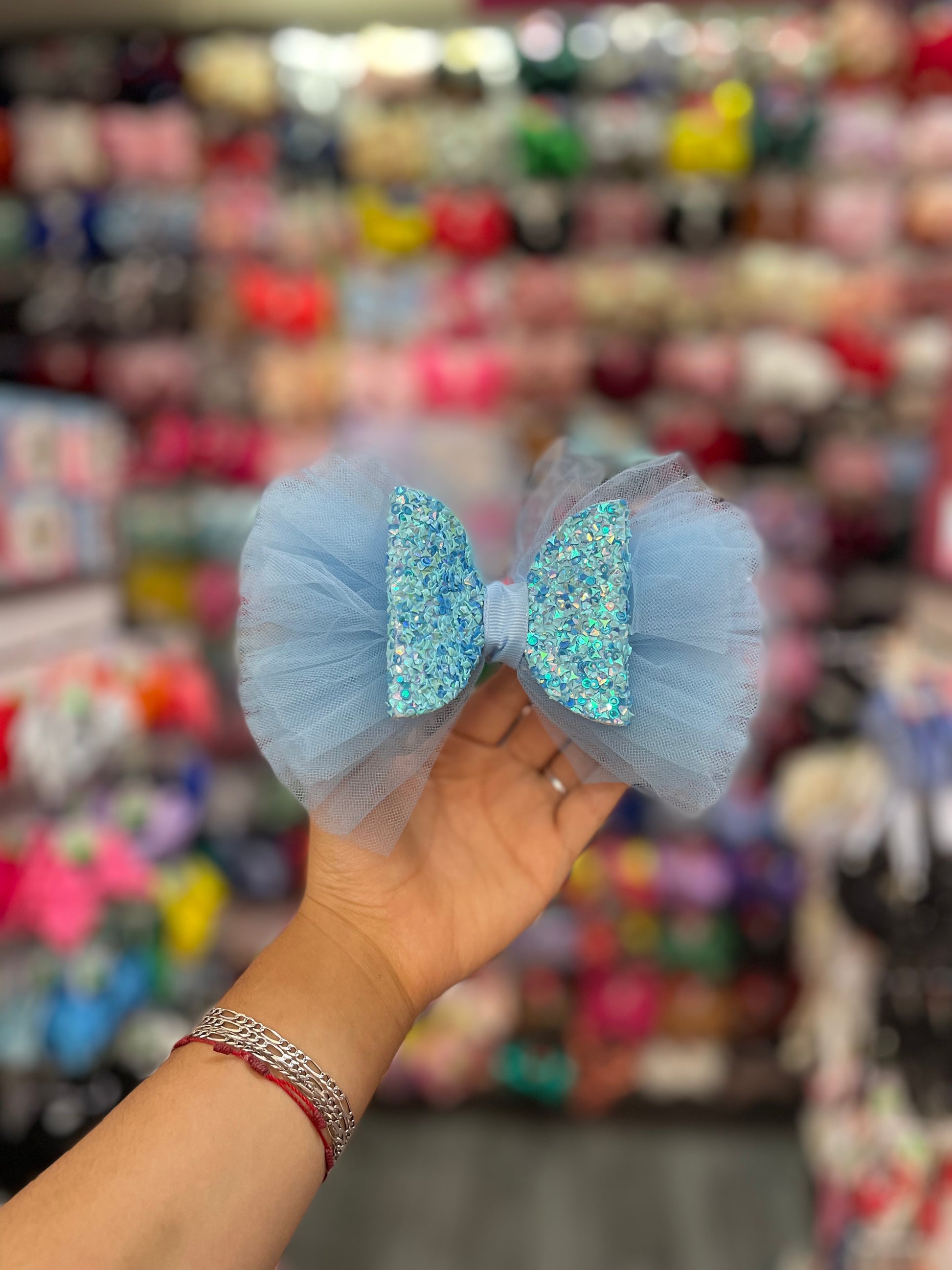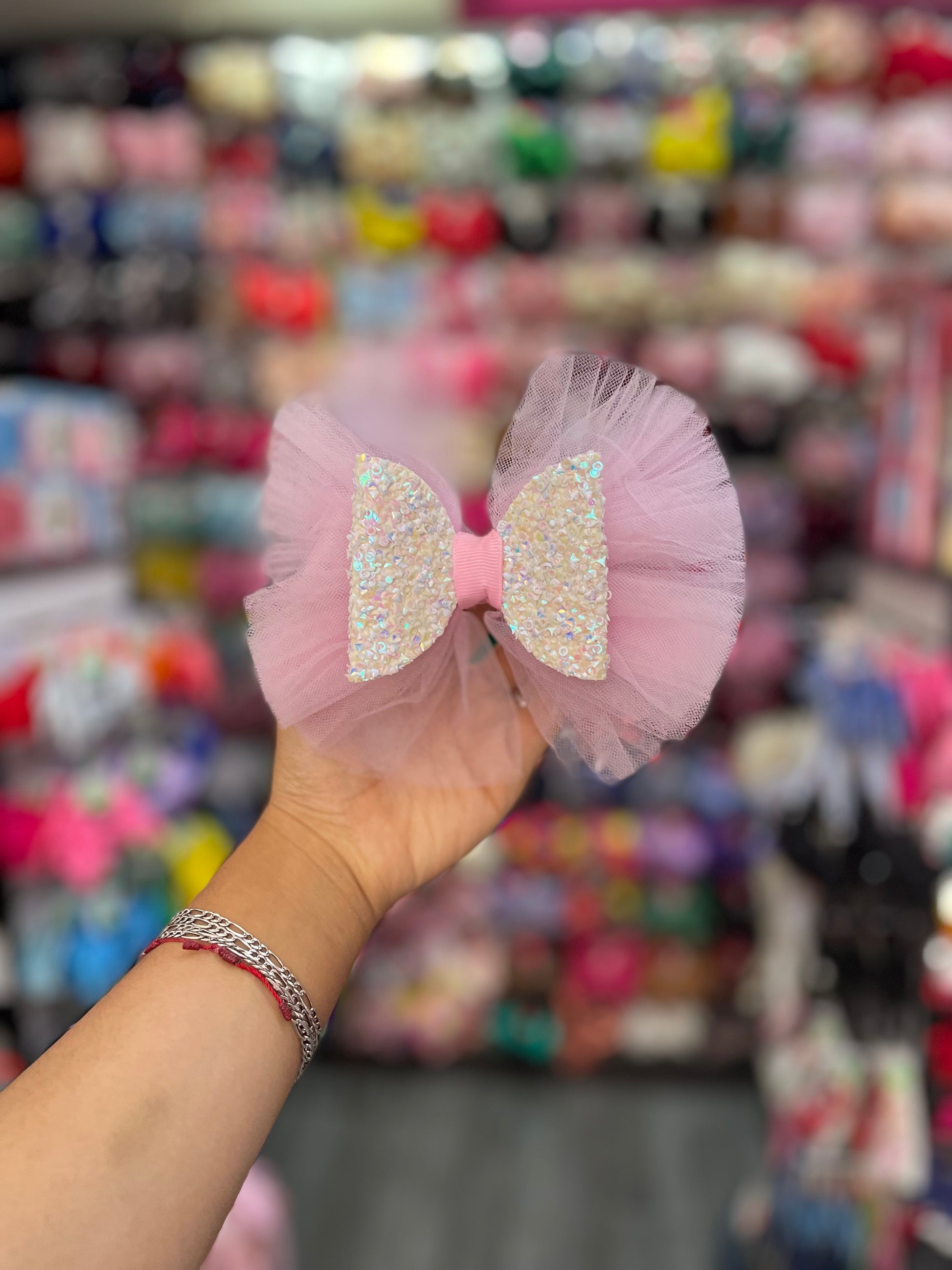 Moño Doble Con Glitter Y Tul - Los Moños De Kari