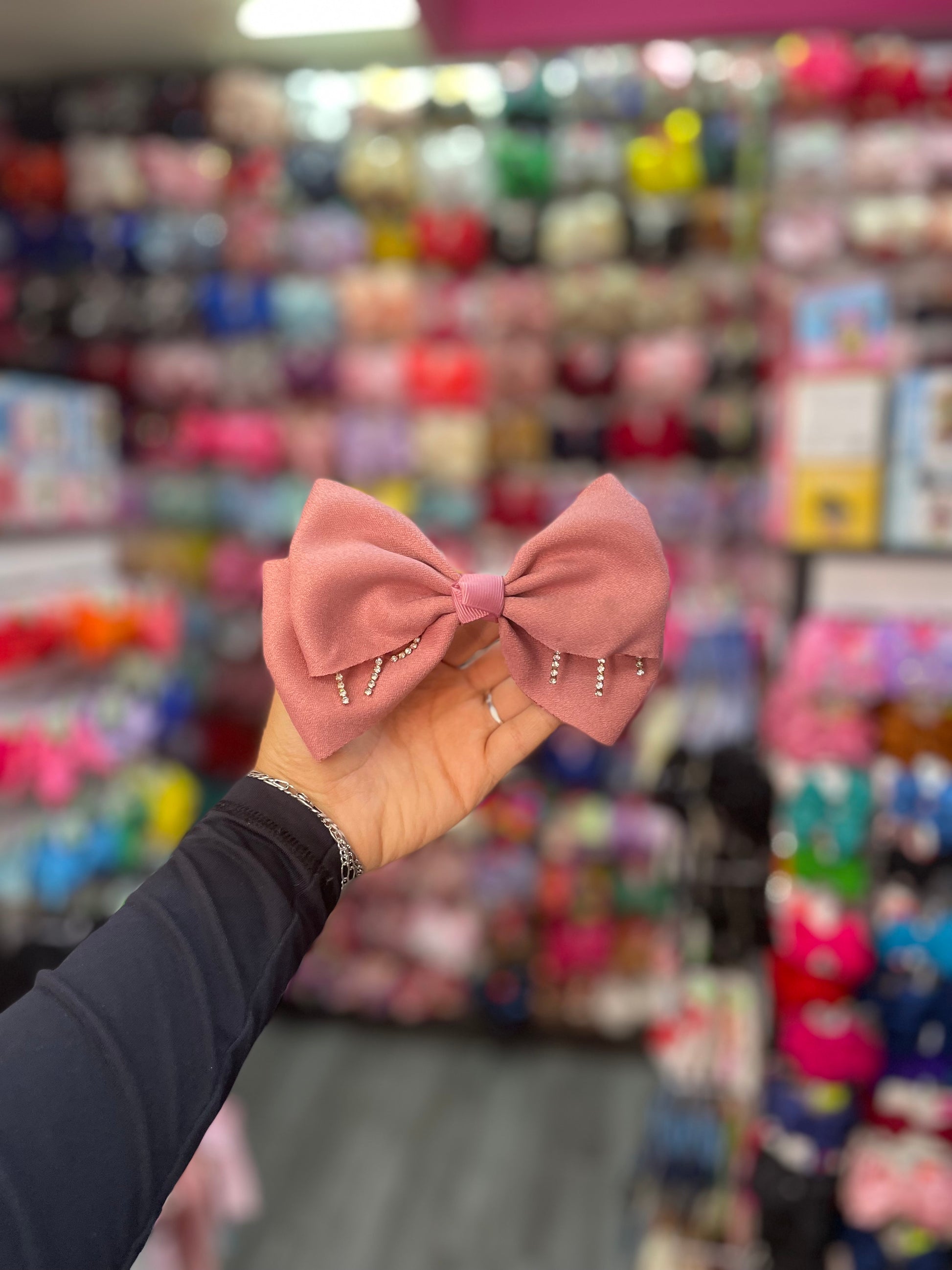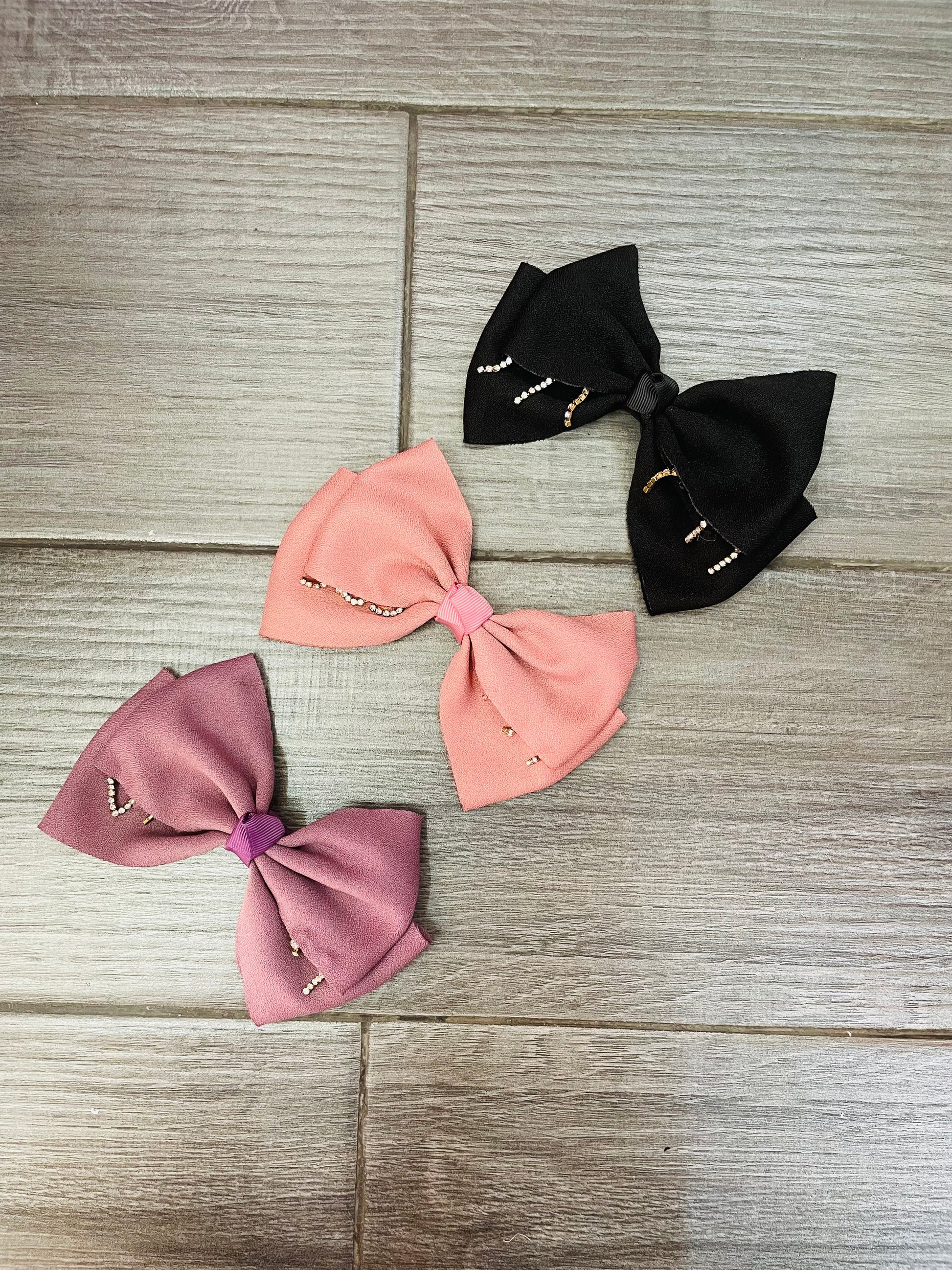 El moño doble con colgante de pedrería es un accesorio de gran elegancia y sofisticación, perfecto para darle un toque de lujo a cualquier peinado. Confeccionado en una tela suave y resistente, como satén o terciopelo, el moño tiene un diseño de dos lazos superpuestos que crean un volumen equilibrado y una estructura pulida. En el centro, destaca un hermoso colgante de pedrería, que puede incluir cristales, diamantes de imitación o piedras brillantes, añadiendo un toque de glamour y distinción. Este moño es ideal para ocasiones especiales, como bodas, fiestas o eventos formales, donde se busca un detalle refinado y llamativo. Su combinación de lazos elegantes y pedrería brillante lo convierte en un accesorio único que aporta sofisticación y estilo.