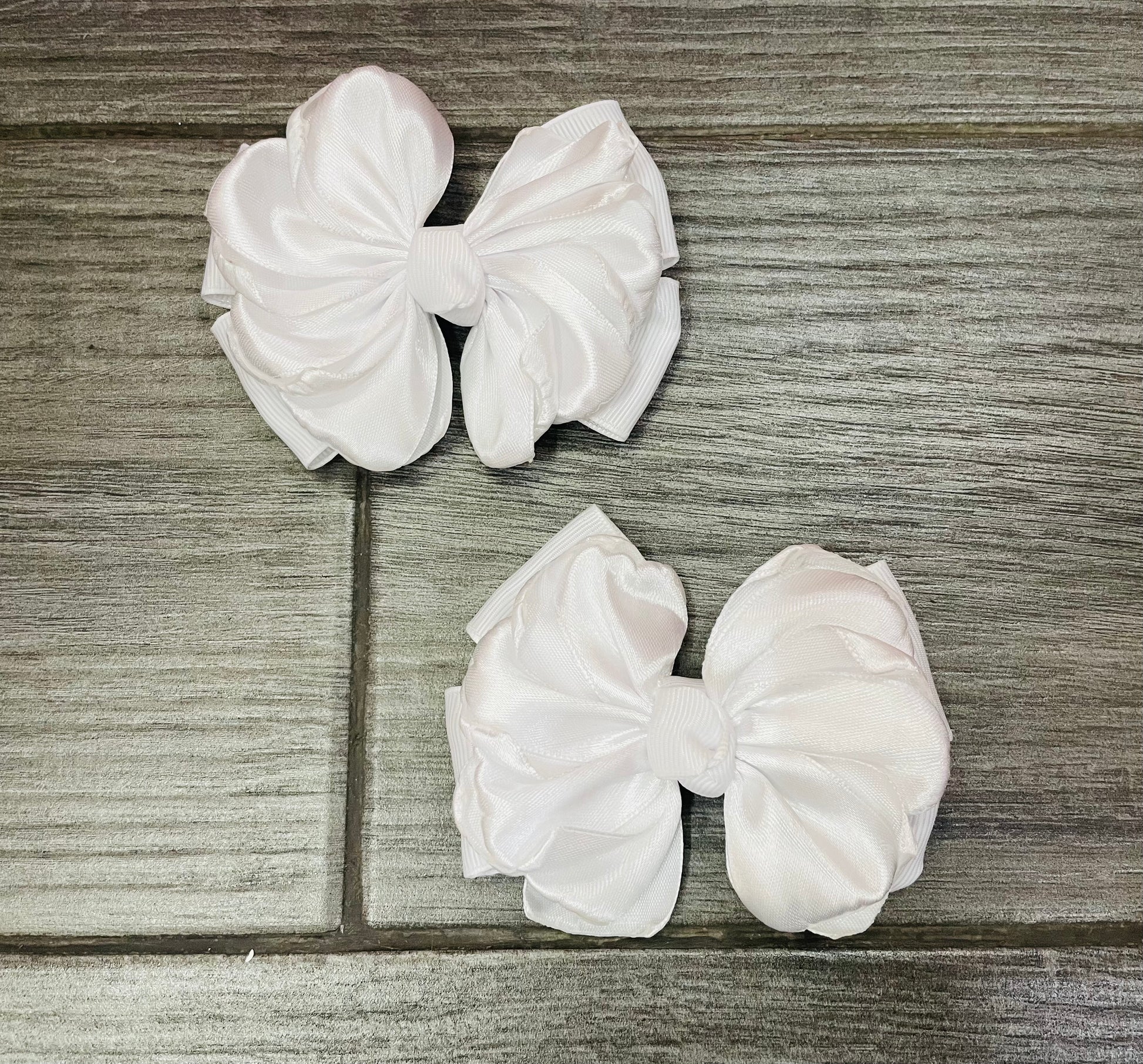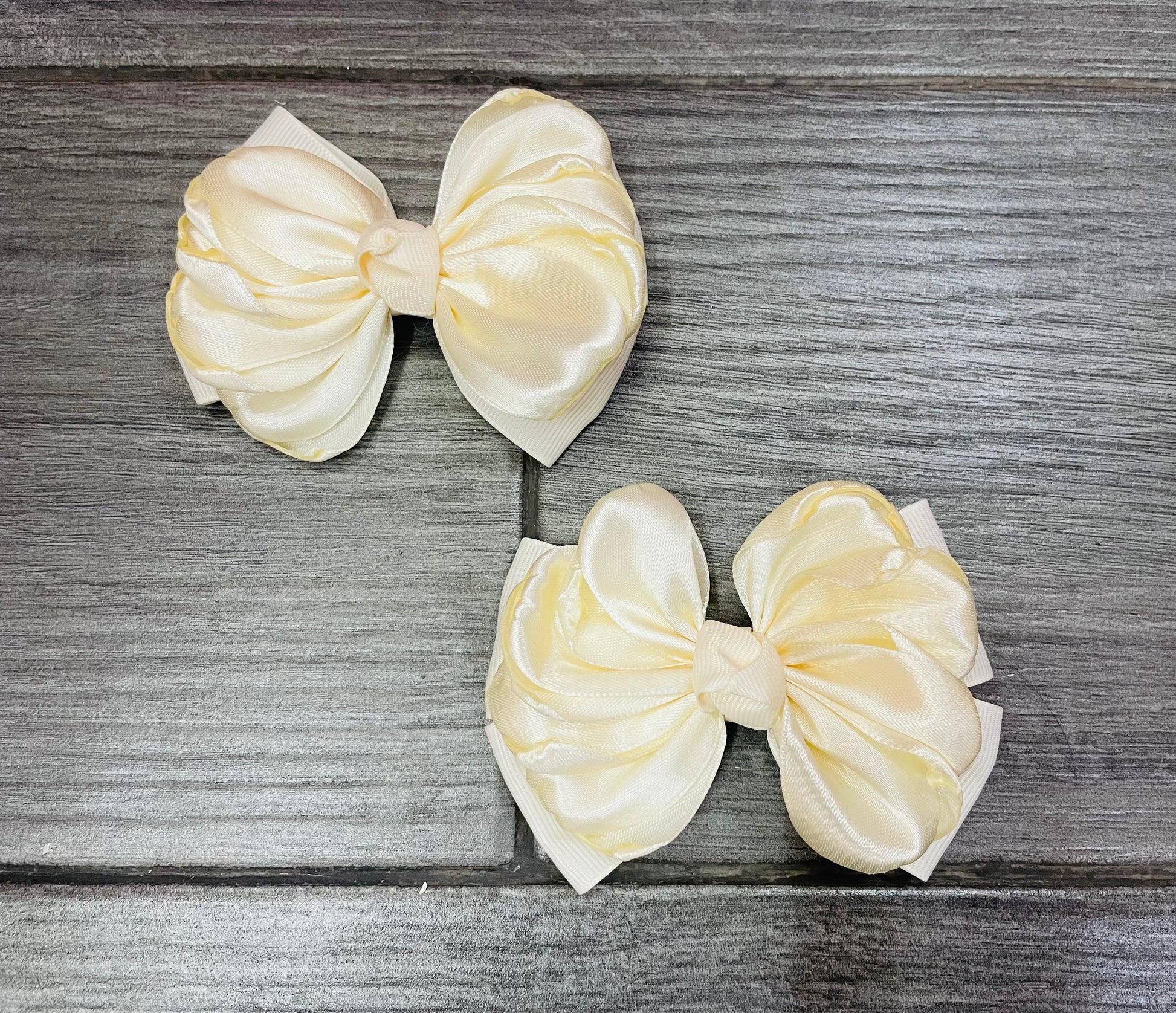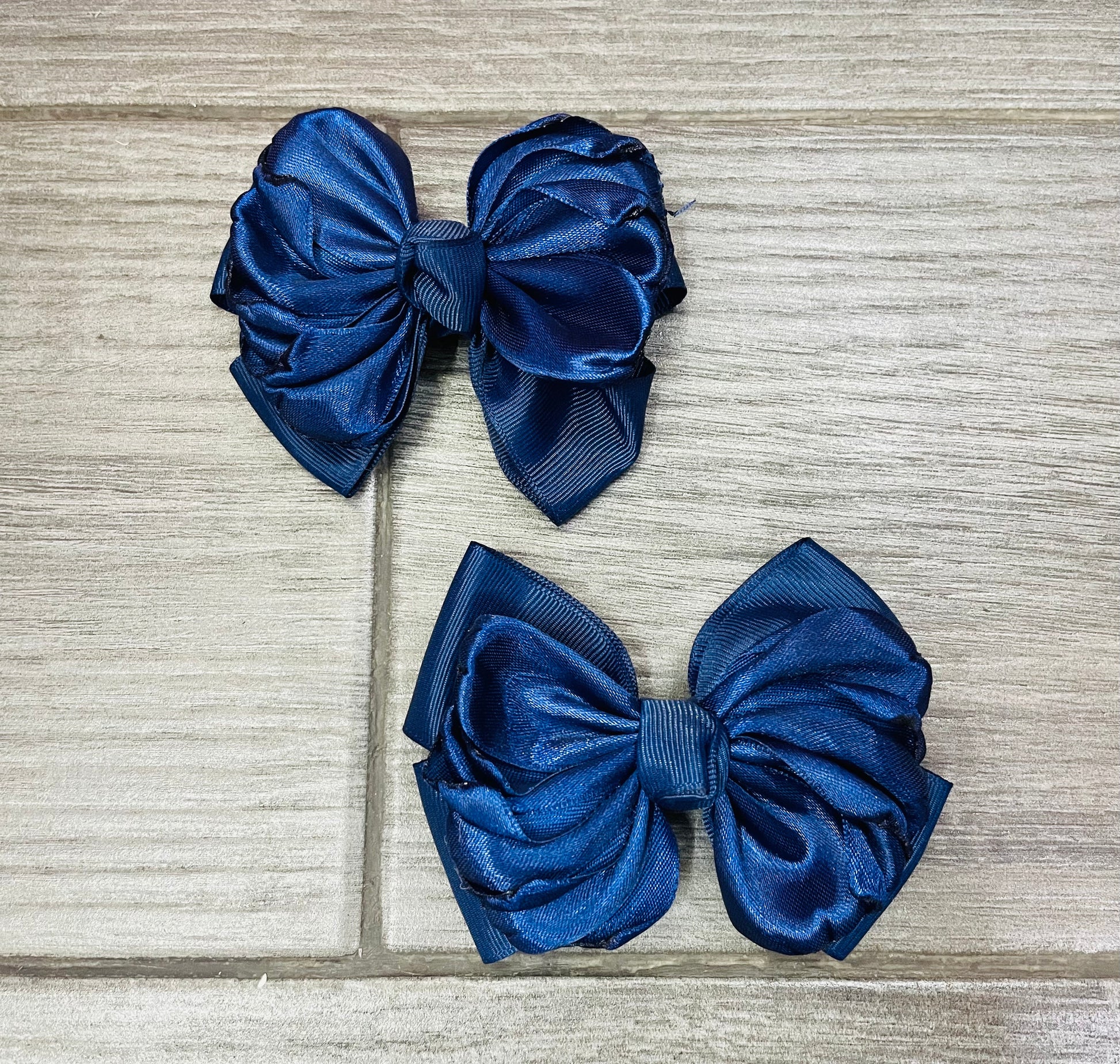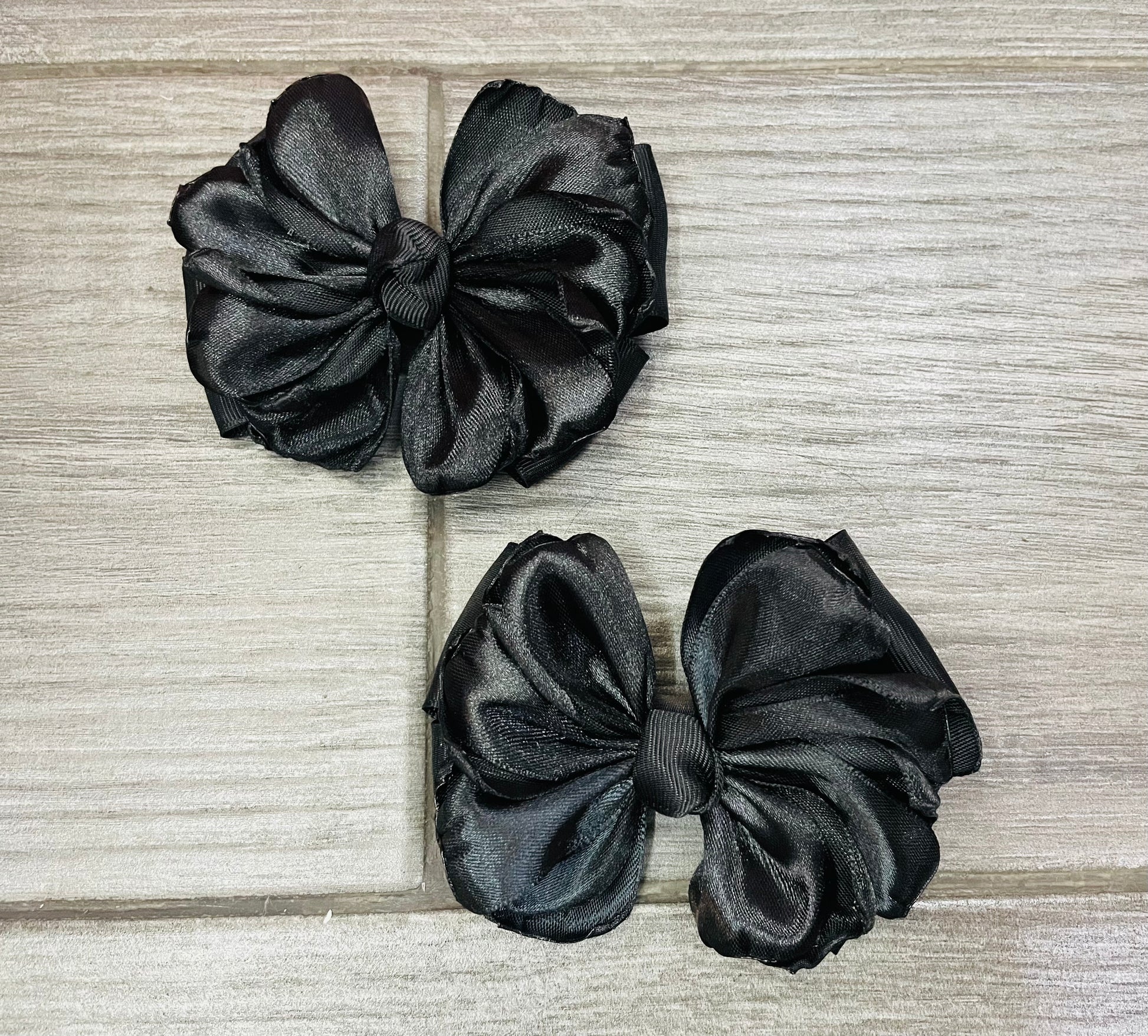 Este par de moños dobles en satén es el epítome de la elegancia y el glamour. Cada moño está compuesto por dos lazos delicadamente superpuestos, creando un efecto voluminoso y sofisticado. Hechos de satén de alta calidad, los moños tienen un acabado suave y brillante que refleja la luz, añadiendo un toque de lujo a cualquier conjunto. Su diseño doble aporta un aire de opulencia y distinción, perfecto para ocasiones especiales o para darle un toque único a un look más casual. Disponibles en varios colores, estos moños son un accesorio versátil que combina con todo, ofreciendo un equilibrio perfecto entre sencillez y sofisticación.