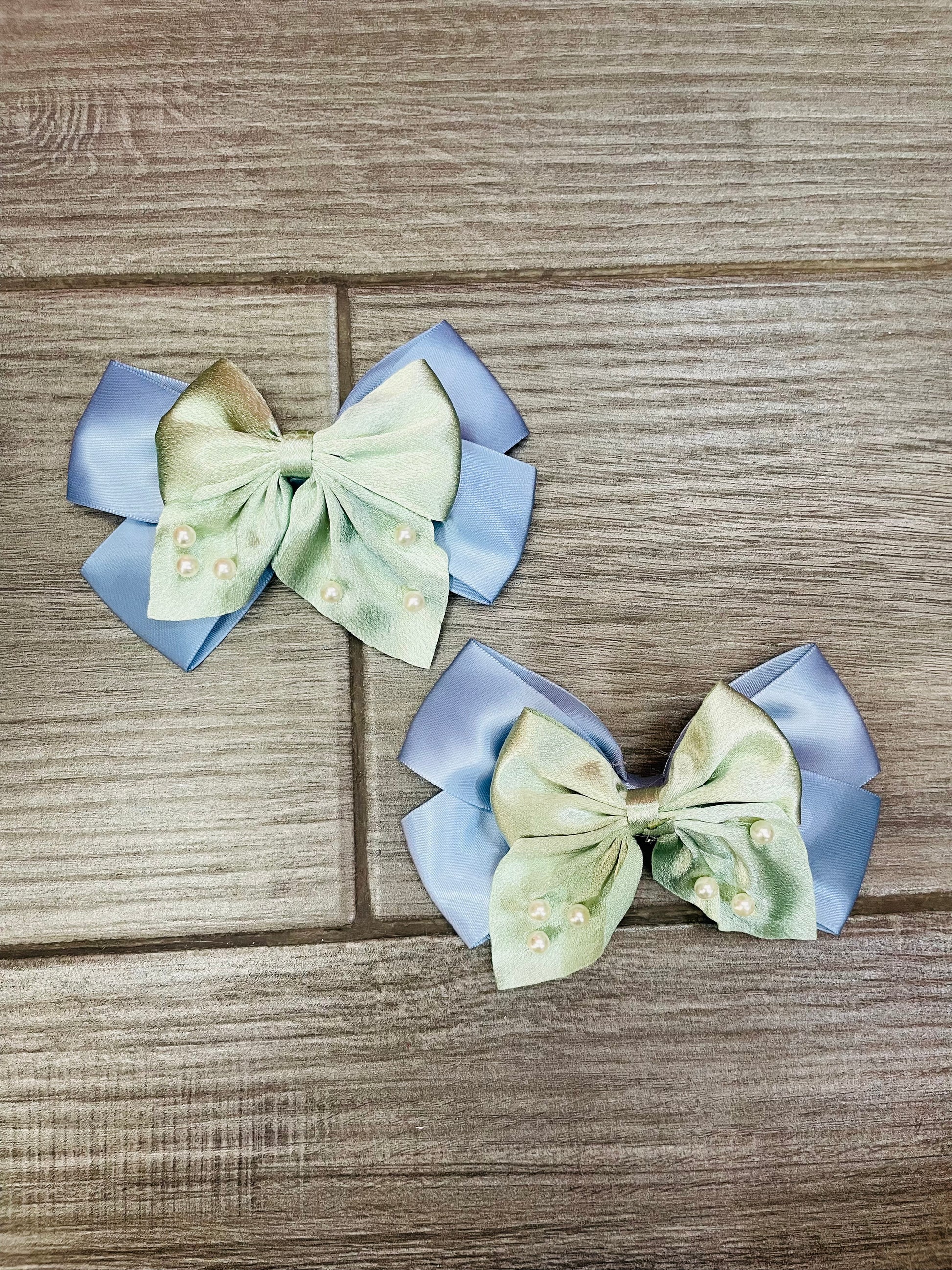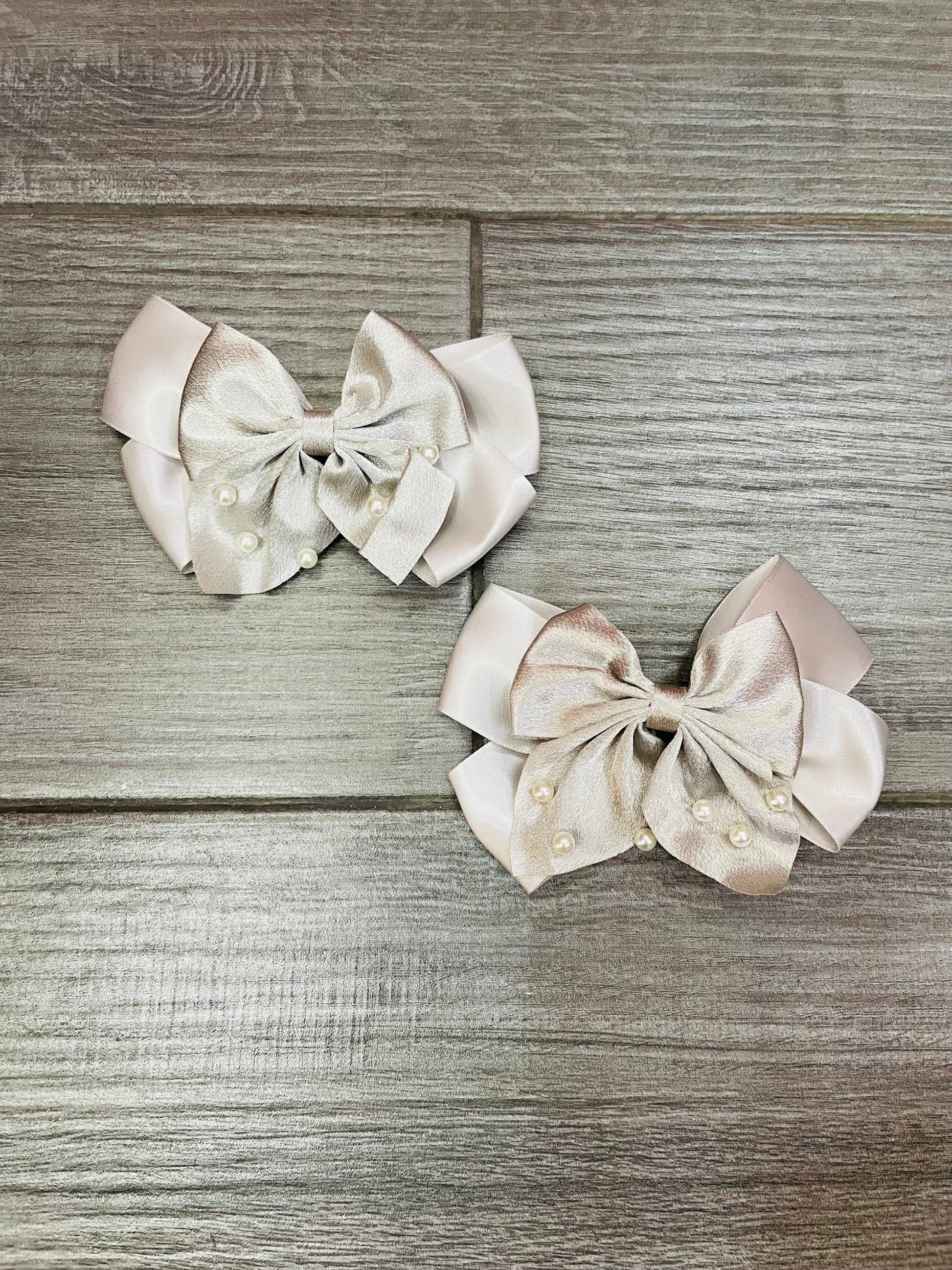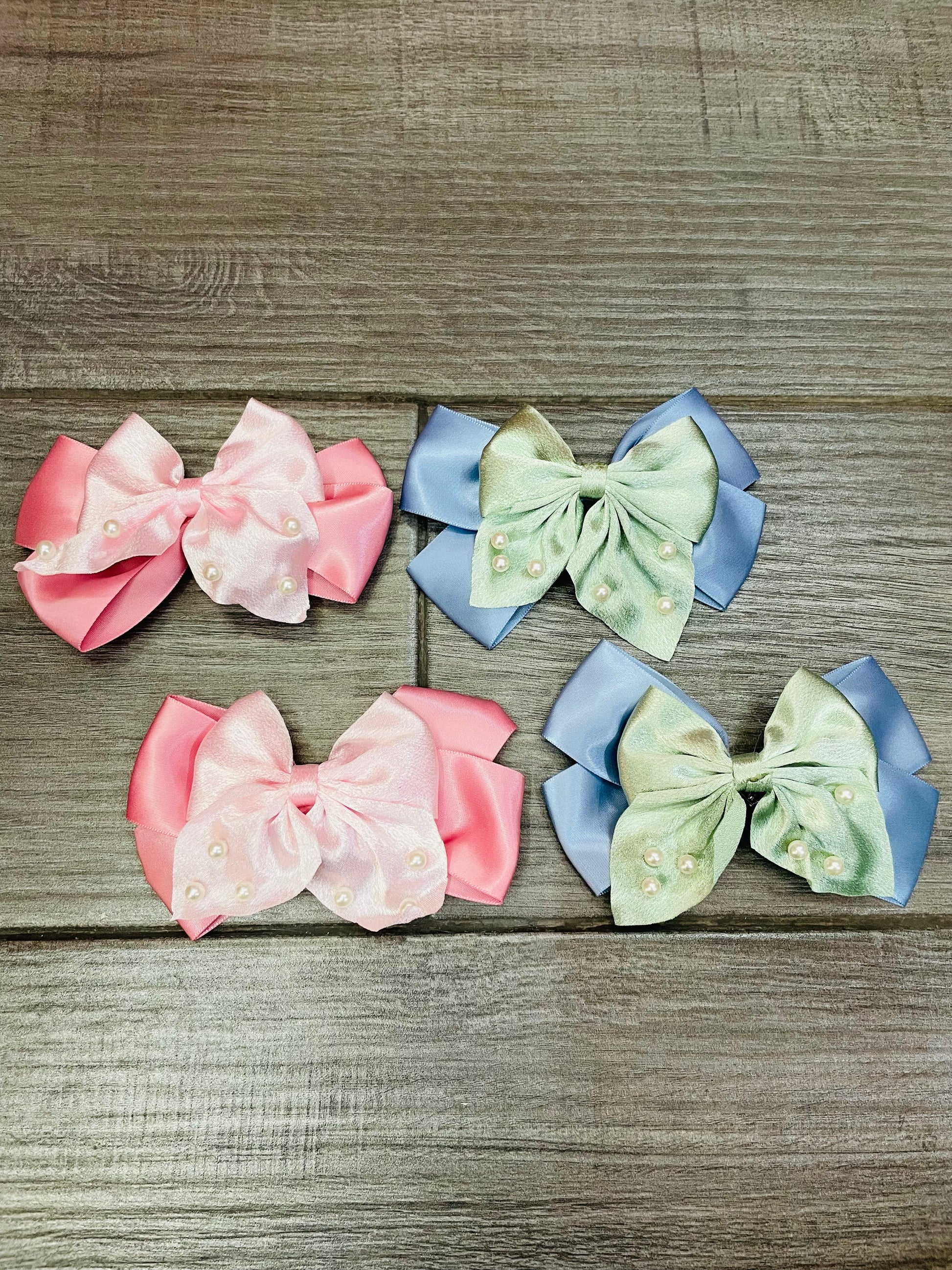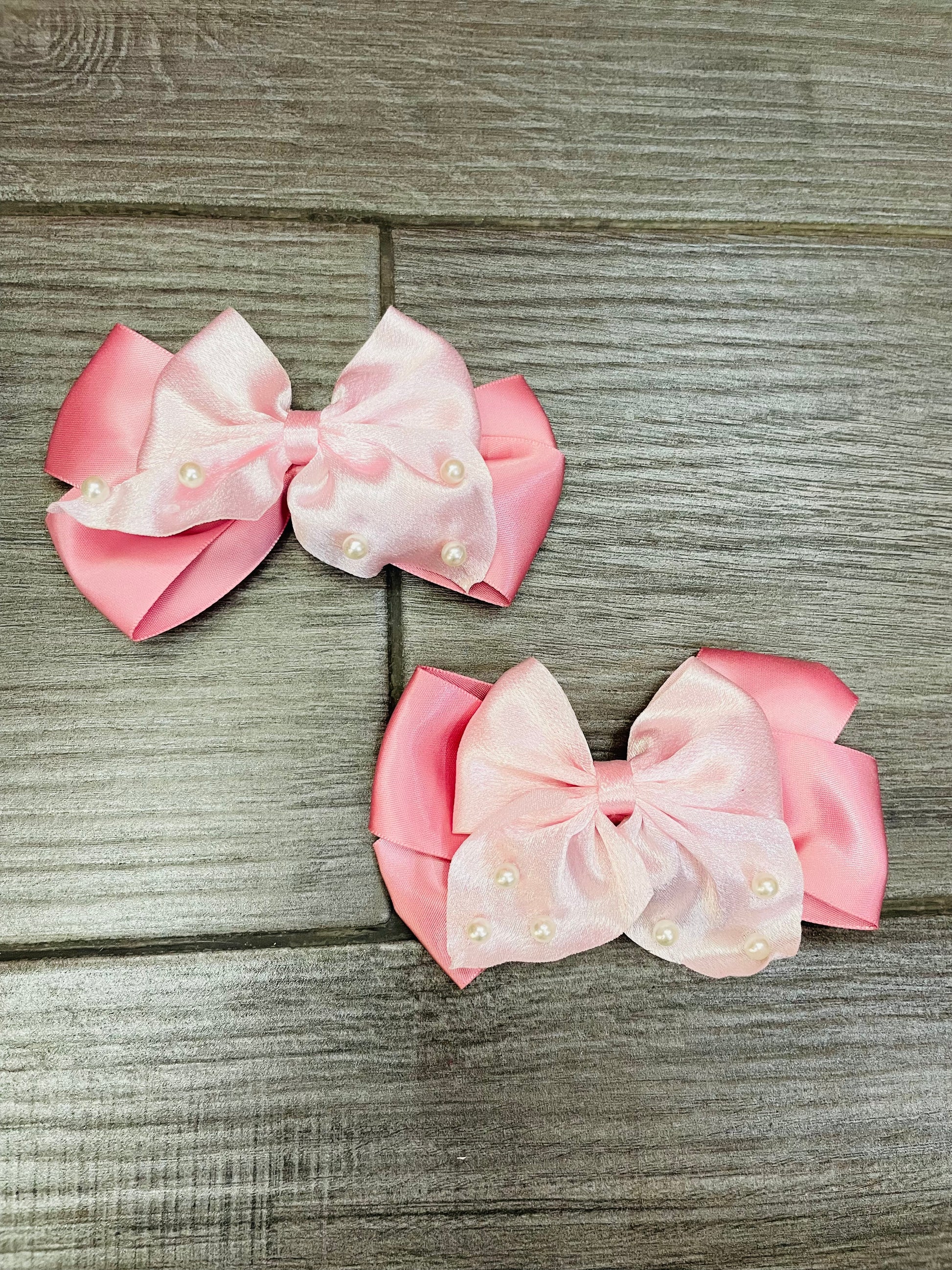 Moño Doble Satinado Con Perla(Par) - Los Moños De Kari