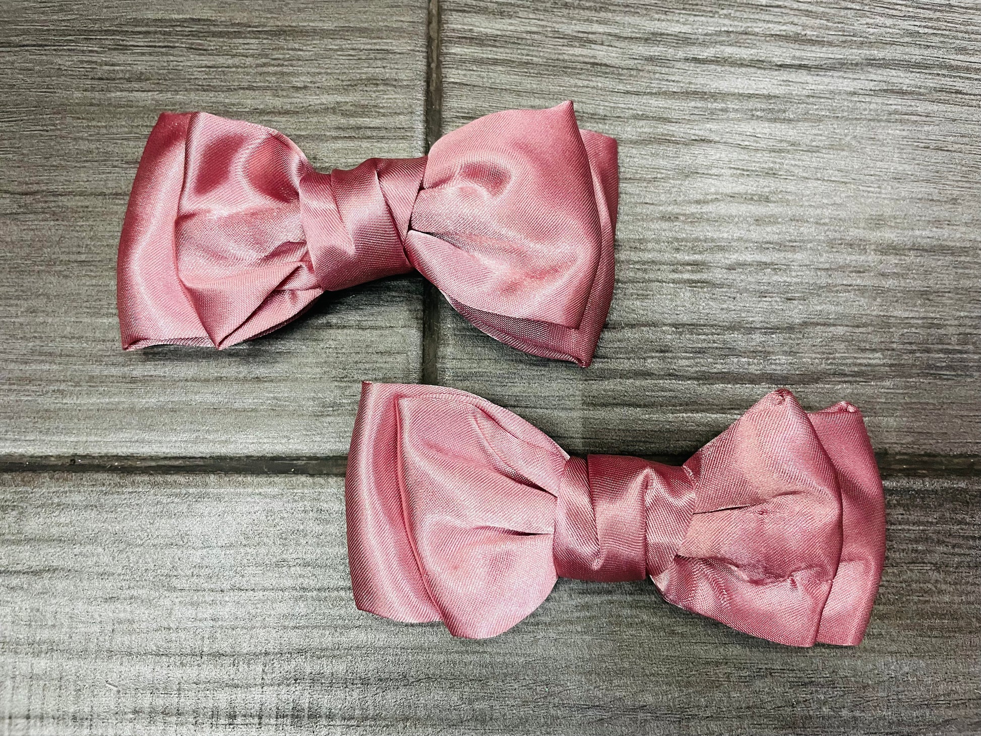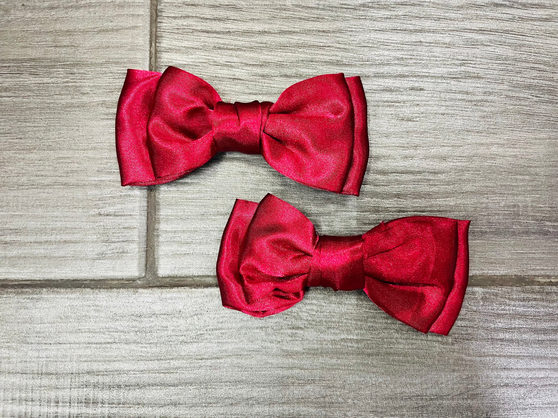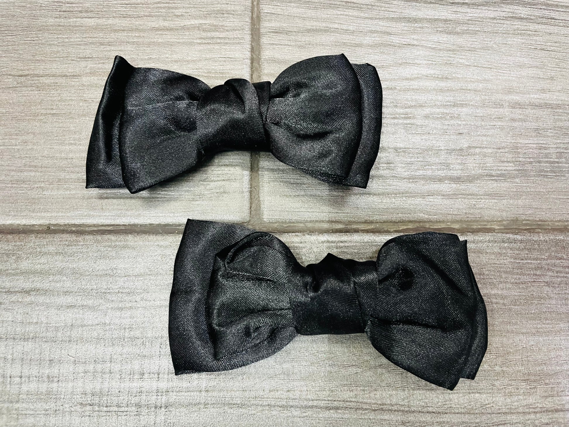 Un par de moños dobles satinados, elaborados con un elegante tejido satinado que ofrece un brillo suave y refinado. Cada moño consta de dos capas de tela perfectamente dispuestas, creando un efecto voluminoso y estructurado que añade dimensión y sofisticación al peinado. El acabado satinado refleja la luz, brindando un toque de lujo y distinción, ideal para ocasiones especiales o para realzar un look diario con un toque de glamour. Disponibles en una amplia gama de colores, estos moños dobles satinados combinan la belleza del diseño clásico con la suavidad del satén, aportando un estilo único y versátil.