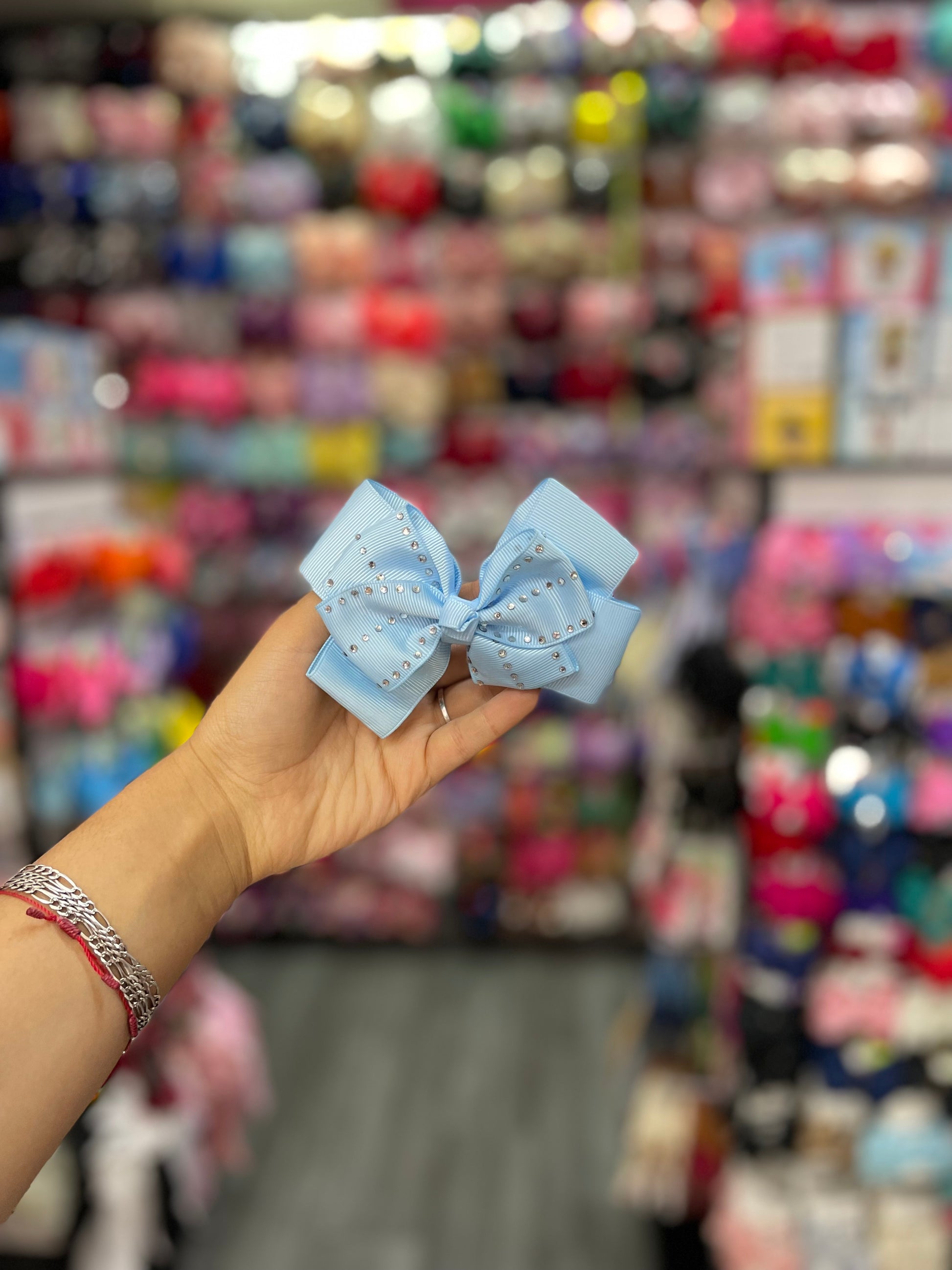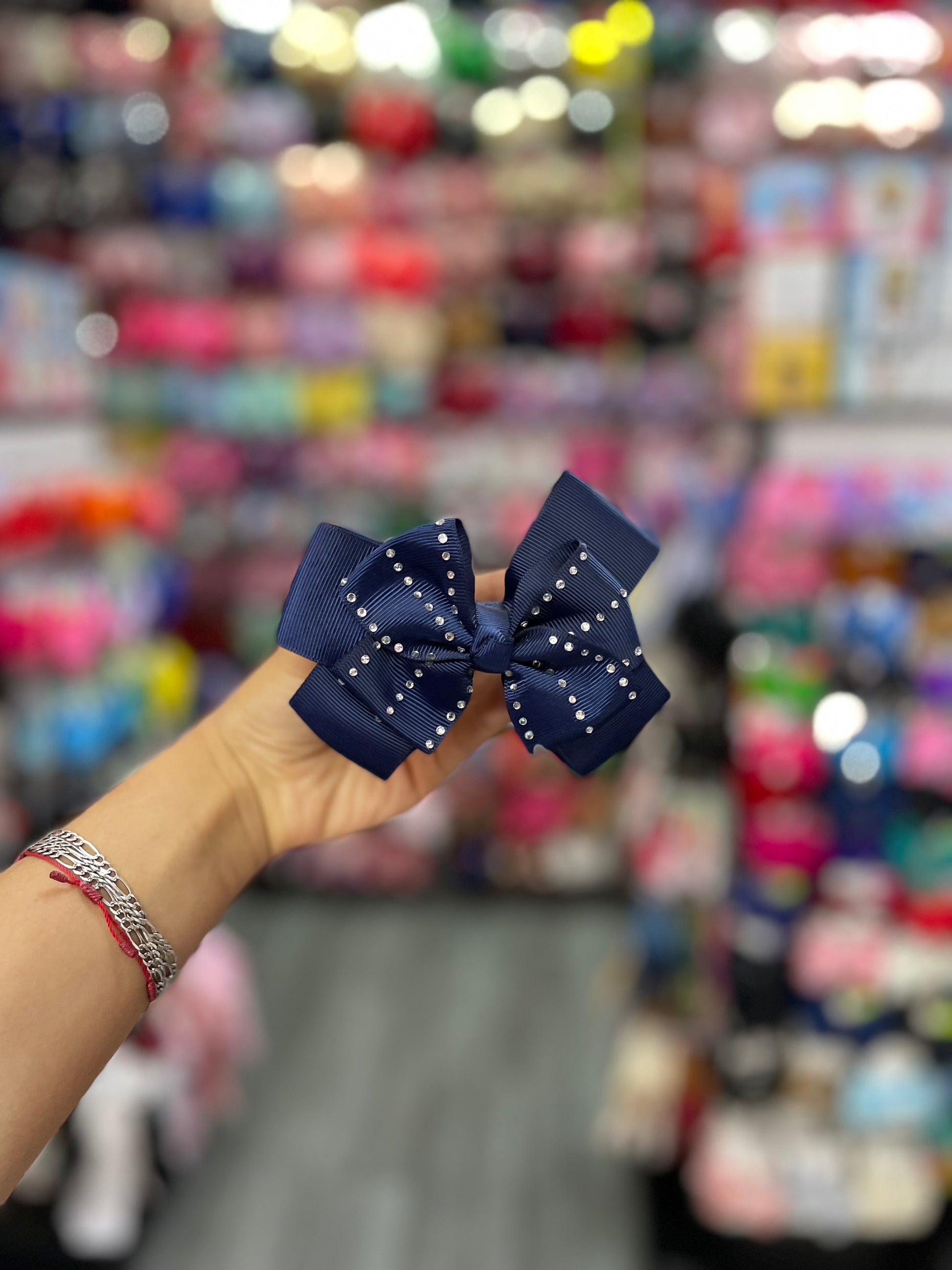 Un moño doble escolar con pedrería es un accesorio sofisticado y funcional, diseñado para darle un toque especial al uniforme escolar. Este moño consta de dos capas de cinta, formando un lazo simétrico y voluminoso que aporta estructura y elegancia. En el centro del moño, se encuentra un detalle de pedrería que puede incluir pequeñas piedras brillantes o cristales, lo que le da un toque de luminosidad y distinción. Aunque su diseño es sobrio y adecuado para el entorno escolar, la pedrería añade un detalle chic que lo convierte en una opción ideal para quienes buscan resaltar su estilo de manera sutil pero elegante.