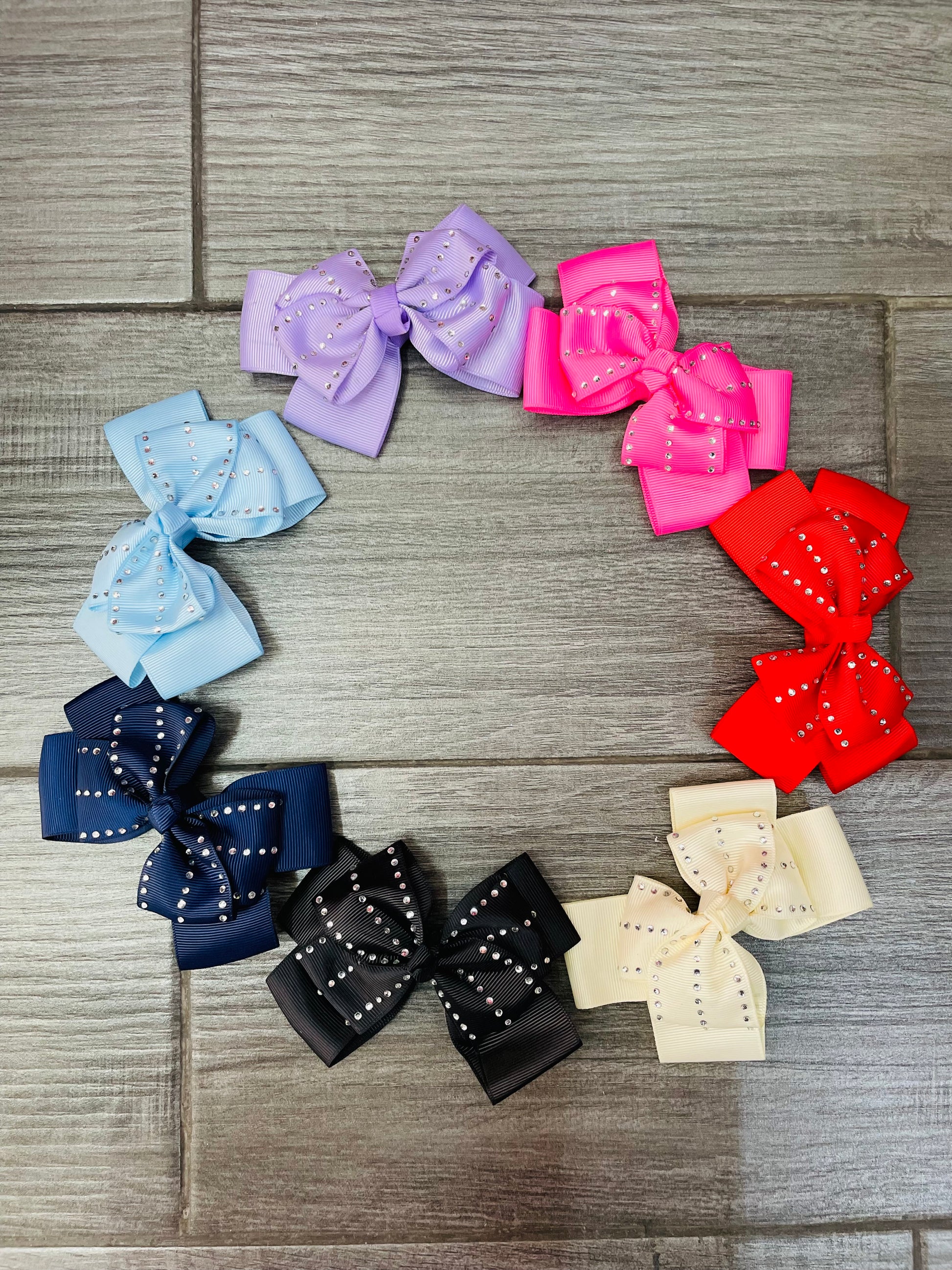 Moño Escolar Doble Con Pedrería - Los Moños De Kari