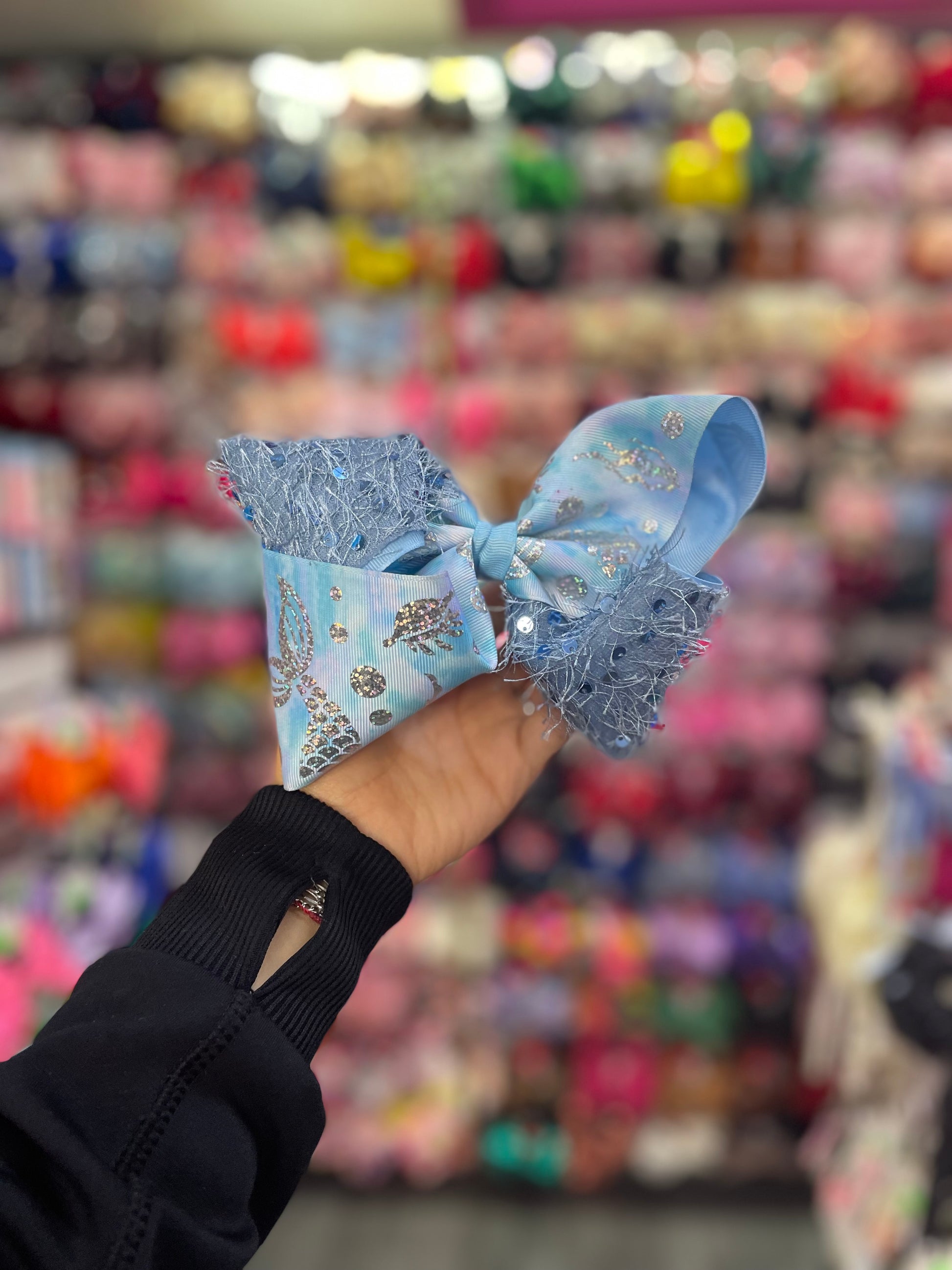Un moño estampado con lentejuelas es una pieza que combina la diversión de un patrón vibrante con el brillo deslumbrante de las lentejuelas. La tela del moño presenta un estampado colorido o de diseño, que puede ir desde flores, rayas o figuras geométricas hasta patrones abstractos, añadiendo dinamismo y personalidad. Sobre este fondo, las lentejuelas están estratégicamente aplicadas, a menudo siguiendo las líneas del estampado o distribuidas de manera que resaltan los detalles del diseño. El contraste entre la textura mate del estampado y el resplandor de las lentejuelas crea una mezcla fascinante de estilos, agregando un toque de glamour sin perder la frescura y el carácter del patrón. Este moño es perfecto para quienes buscan un accesorio único y llamativo, ideal para eventos especiales o para dar un toque de chispa a un atuendo más casual.
