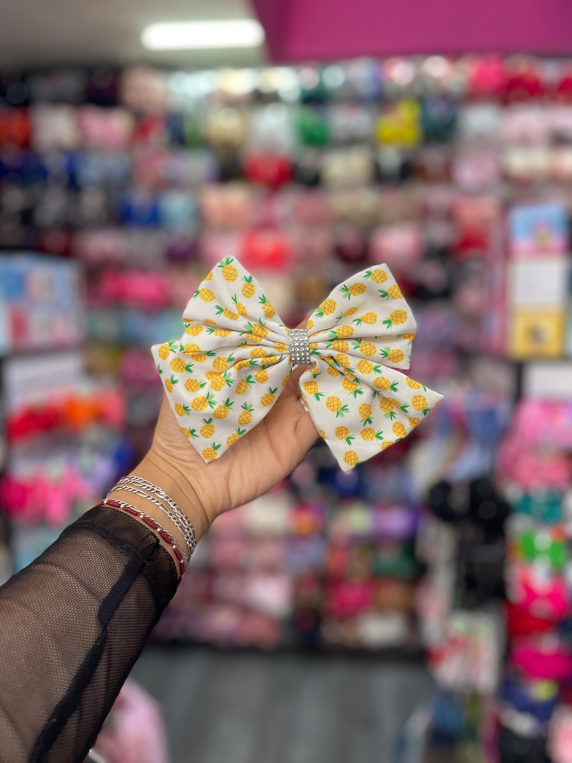 Moño Estampado Piña C/Pedrería - Los Moños De Kari