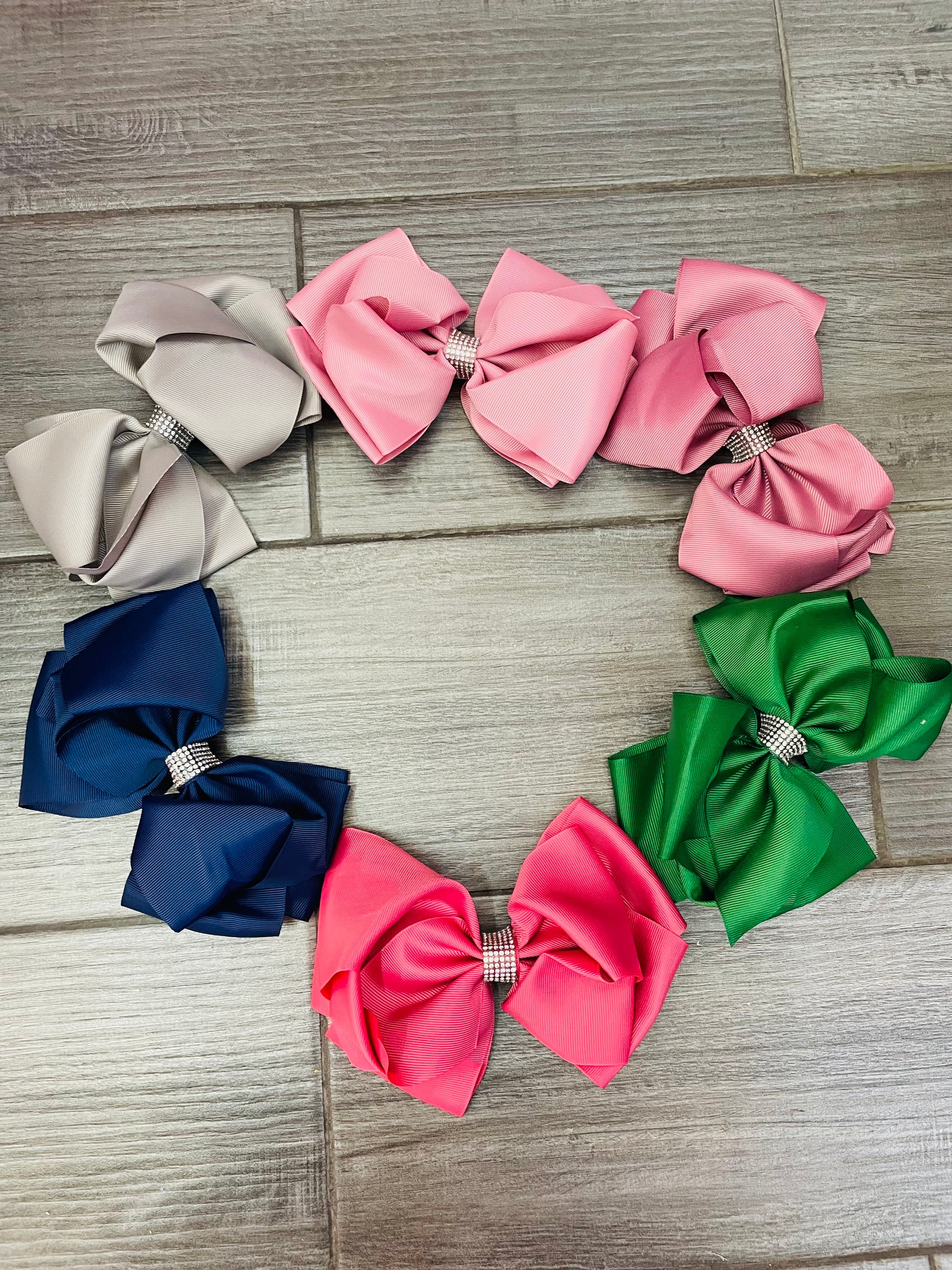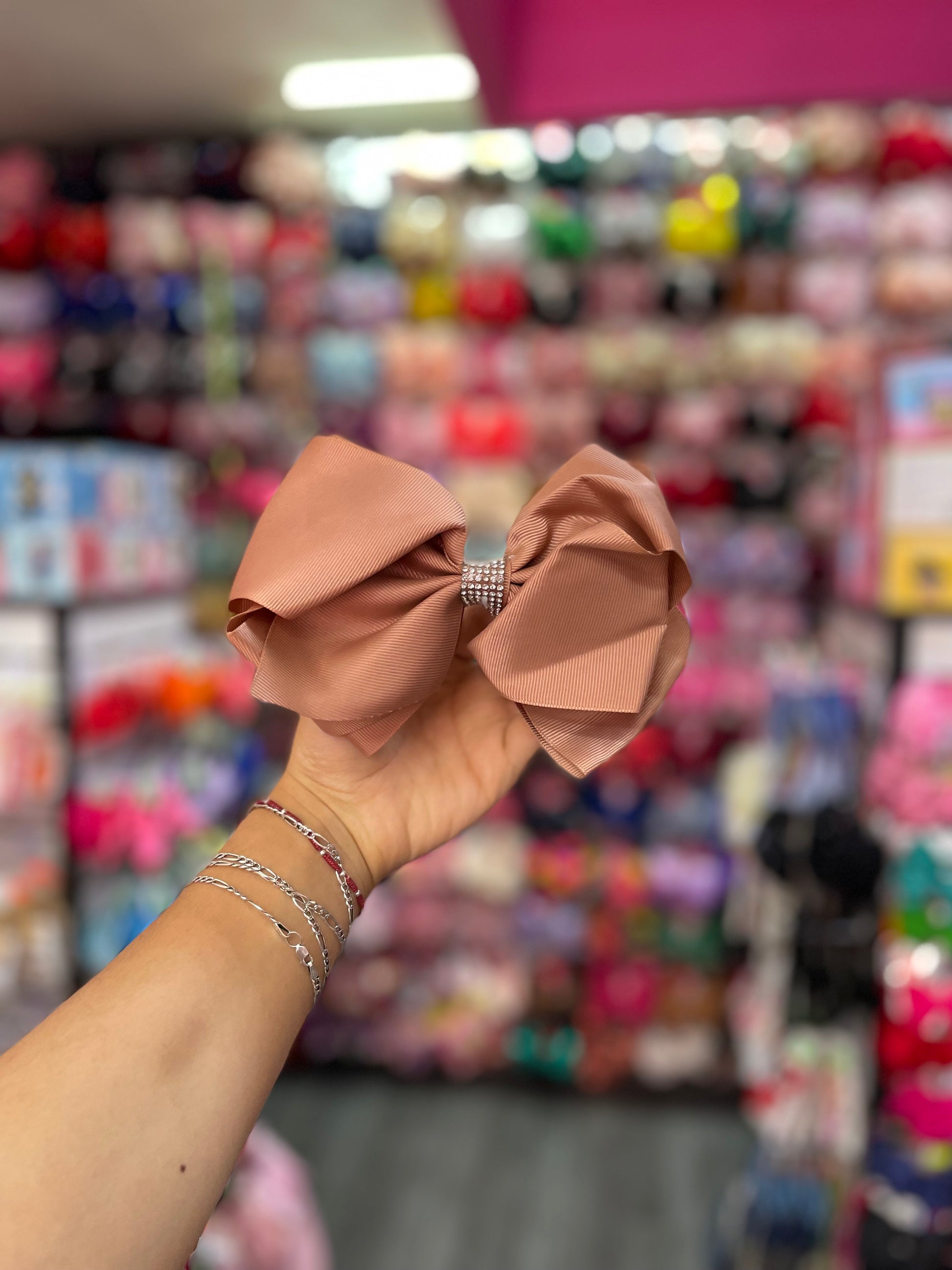 Un moño liso con detalle de pedrería en el centro es una pieza elegante y sofisticada que combina la simplicidad de un diseño limpio con el brillo sutil de las piedras. El moño, confeccionado en una tela suave y uniforme, tiene una forma clásica y bien estructurada, lo que le otorga un aire de distinción. En el centro, destaca un detalle de pedrería cuidadosamente colocado, con piedras brillantes que capturan la luz y añaden un toque de glamour sin sobrecargar el diseño. Este adorno central puede estar compuesto por una sola pieza de pedrería o varias pequeñas piedras agrupadas, dependiendo del estilo, pero siempre con un acabado refinado. Ideal para ocasiones formales o eventos especiales, este moño es perfecto para quienes buscan un accesorio sofisticado que combine lo clásico con un toque de lujo discreto.