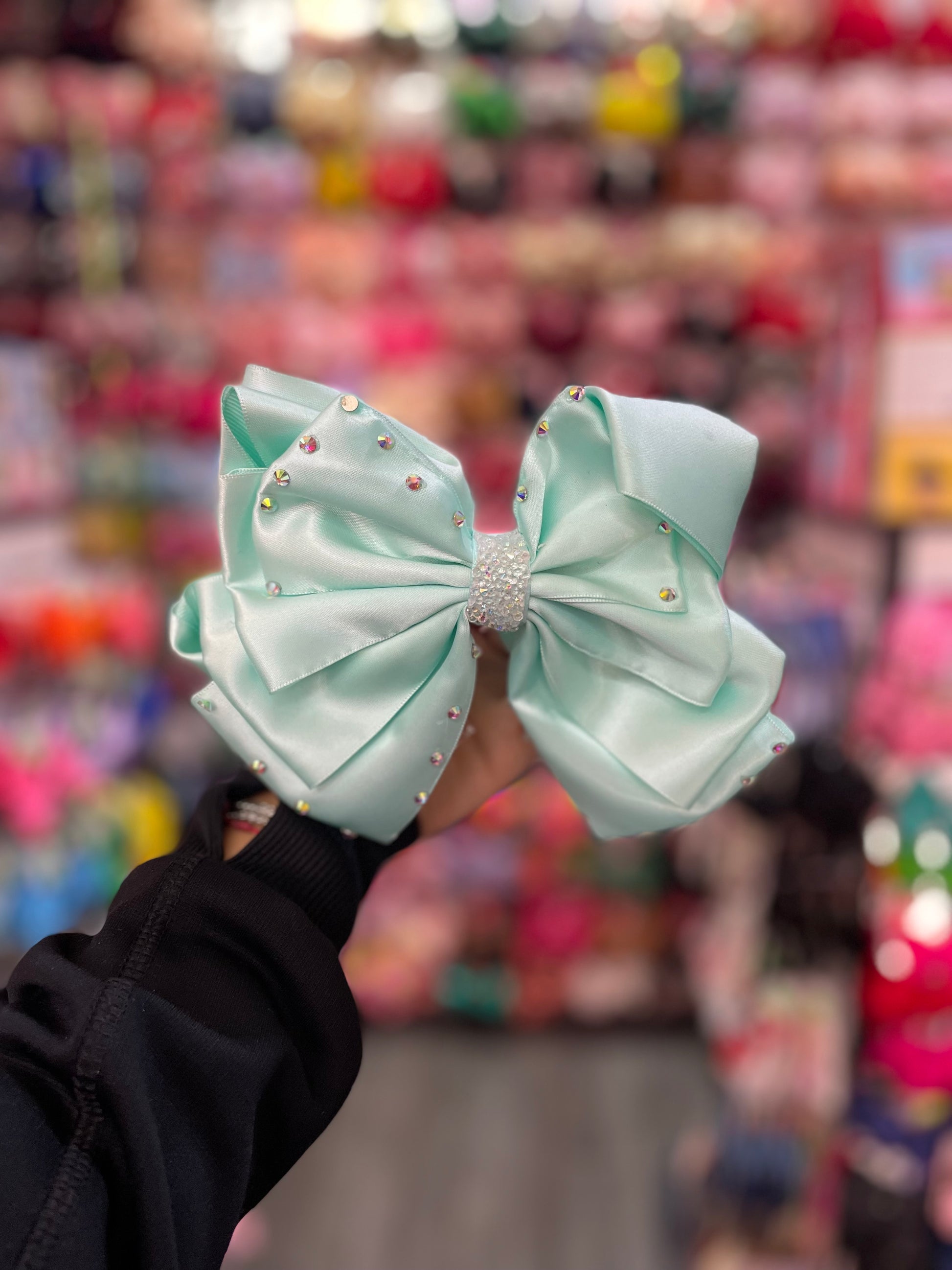 Un moño grande mariposa con pedrería es un accesorio deslumbrante y lleno de elegancia, que combina la forma clásica de un moño con la sofisticación del brillo. Con su diseño amplio y simétrico, el moño se extiende en dos alas generosas que evocan la figura de una mariposa, aportando una sensación de ligereza y gracia. Toda la superficie del moño está adornada con pedrería, lo que le otorga un brillo cautivador. Las piedras, de diferentes tamaños y tonalidades, están dispuestas de manera meticulosa para crear un resplandor uniforme y espectacular que refleja la luz desde todos los ángulos. En el centro, una pieza de pedrería más grande o un conjunto de piedras agrupadas añade un toque extra de lujo, elevando aún más el diseño. Este moño es ideal para ocasiones elegantes como bodas, galas o fiestas, donde se busca un accesorio llamativo y lleno de glamour.