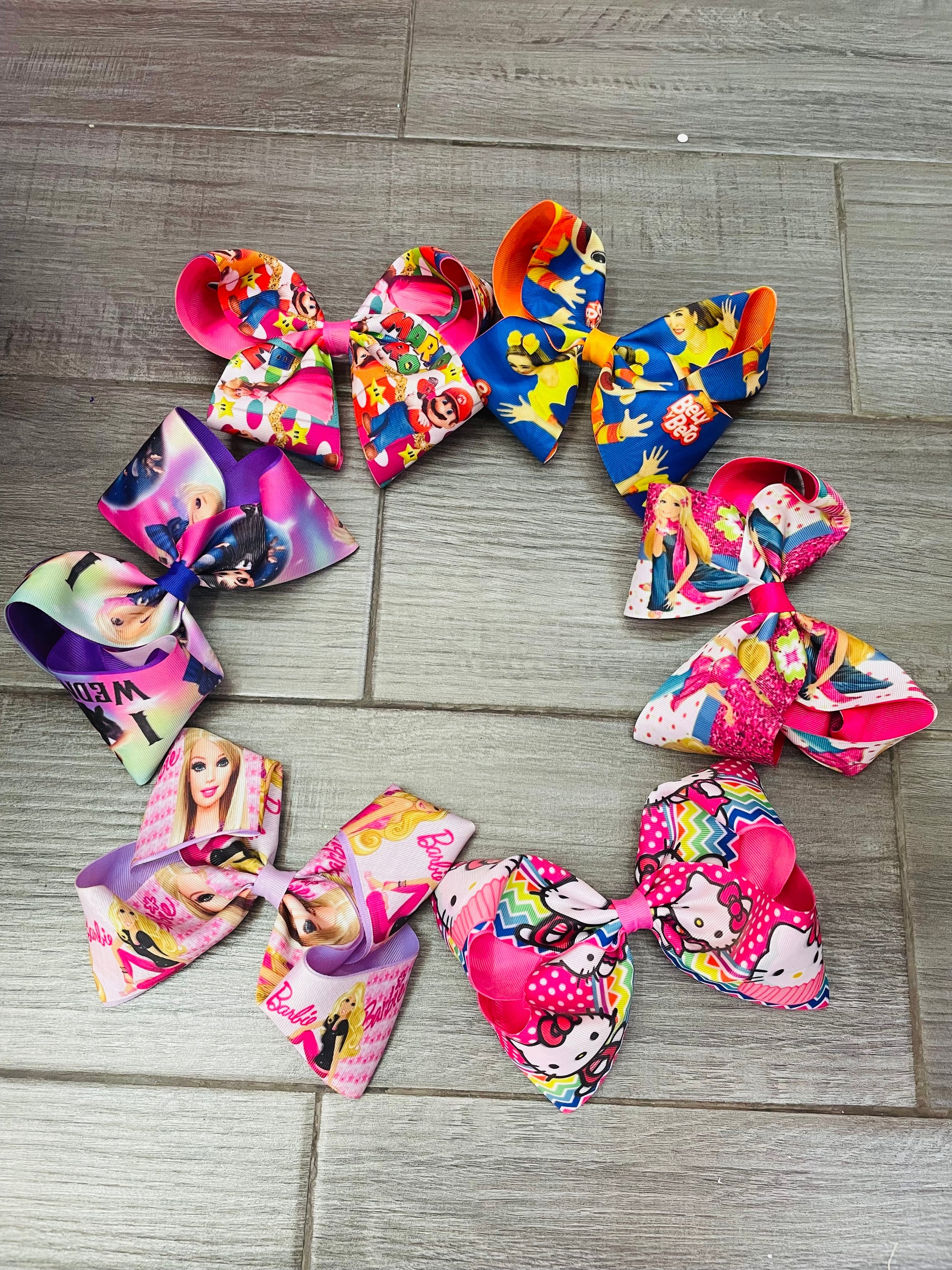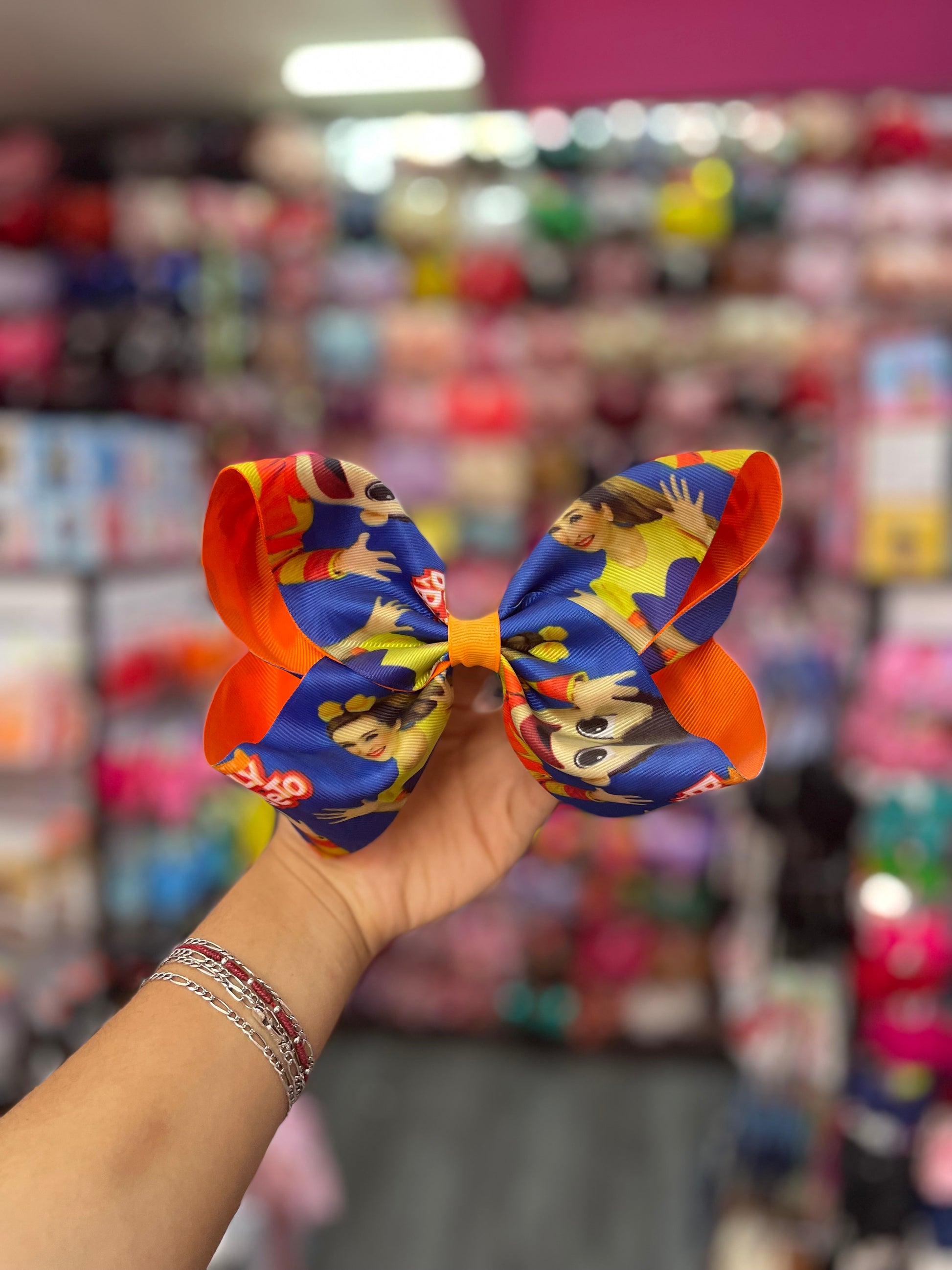 Un moño de personajes es un accesorio de cabello que presenta un diseño inspirado en personajes populares de la cultura, como aquellos de películas, series, videojuegos o cómics. Este moño puede estar confeccionado con telas de colores vibrantes, patrones relacionados con el personaje (como logotipos, símbolos o imágenes de los personajes) y a menudo incluye detalles como orejas, lazos adicionales o pequeños adornos que refuerzan la temática. Es una manera divertida y creativa de mostrar devoción o afición hacia un personaje favorito, al mismo tiempo que añade un toque único y original al peinado. El moño de personajes puede ser usado tanto por niños como adultos, y es perfecto para ocasiones informales, eventos de cosplay, fiestas temáticas o simplemente para quienes disfrutan de la cultura geek.