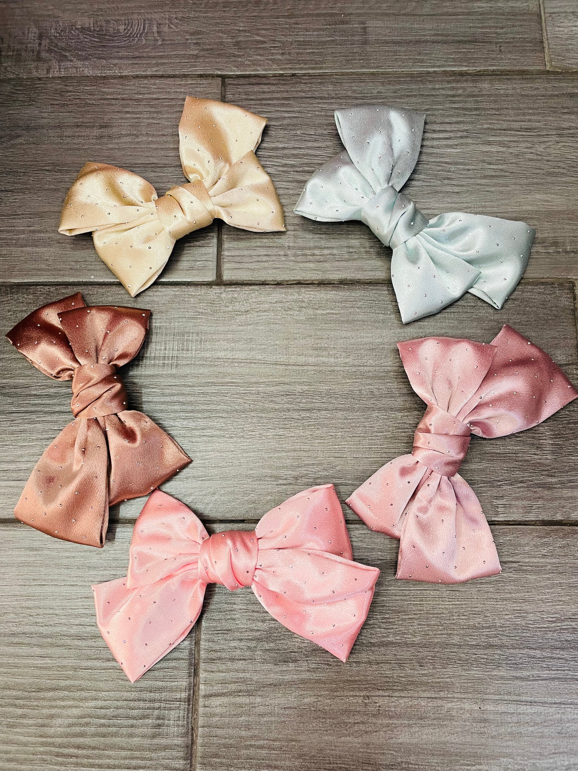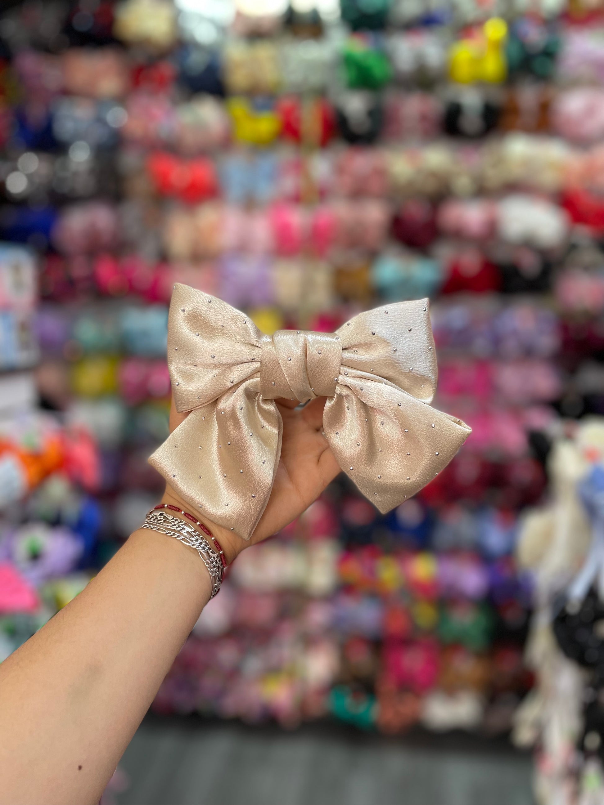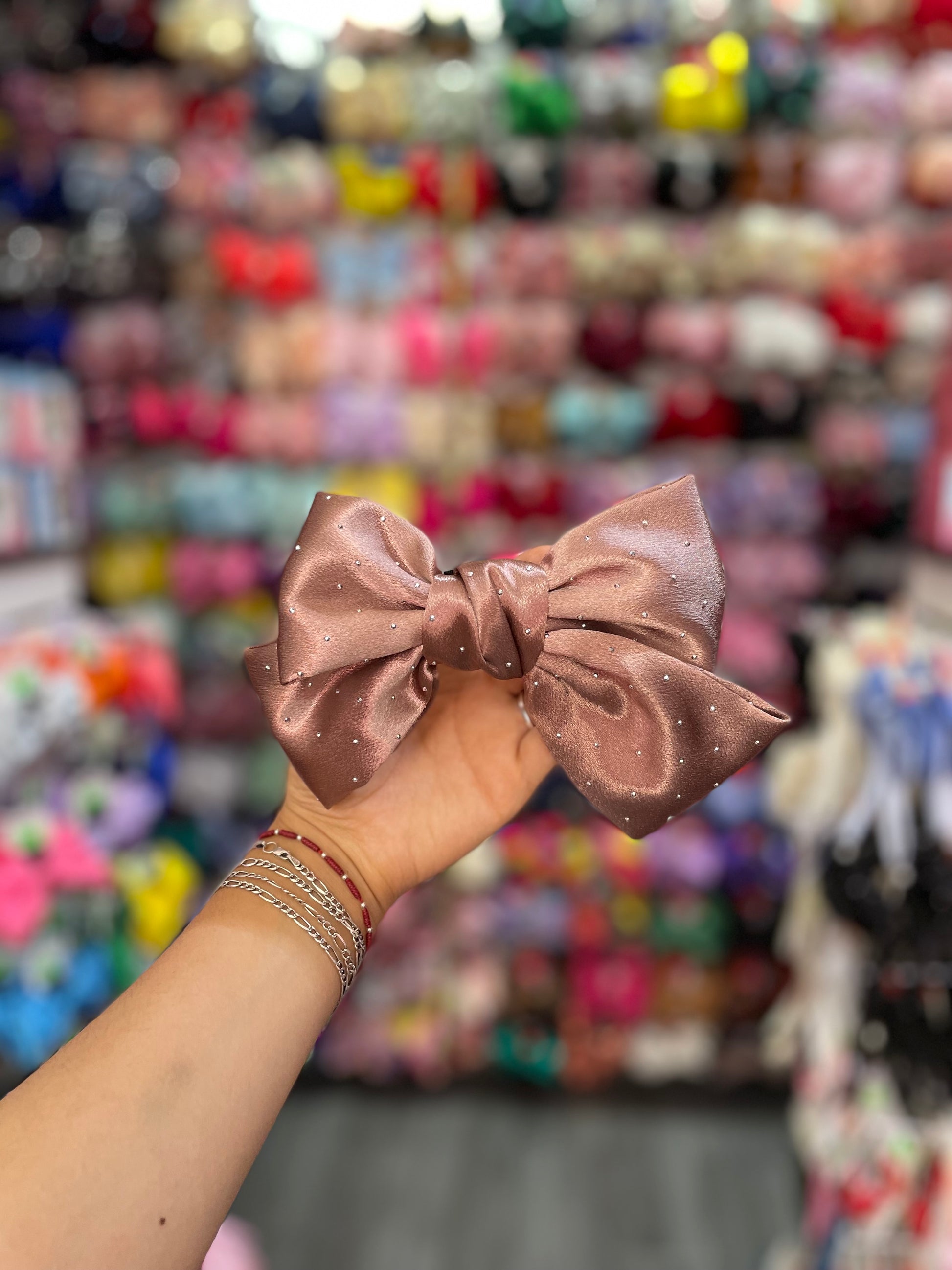 El moño mediano satinado con pedrería es un accesorio sofisticado que combina la suavidad y el brillo del satén con la elegancia de los detalles brillantes. De tamaño mediano, este moño ofrece un equilibrio perfecto entre discreción y presencia. El acabado satinado proporciona una textura suave y luminosa, mientras que la pedrería, cuidadosamente incrustada en el centro o a lo largo de los bordes, añade un toque de glamour y sofisticación. Las piedras brillantes reflejan la luz, creando un efecto deslumbrante que eleva cualquier atuendo. Ideal para ocasiones especiales, como bodas, fiestas o eventos formales, este moño es perfecto para adornar el cabello, prendas o incluso como detalle en regalos, aportando un toque de lujo y elegancia.