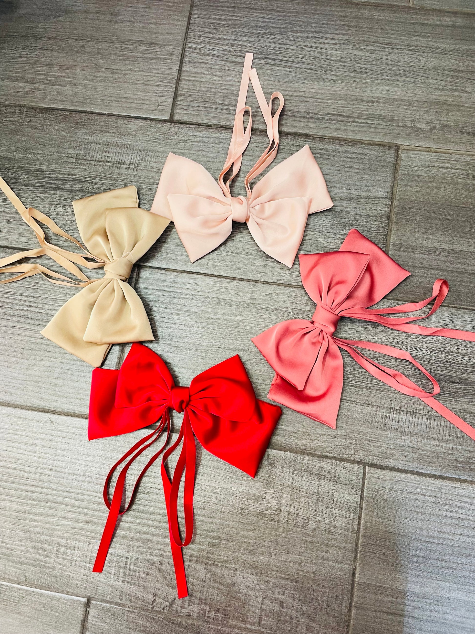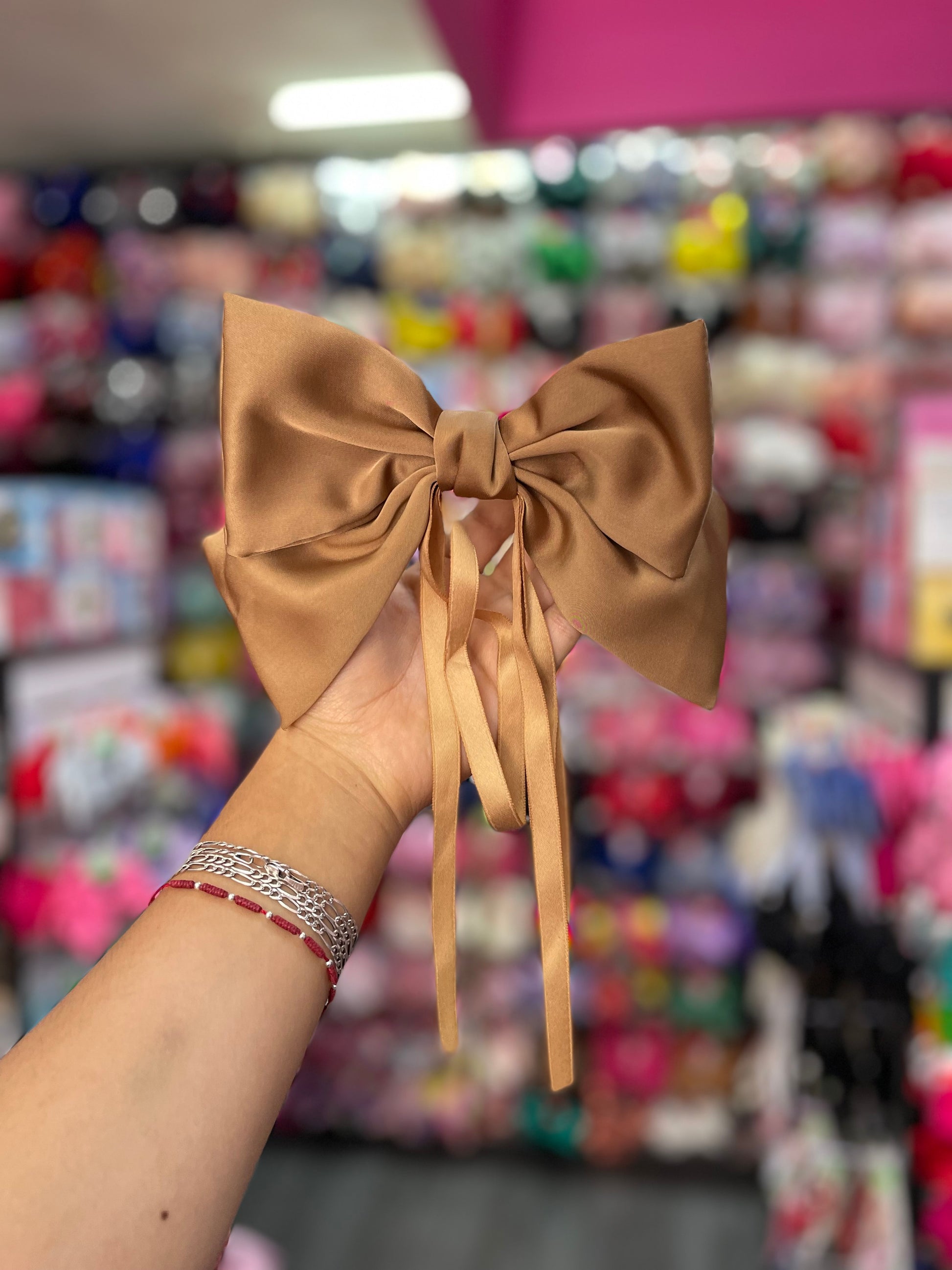 Los moños satinados con listones son accesorios elegantes y versátiles, hechos de tela satinada, que tiene un acabado brillante y suave. Los listones, generalmente de satén o material similar, se utilizan para dar forma al moño, creando una apariencia delicada y refinada. Estos moños pueden variar en tamaño y estilo, desde los más pequeños y discretos hasta los grandes y voluminosos, y son ideales para decorar cabello, prendas, regalos o incluso como adornos en eventos especiales. Su brillo sutil y la suavidad de la tela aportan un toque de sofisticación y glamour a cualquier atuendo o presentación.