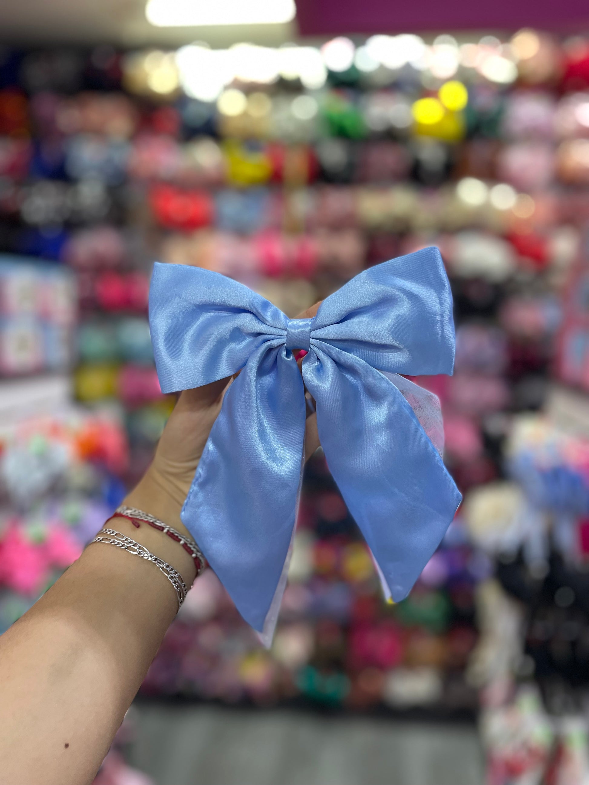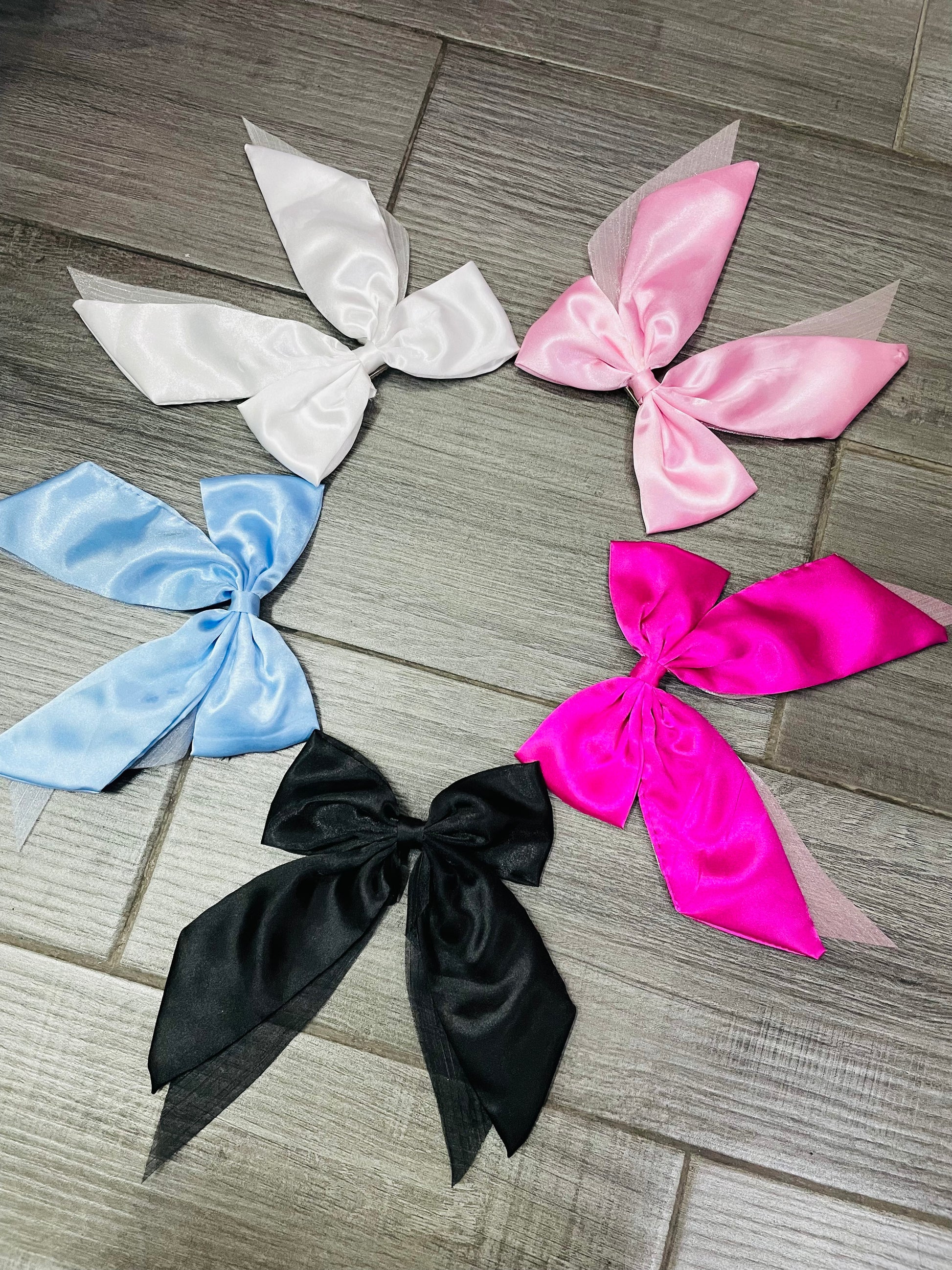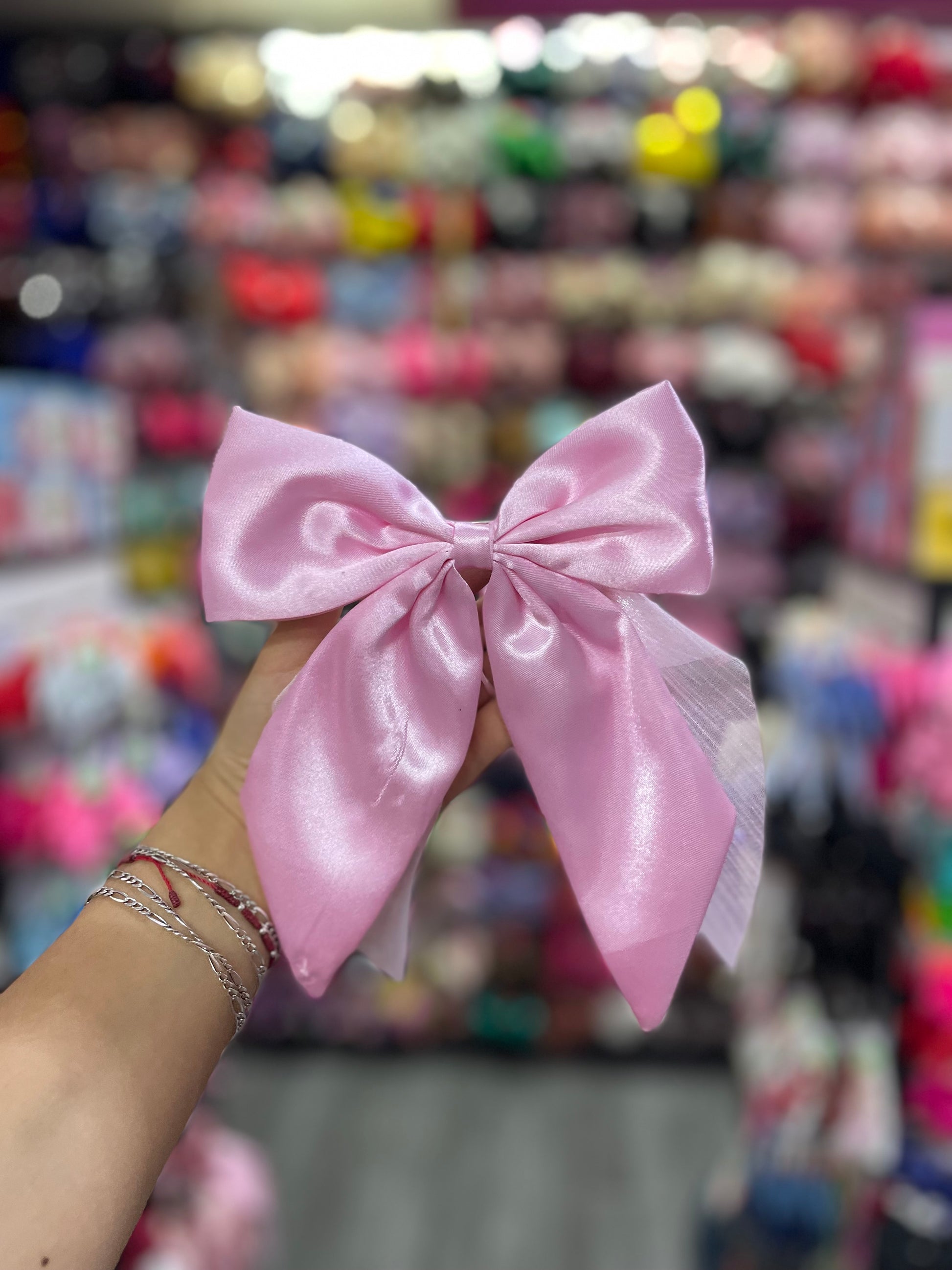 Moño Satinado Con Organza - Los Moños De Kari
