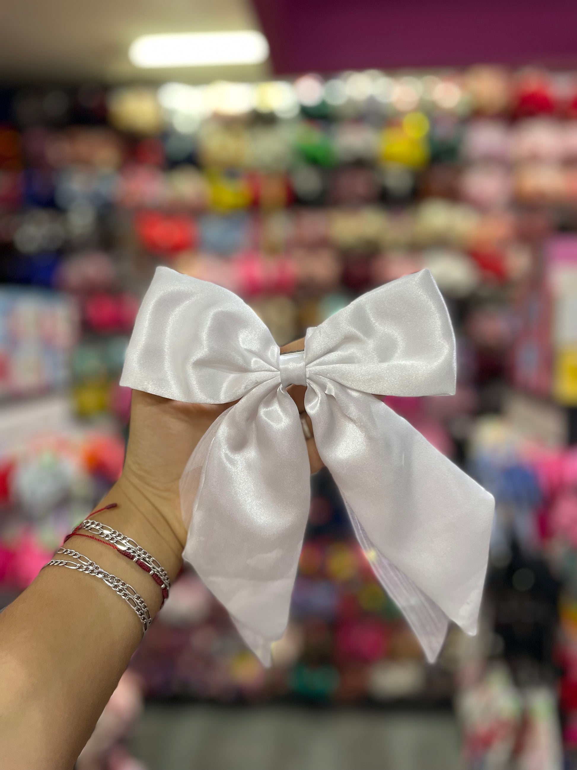 Un moño satinado con organza brillante es un accesorio elegante y sofisticado, ideal para ocasiones especiales. Su base de satén, suave y lujosa, proporciona un acabado suave y brillante, mientras que la capa de organza, ligeramente translúcida y con un toque de brillo, añade una dimensión etérea y delicada. Este moño combina la opulencia del satén con la ligereza y el resplandor de la organza, creando una pieza visualmente atractiva que refleja la luz de manera sutil y encantadora. Perfecto para adornar el cabello, un vestido o incluso como detalle decorativo en una ceremonia, este moño tiene una apariencia refinada y moderna.