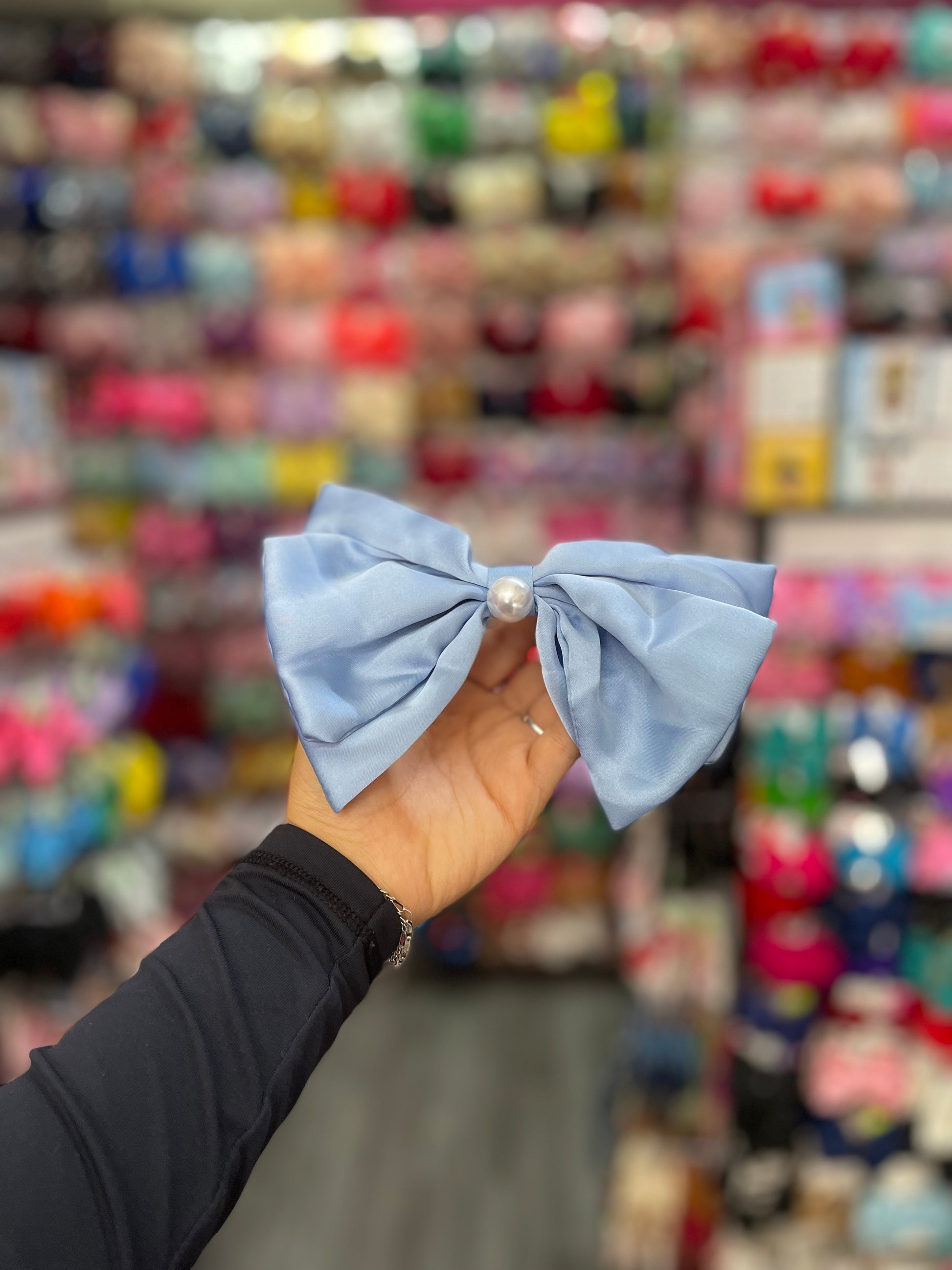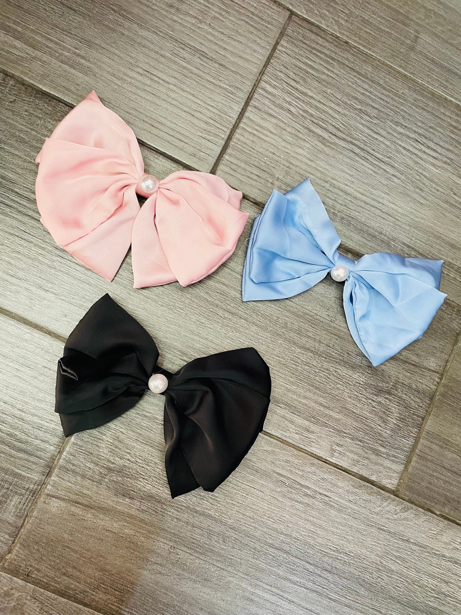 Moño Satinado Con Perla - Los Moños De Kari
