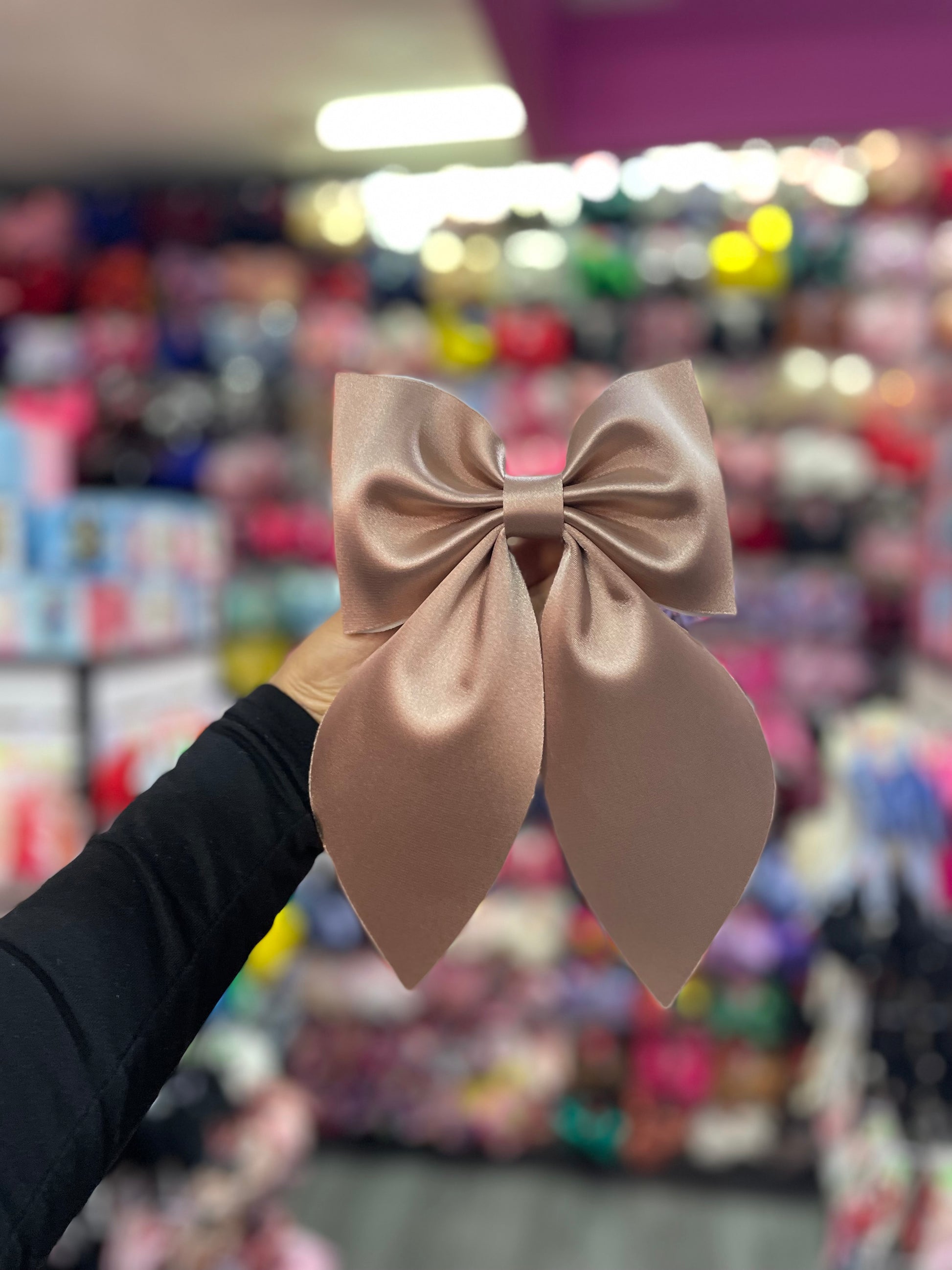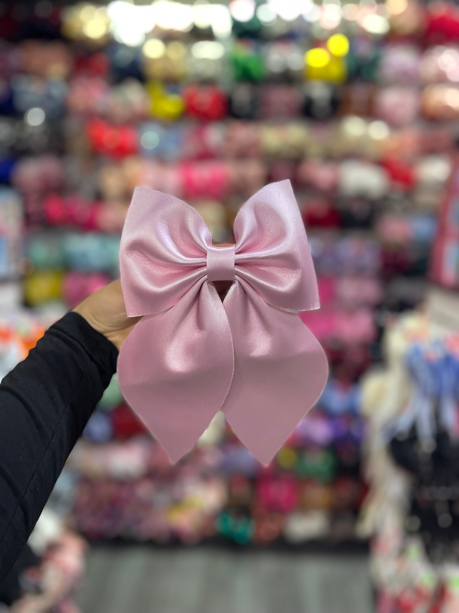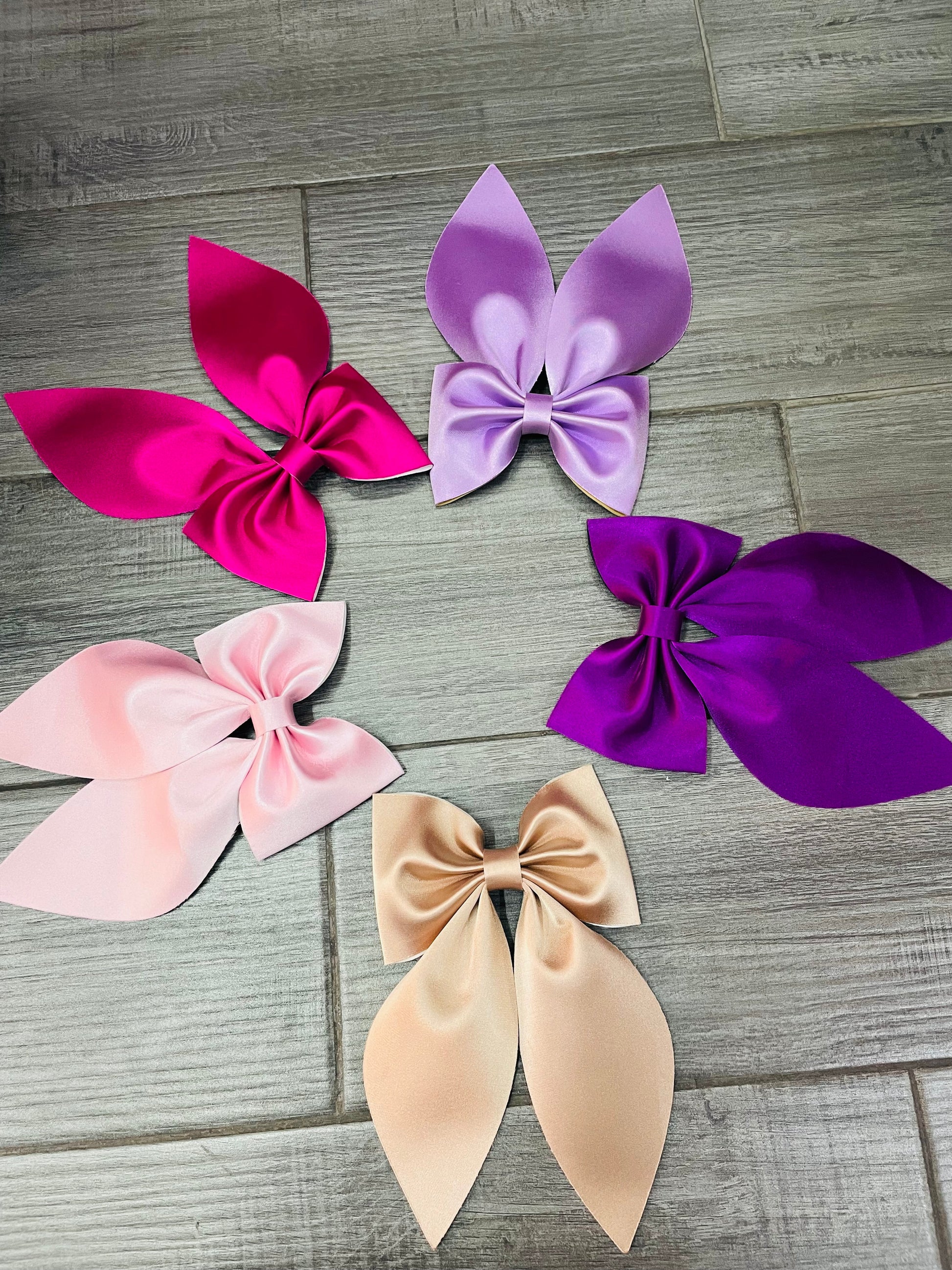 Un moño satinado rígido es un accesorio elegante y sofisticado, confeccionado con una tela de satén que, aunque tiene un acabado suave y brillante, presenta una estructura más firme que permite que el moño mantenga una forma definida. La rigidez del material asegura que el moño se sostenga en su lugar sin perder su volumen ni forma, creando un efecto visual impactante y pulido. El satén, con su característico brillo sutil, agrega un toque de lujo y glamour, lo que convierte a este tipo de moño en una opción ideal para ocasiones especiales, como eventos formales, celebraciones o incluso para dar un toque refinado a un look diario. Su versatilidad permite que se use tanto en peinados recogidos, como en coletas o adornando prendas como vestidos, blusas o chaquetas.
