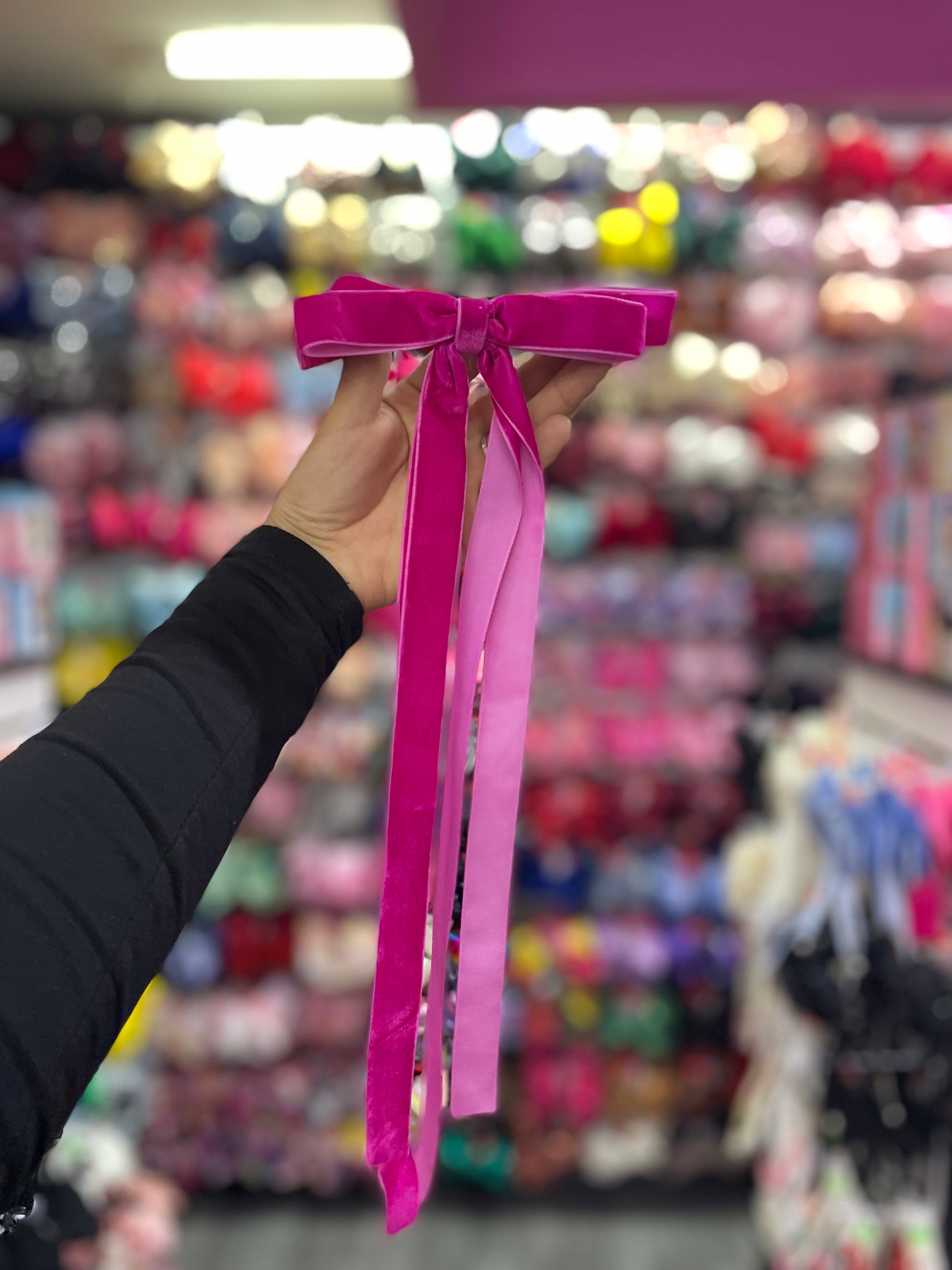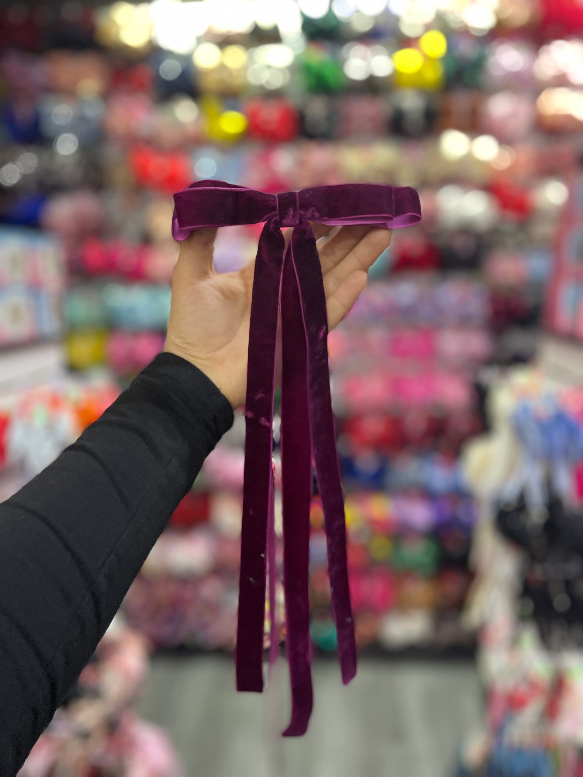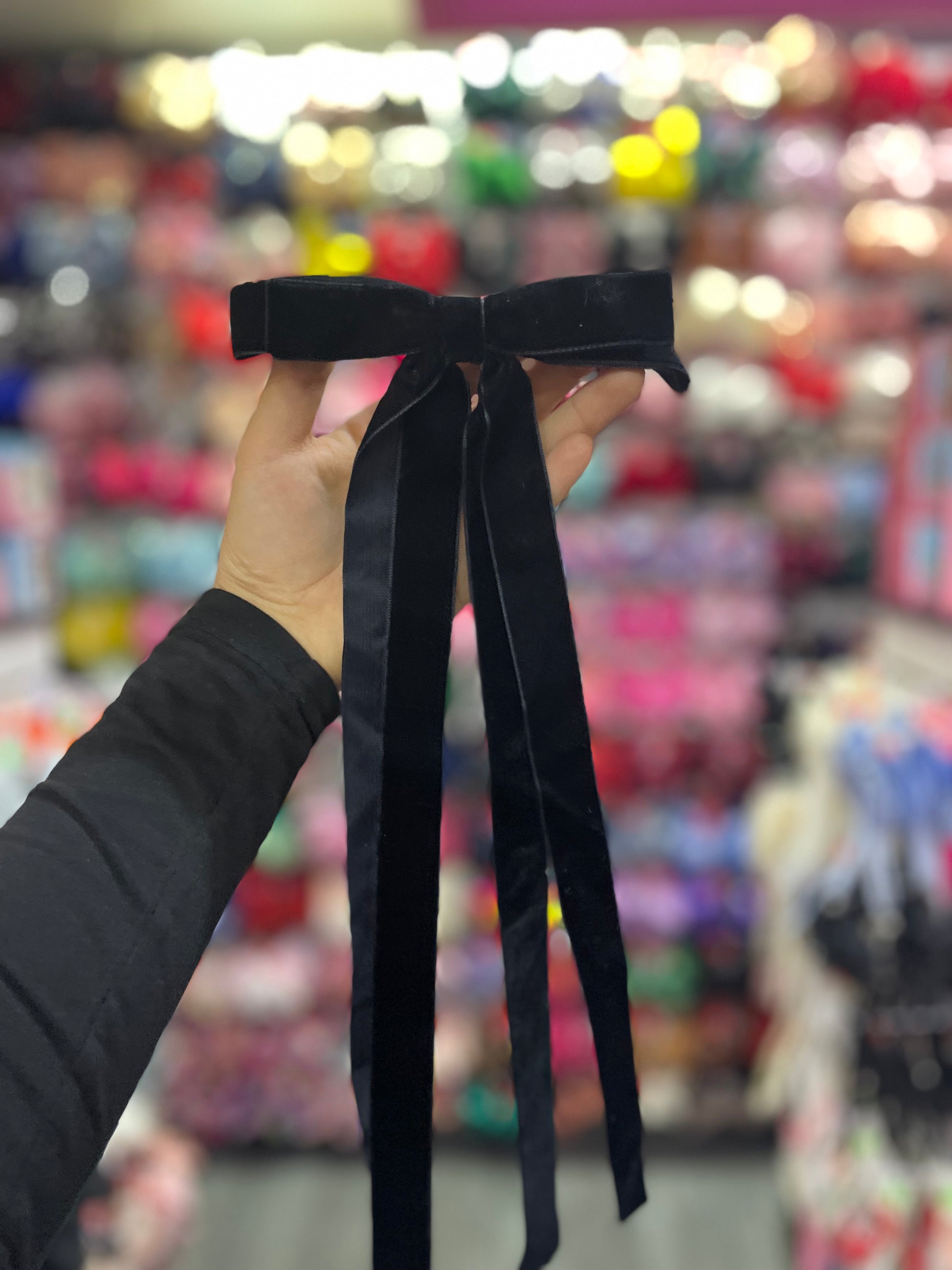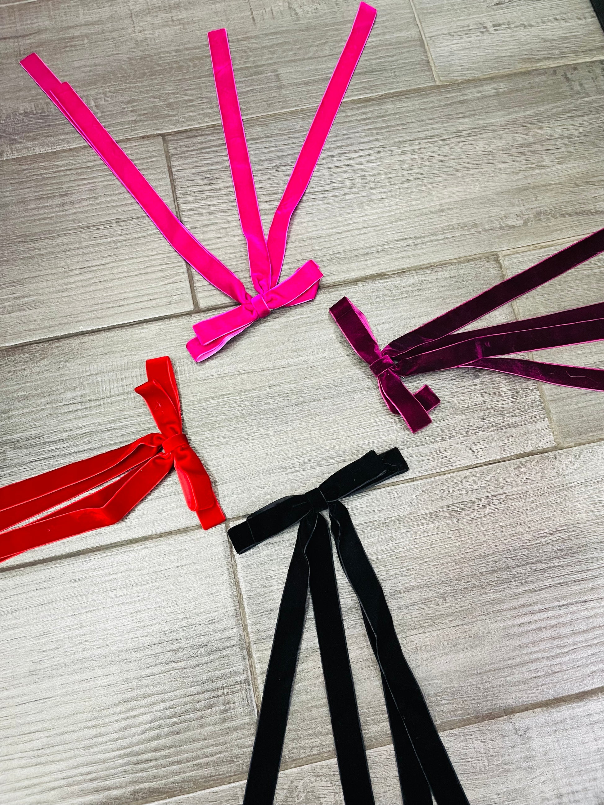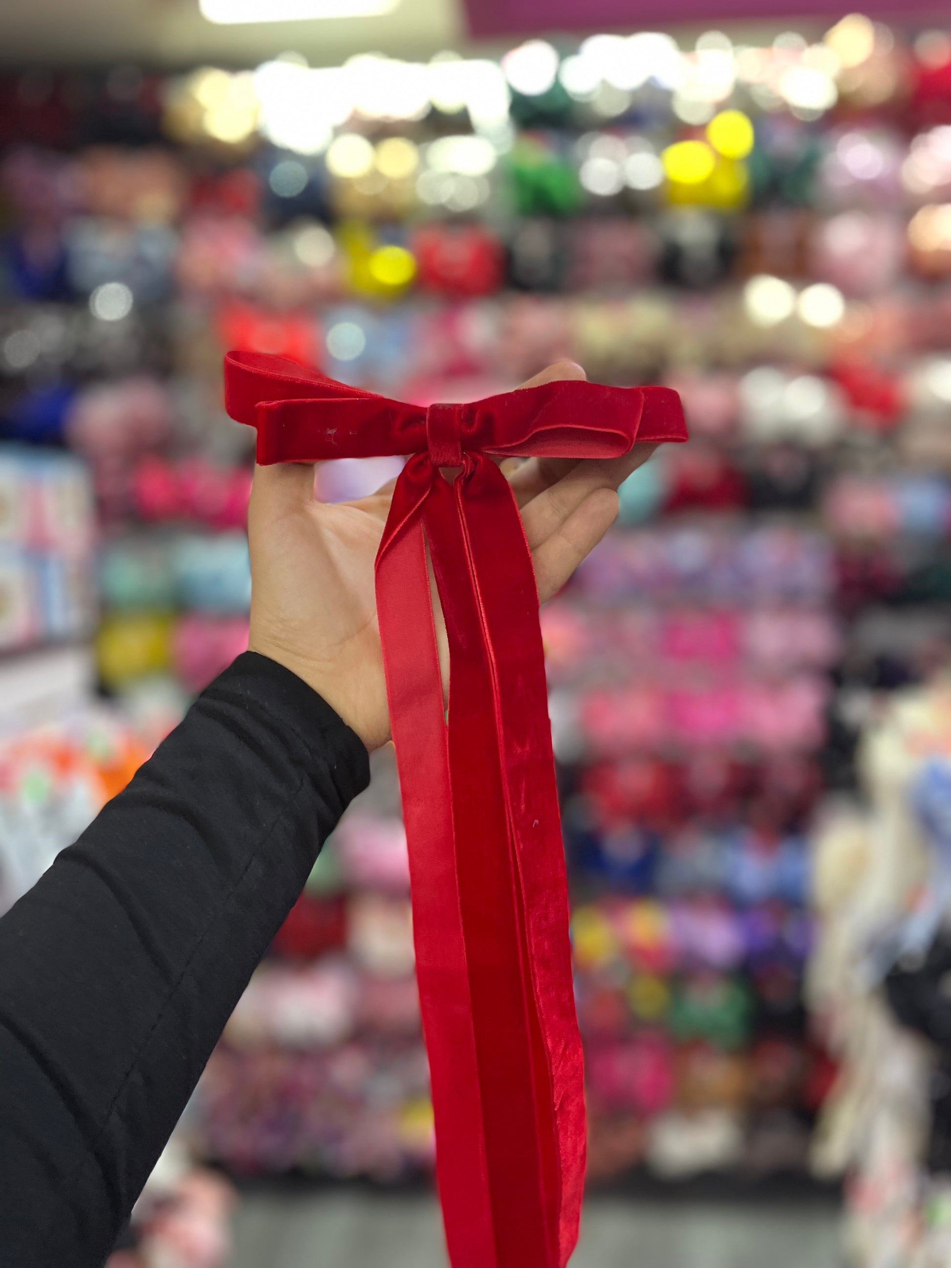 Los moños de terciopelo largos son accesorios elegantes y sofisticados, ideales para quienes buscan un toque de distinción en su atuendo. Fabricados en terciopelo, un material suave y lujoso, estos moños tienen una textura rica y un acabado mate que refleja la luz de manera sutil, creando un efecto visual atractivo. Su longitud permite que se puedan lucir de diversas formas, ya sea atados en el cabello, en la cintura o como detalles decorativos en prendas de vestir. Su caída fluida y la suavidad del terciopelo hacen que sean perfectos tanto para looks de noche como para dar un toque chic a un conjunto casual. Disponibles en una amplia gama de colores, los moños de terciopelo largos pueden aportar un aire vintage, romántico o moderno, según cómo se combinen con el resto del atuendo.