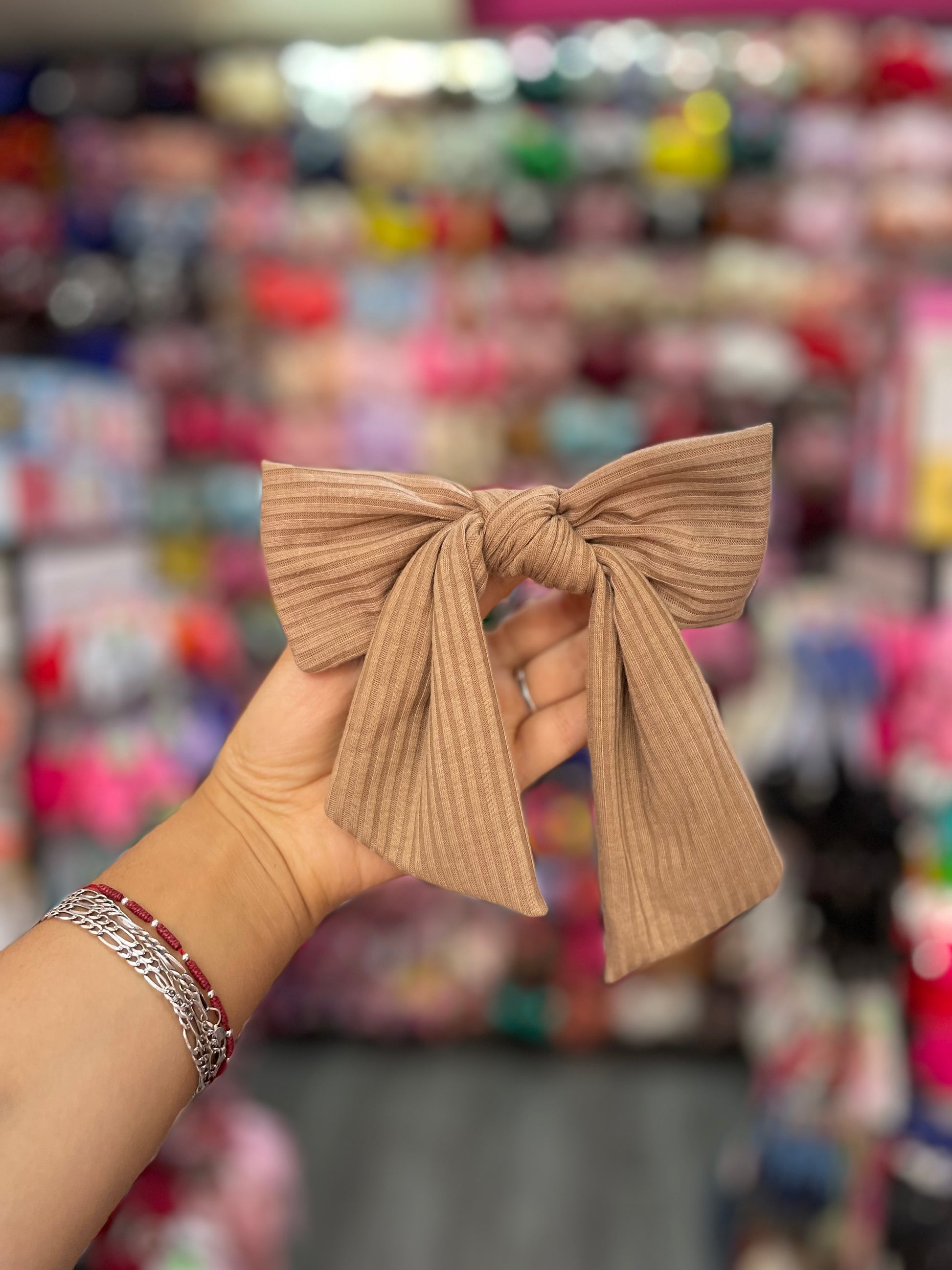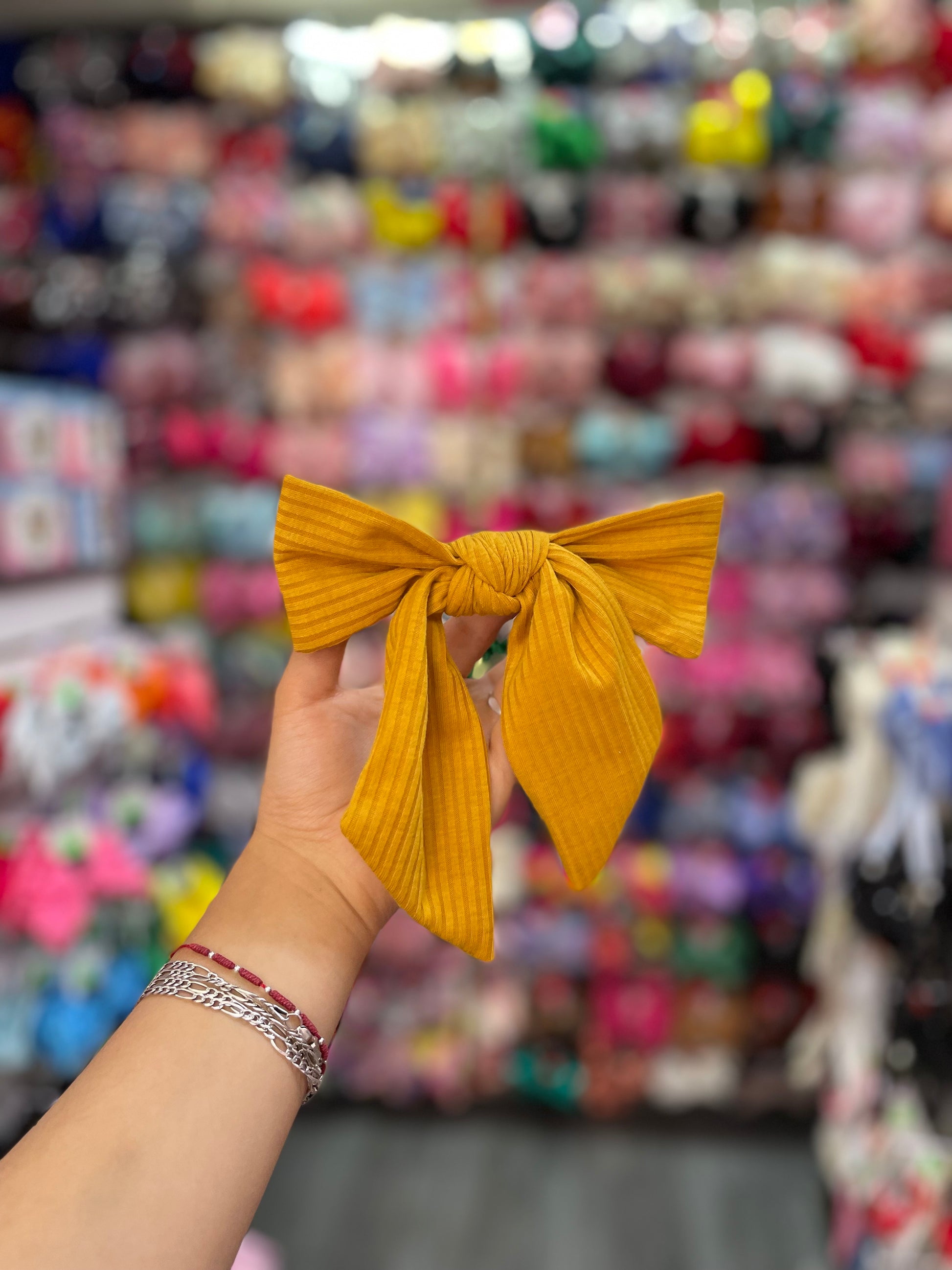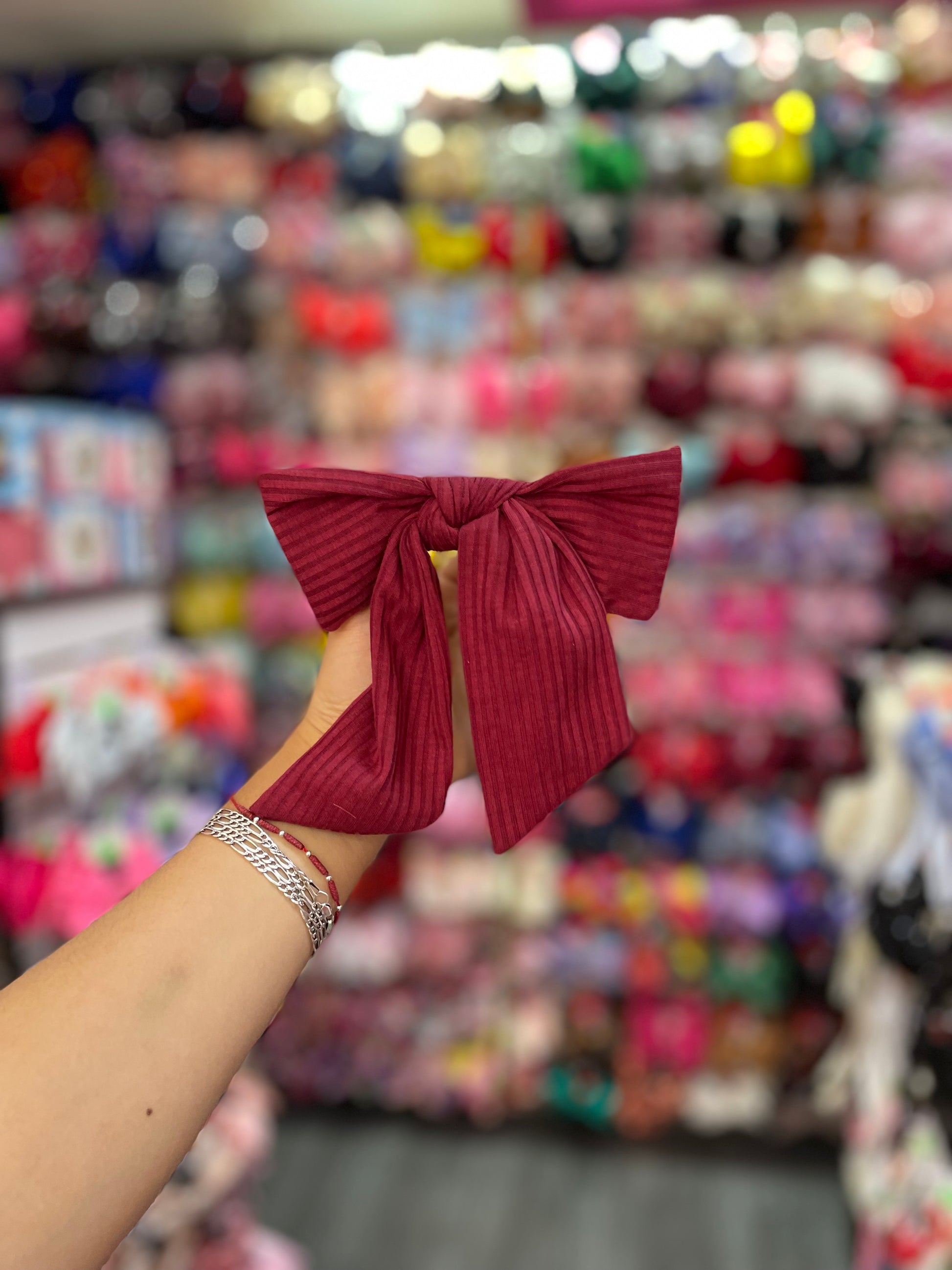 El moño de textura rayada es un accesorio moderno y con carácter, que se distingue por su diseño en tela con rayas sutiles o pronunciadas. La textura rayada añade un toque de dinamismo y sofisticación al moño, creando un juego visual interesante y elegante. Dependiendo del grosor y dirección de las rayas, este tipo de moño puede tener un estilo más clásico o más contemporáneo. La tela puede ser de diferentes materiales, como satén, lino o algodón, y las rayas pueden variar en colores o en tonos monocromáticos, lo que permite adaptarlo a diversas ocasiones. Este moño es ideal para agregar un detalle único a un atuendo, ya sea en el cabello, en prendas o como adorno en regalos, aportando una mezcla de elegancia y originalidad.