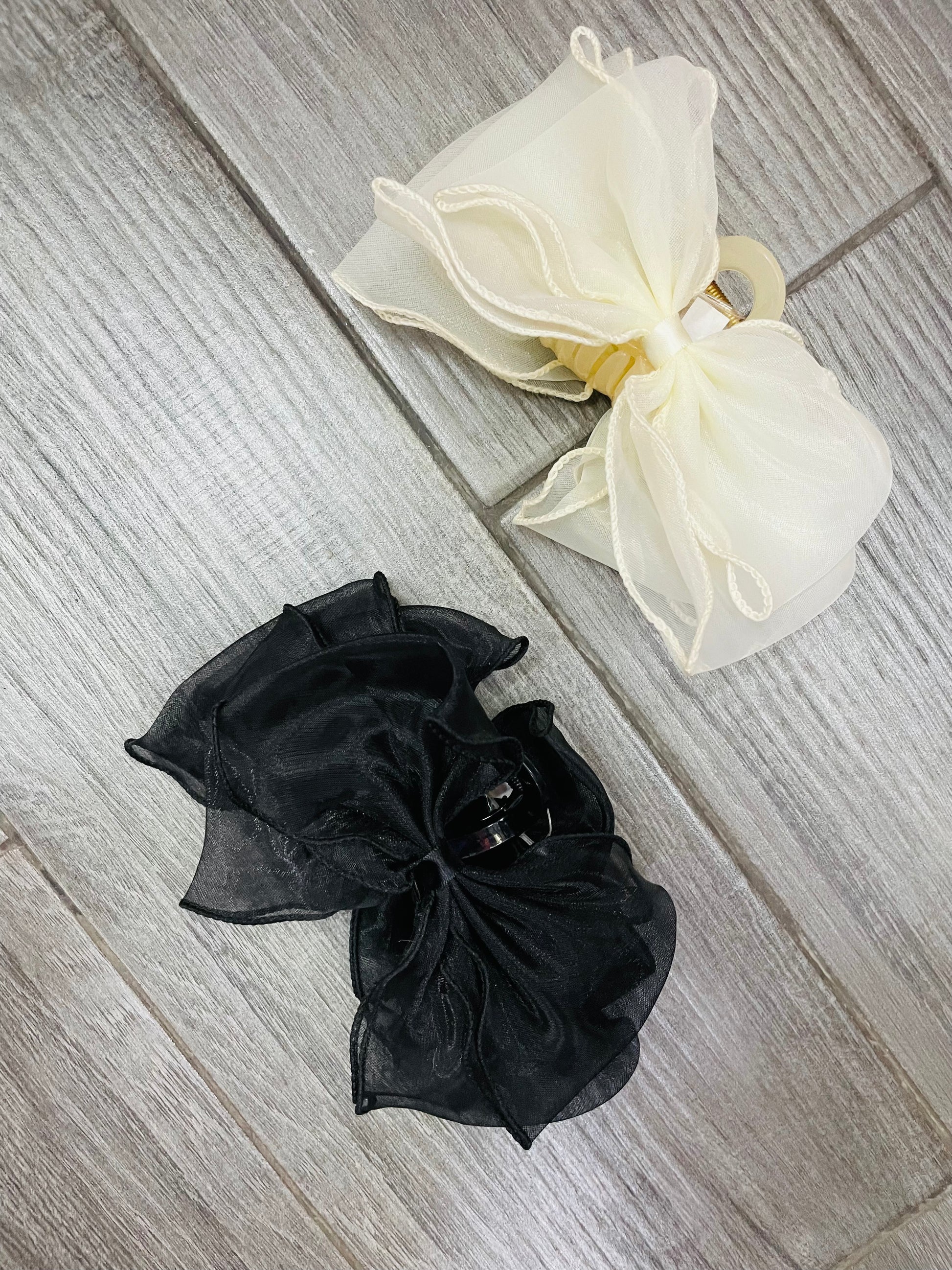 Esta pinza con moño de organza brillante doble es un accesorio sofisticado y lleno de encanto. El diseño destaca por sus dos capas de organza, que crean un efecto voluminoso y elegante, aportando un brillo sutil pero llamativo a tu peinado. Las capas de organza se entrelazan suavemente, ofreciendo un look más dinámico y texturizado, mientras que la pinza garantiza un ajuste seguro y cómodo. Perfecta para resaltar cualquier estilo, desde recogidos hasta coletas, esta pinza con moño doble es ideal para ocasiones especiales o para agregar un toque refinado a tu día a día. Un detalle de elegancia que combina la ligereza de la organza con la funcionalidad de la pinza.