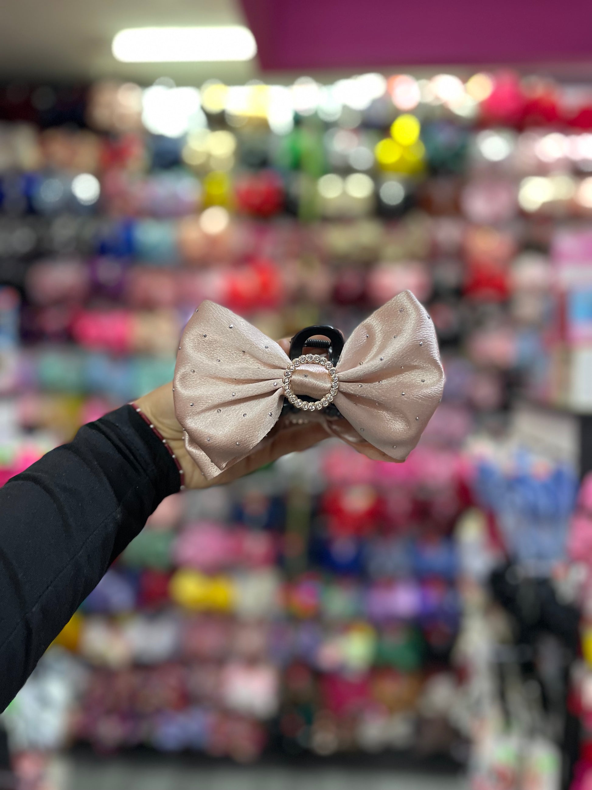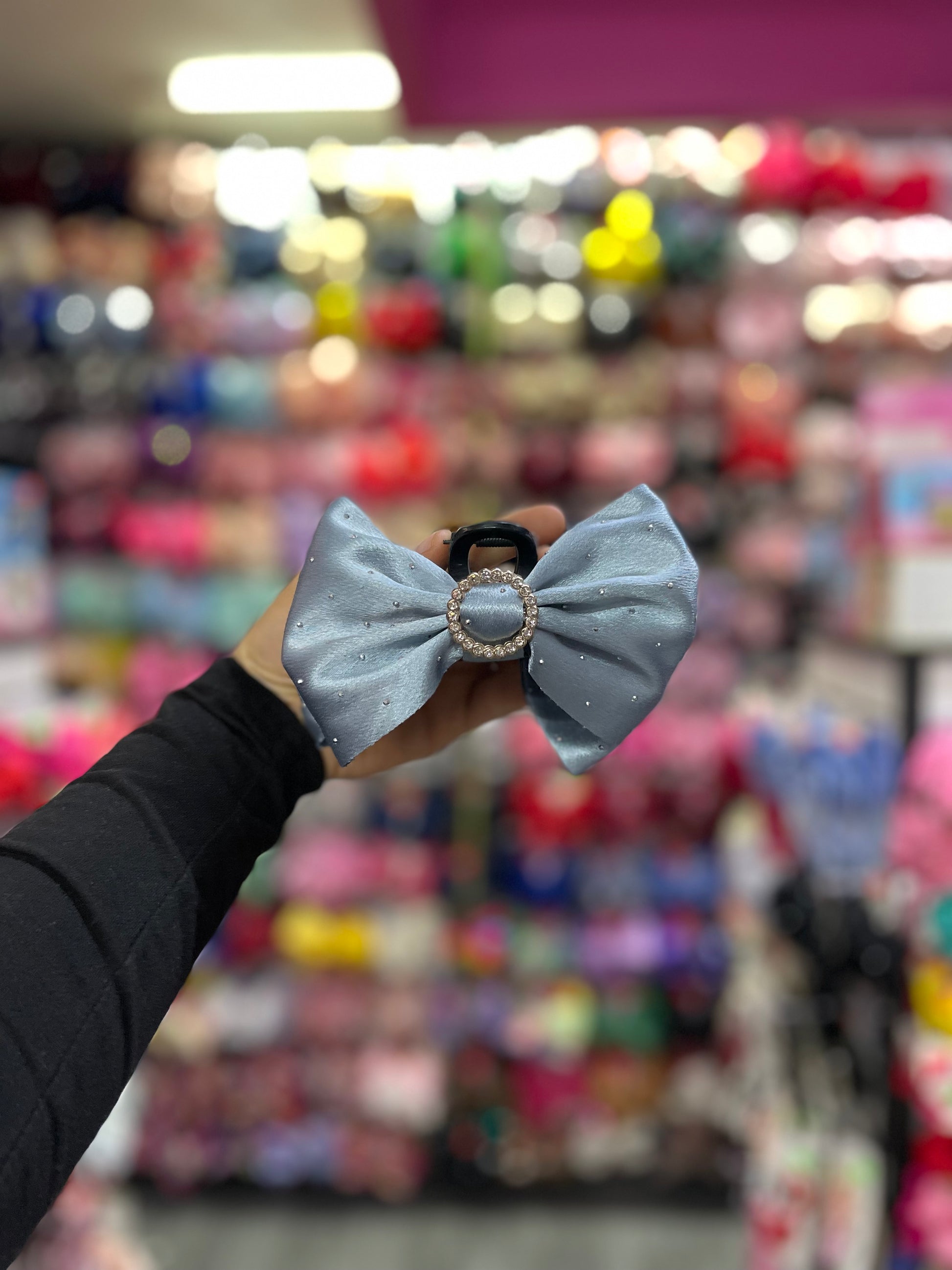 Esta sofisticada pinza con moño está adornada con un diseño elegante y lleno de detalles. El moño, elaborado con una tela suave y de textura refinada, se complementa perfectamente con la pedrería delicadamente incrustada, que aporta un toque de brillo sutil pero impactante. Las piedras, cuidadosamente dispuestas, capturan la luz y añaden un aire de glamour y sofisticación al accesorio. La pinza, resistente y de fácil uso, garantiza un ajuste seguro, permitiendo que el moño se mantenga en su lugar durante todo el día. Perfecta para ocasiones especiales o para añadir un toque de distinción a tu peinado diario, esta pinza con moño y pedrería es el complemento ideal para cualquier look elegante.